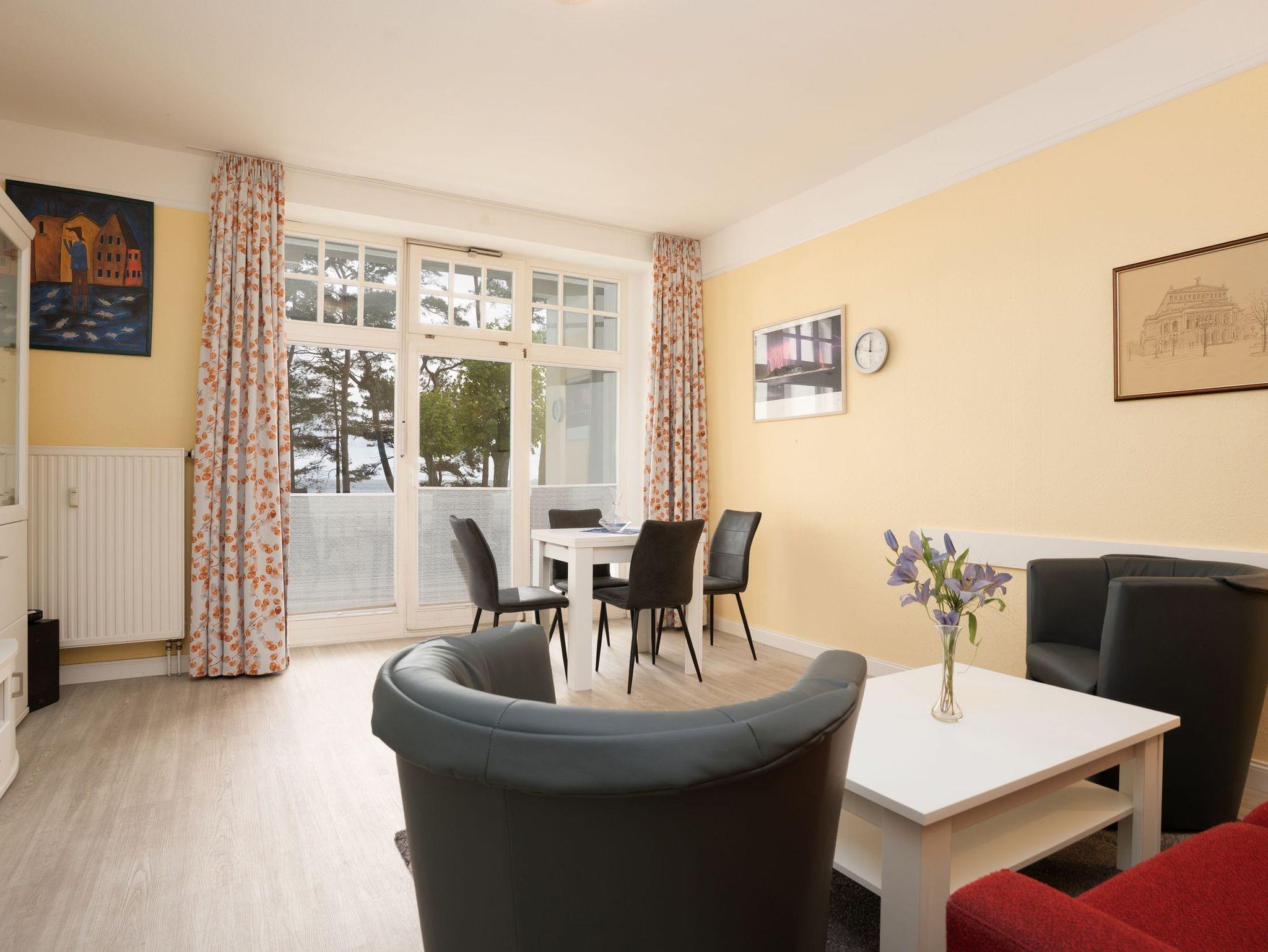 Gebaut im Stil der Bäderarchitektur geniessen Sie den Blick auf die Ostsee und die Strandpromenade. In unserem Apartment 3 darf Ihr Hund mit Ihnen zusammen Urlaub machen.
