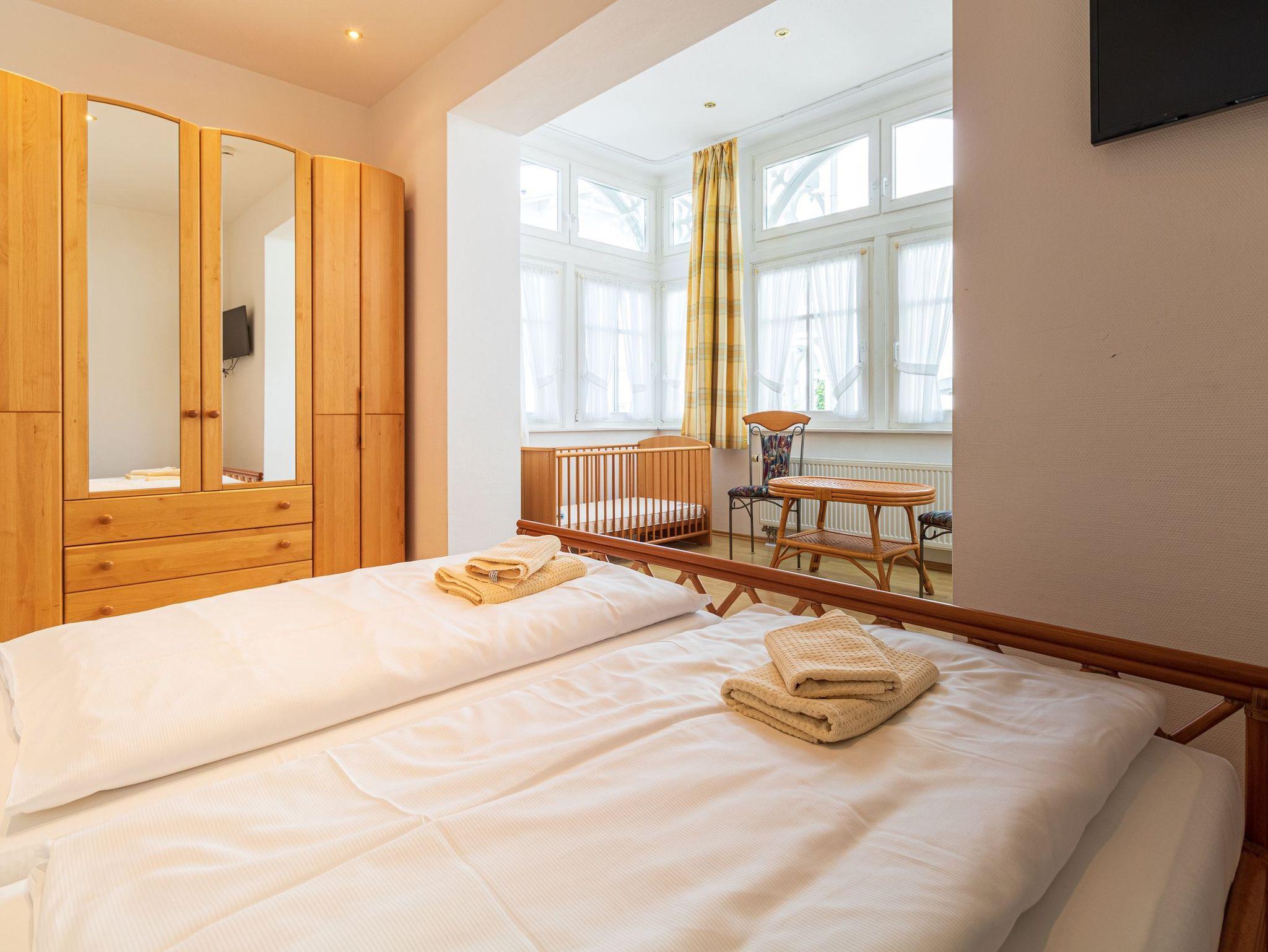 Das moderne, helle 2 Raum ? Apartment bietet Platz für bis zu 4 Personen. Eine Aufbettung für 1 Kind bis 2 Jahre in einem Babyreisebettchen (kostenfrei) ist problemlos möglich. Es liegt im Erdgeschoss der Villa Eden Dependance. Das Nebengebäude der Villa Eden verfügt über 2 Apartments.