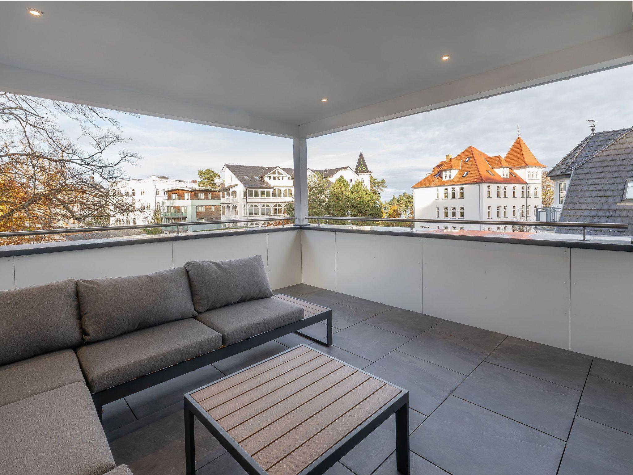 Luxuriöses Penthouse mit Sauna und Meerblick, nur 100 m vom Ostseestrand in Binz entfernt.