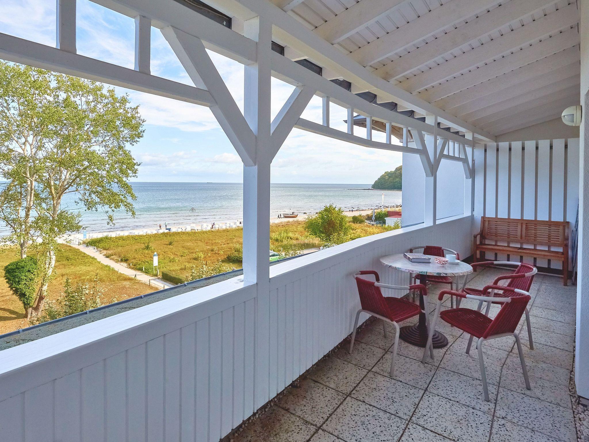 Elegante Maisonette-Wohnung in Binz mit Meerblick und überdachtem Balkon, ideal für entspannte Tage am Strand.