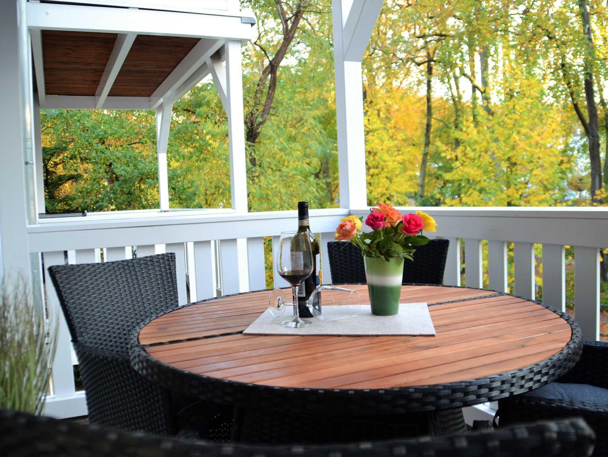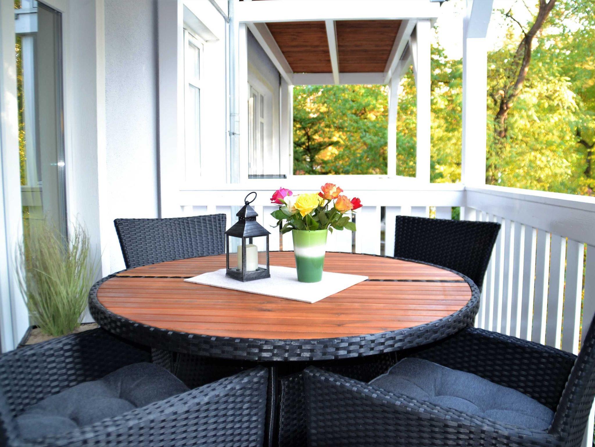 Der möblierte Balkon bietet einen wundervollen Ausblick auf den gegenüber gelegenen Kurpark.