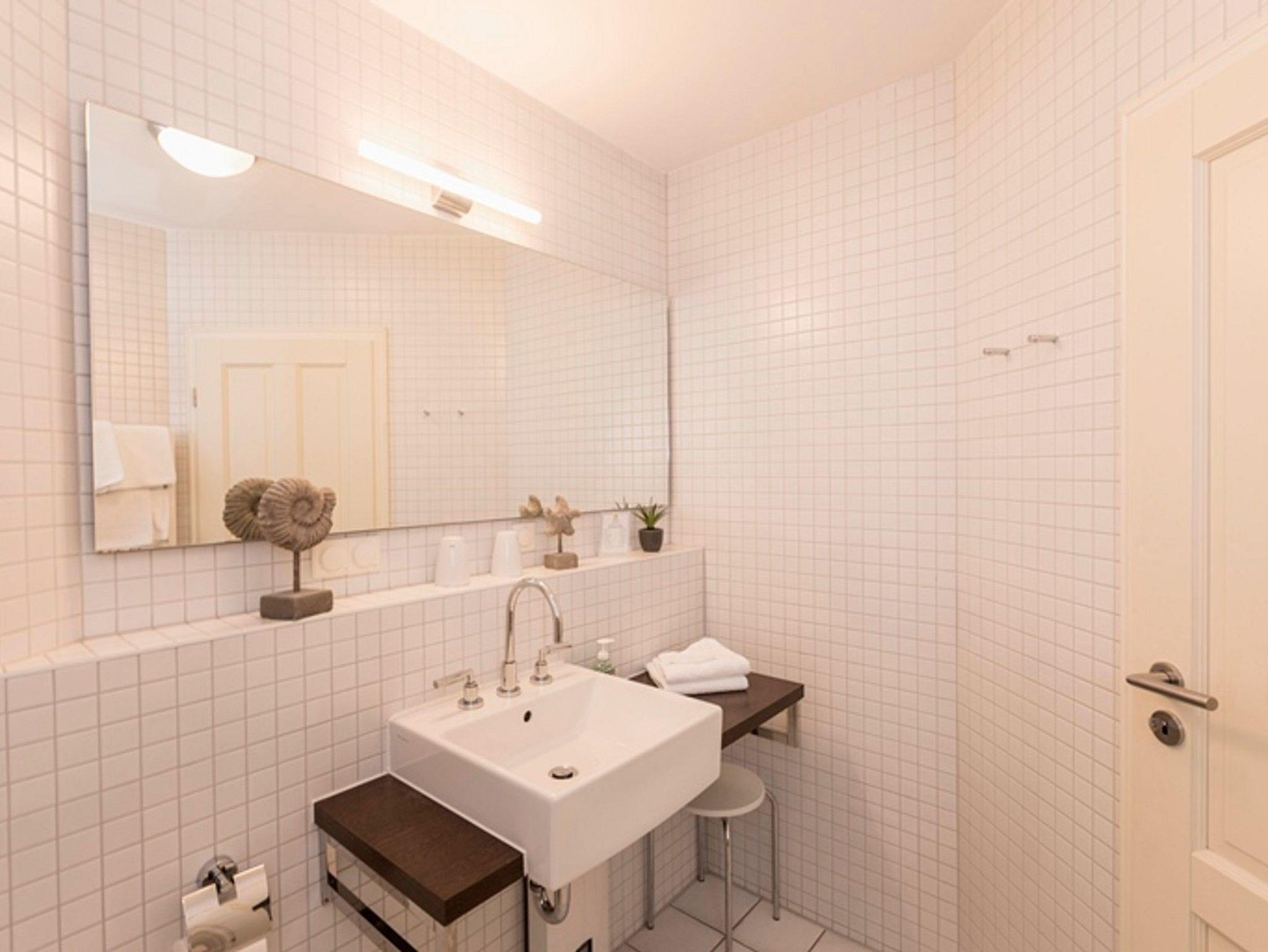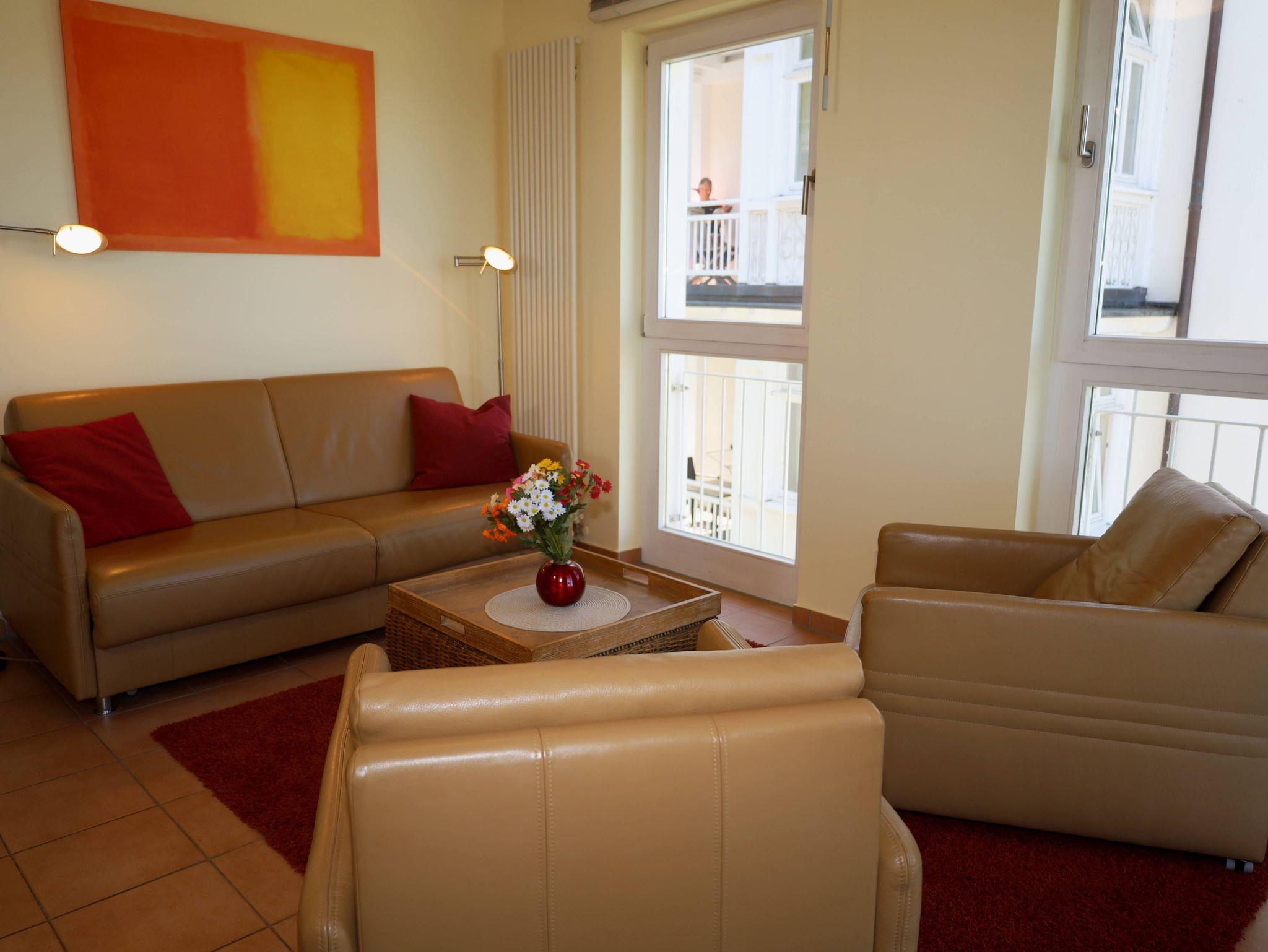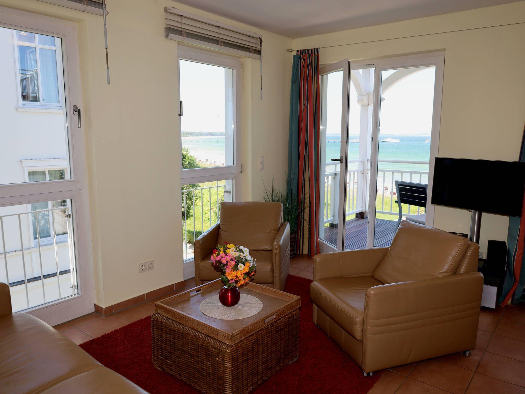 Das 2-Raum-Apartment befindet sich im 2. Obergeschoss und ist ca. 49 m² gross. Haustiere nur auf Anfrage. Die Wohnung verfügt über einen grossen möbilierten Balkon mit frontalem Ostseeblick. Das große und modern eingerichtete Wohnzimmer verfügt über einen Flachbild-TV, Stereoanlage mit CD-Player sowie ein hochwertiges Ledersofa mit Schlaffunktion. Vom Wohnzimmer aus, können Sie einen Panorama-Ostseeblick auf die Binzer Seebrücke und die Kreidefelsen bei Sassnitz genießen.
