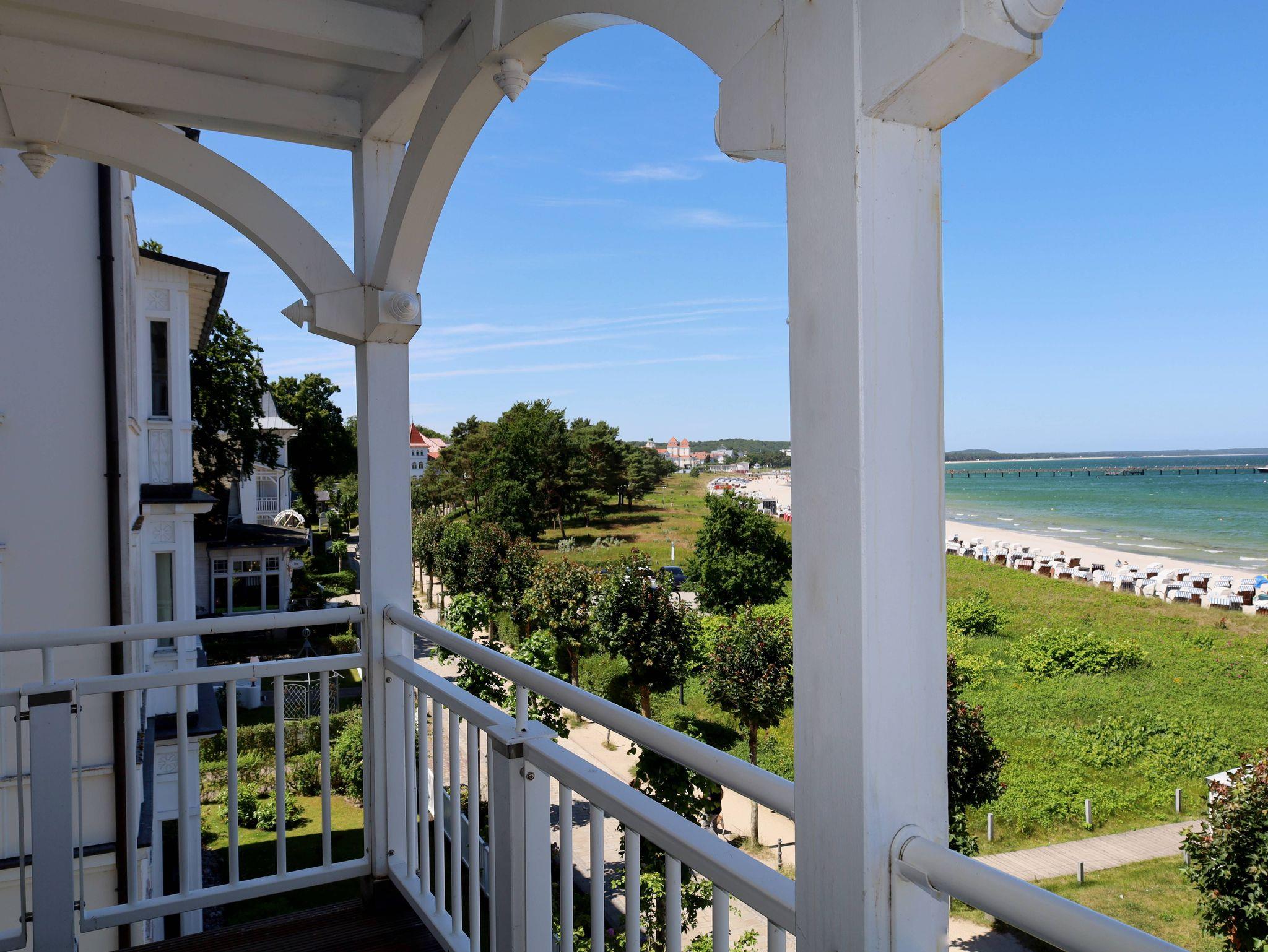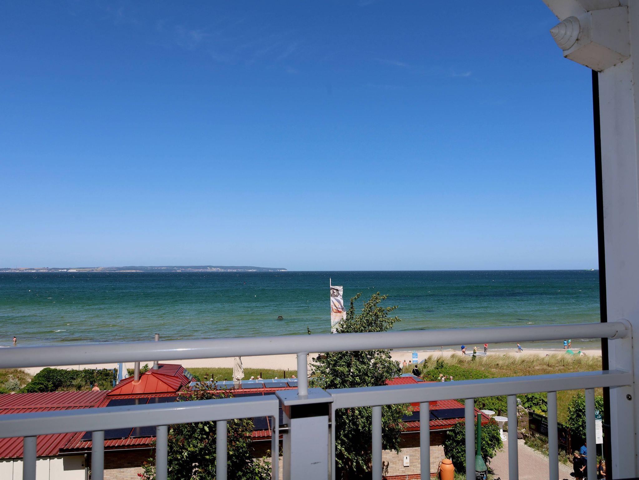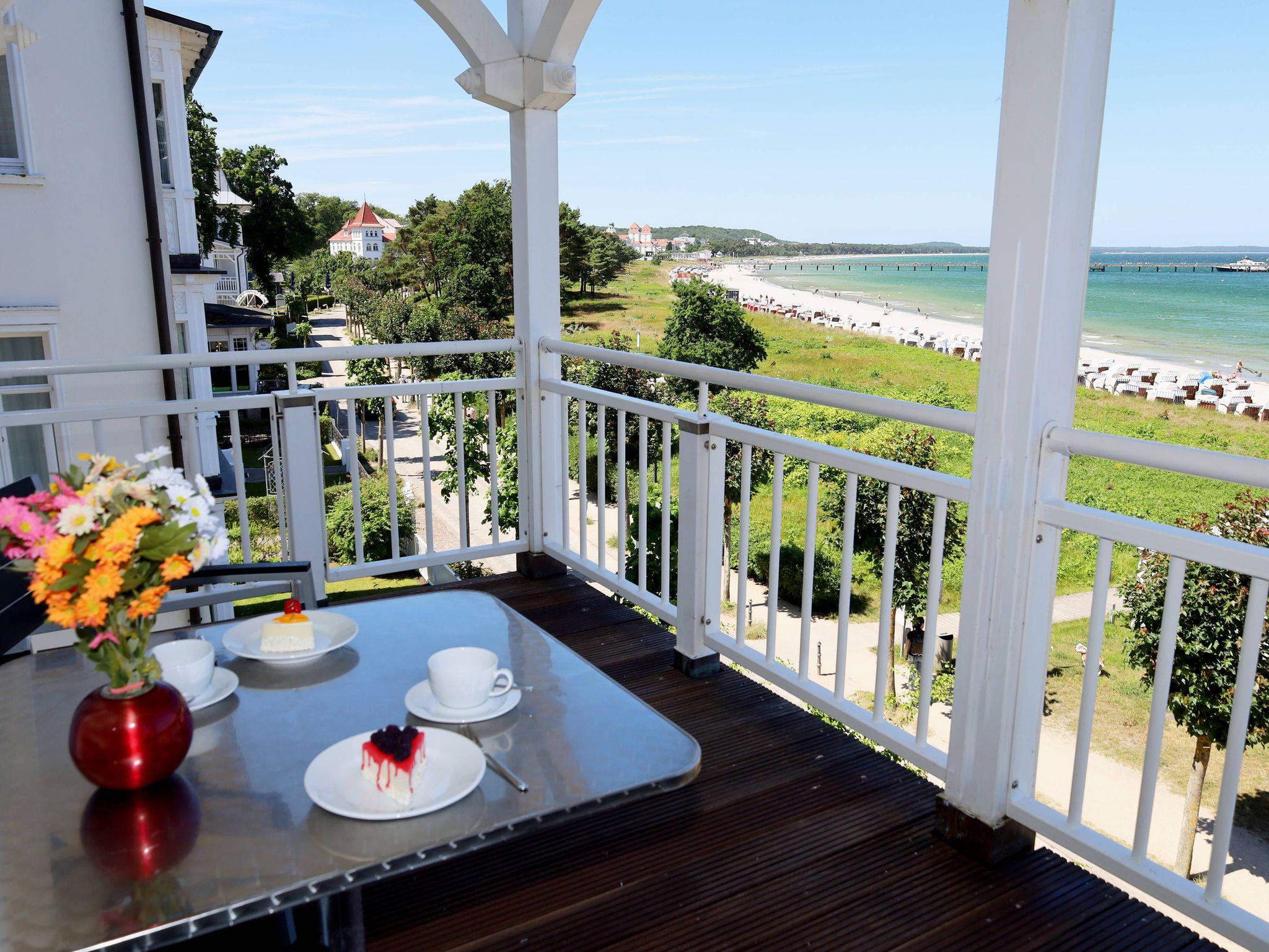 Die Villa Strandperle in Binz bietet ein modernes Apartment mit Balkon und traumhaftem Ostseeblick, nur 20 Meter vom Strand entfernt.