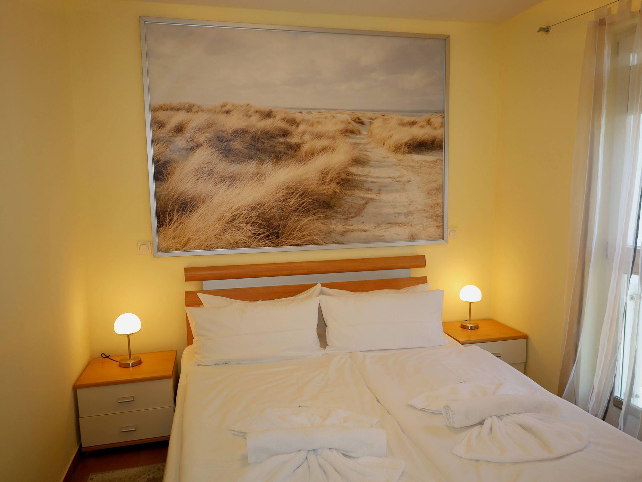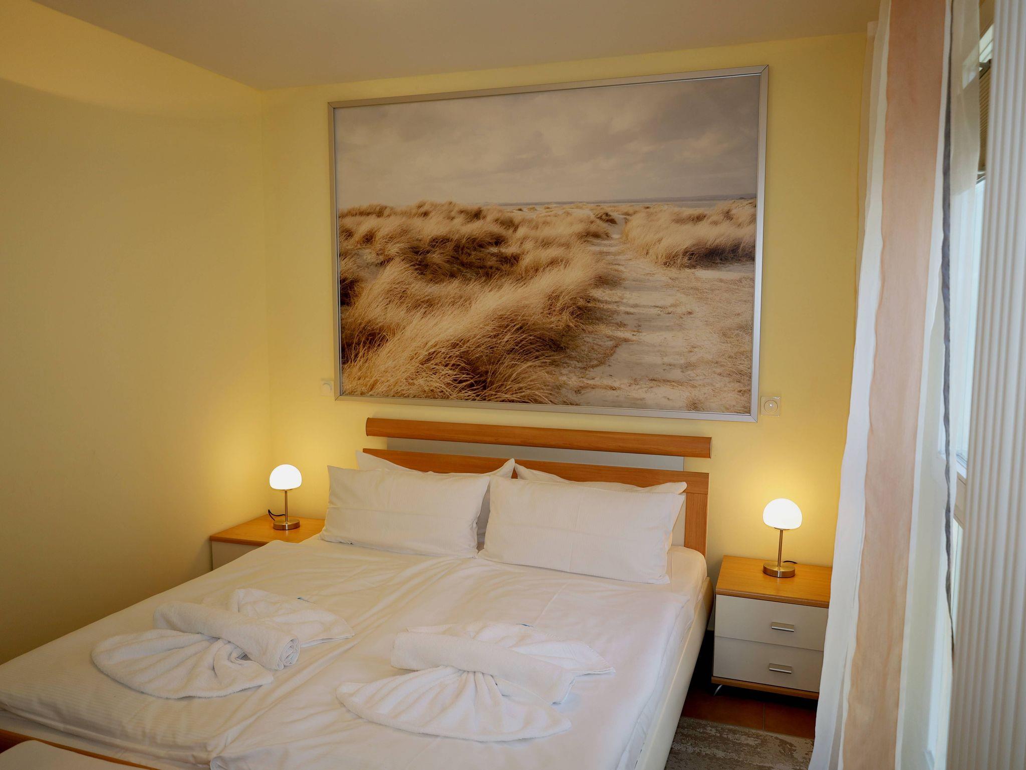 Das Schlafzimmer verfügt über ein komfortables Doppelbett und großem Kleiderschrank. Badezimmer mit Eckdusche, WC und Fön. In den Sommermonaten steht Ihnen ein Strandkorb zur Verfügung. Ein PKW-Stellplatz gehört kostenfrei zum Apartment dazu. W-Lan ist ebenfalls vorhanden.