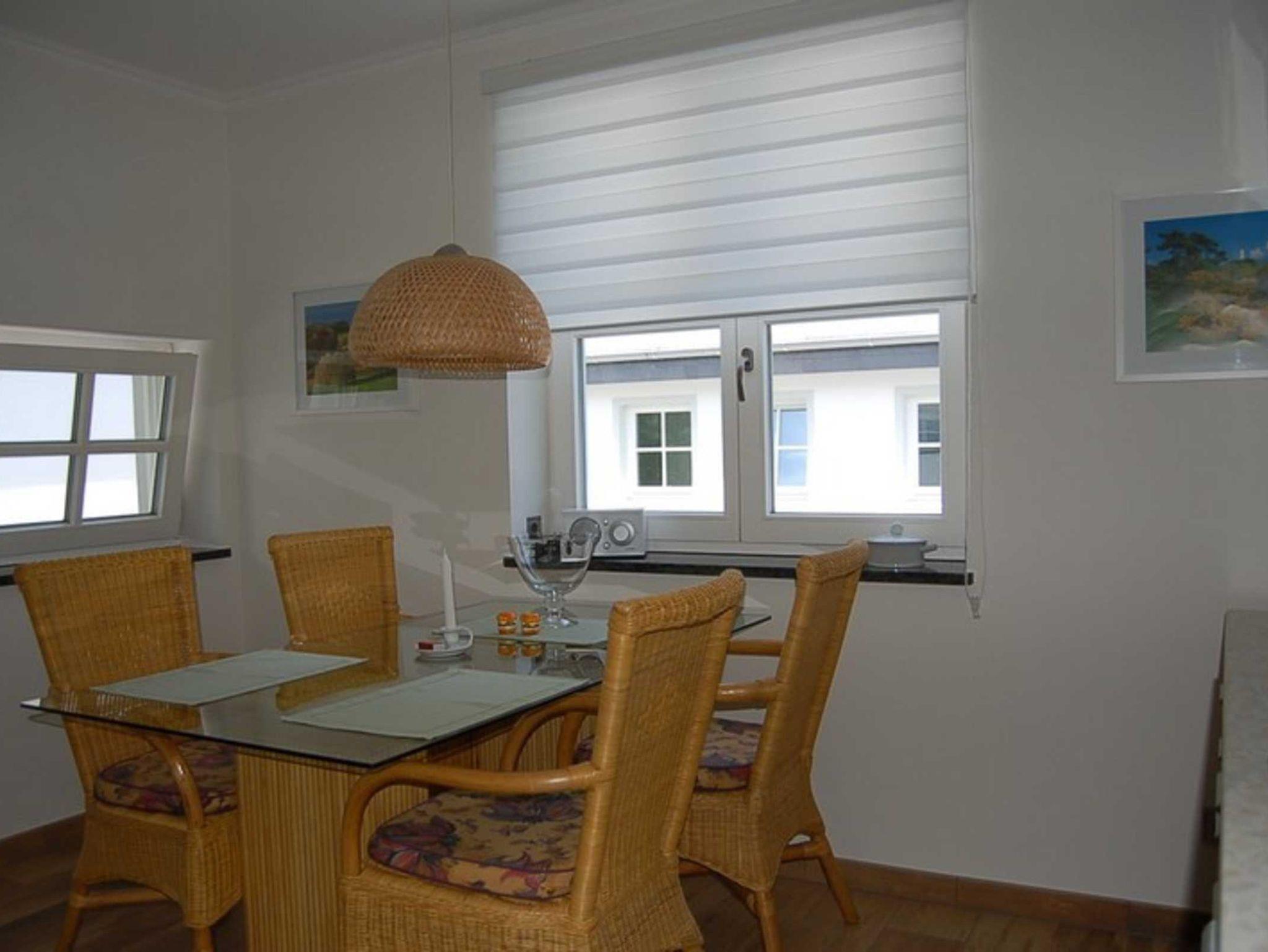 Die Kücheneinrichtung ist umfassend und befindet sich in einem separaten Raum. Hier werden Ihnen alle Annehmlichkeiten einer komfortablen Selbstversorgung geboten: Kühlschrank und Tiefkühlschrank, Backofen mit 4-fach Ceranfeld, Geschirrspüler, Mikrowelle, Kaffeemaschine, Toaster, Wasser- und Eierkocher. Geschirr, Gläser, Bestecke und „Küchenwerkzeuge“ sind mehr als reichlich vorhanden. Der große Küchentisch mit bis zu 5 Stühlen bietet auch für Besucher noch reichlich Platz.
