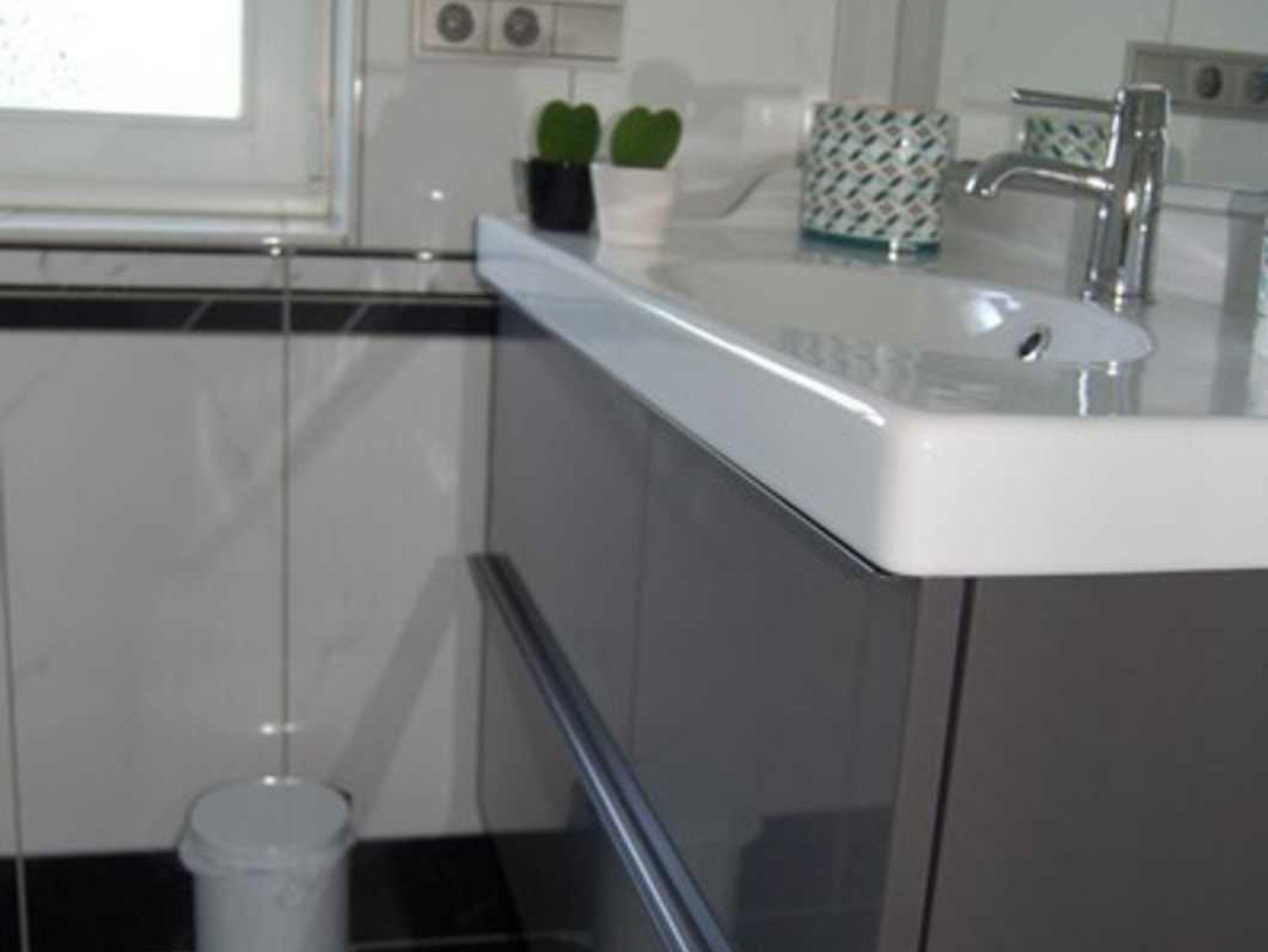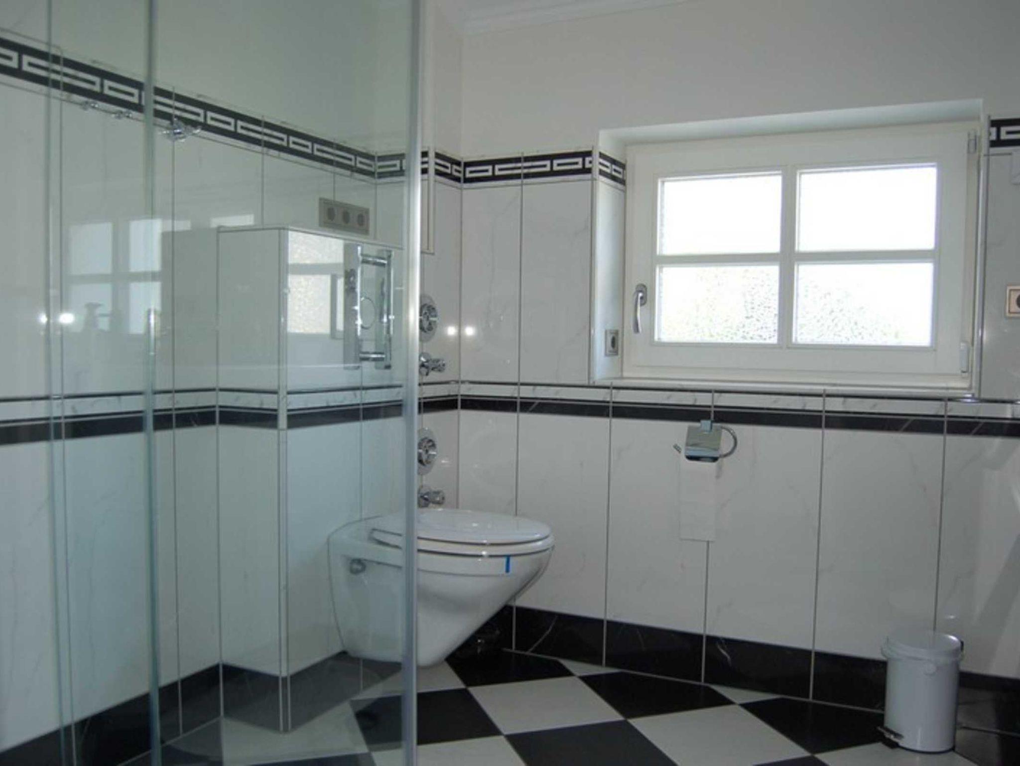 Das Duschbad, mit bodengleicher Duschwanne und Fenster, ist geschmackvoll und hochwertig gefliest, mit einem Handtuchtrockner, Föhn und umfangreichen Unterbringungsmöglichkeiten für Ihre Utensilien ausgestattet.