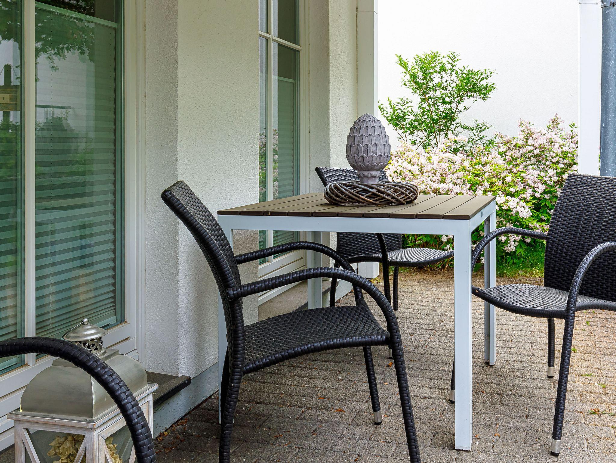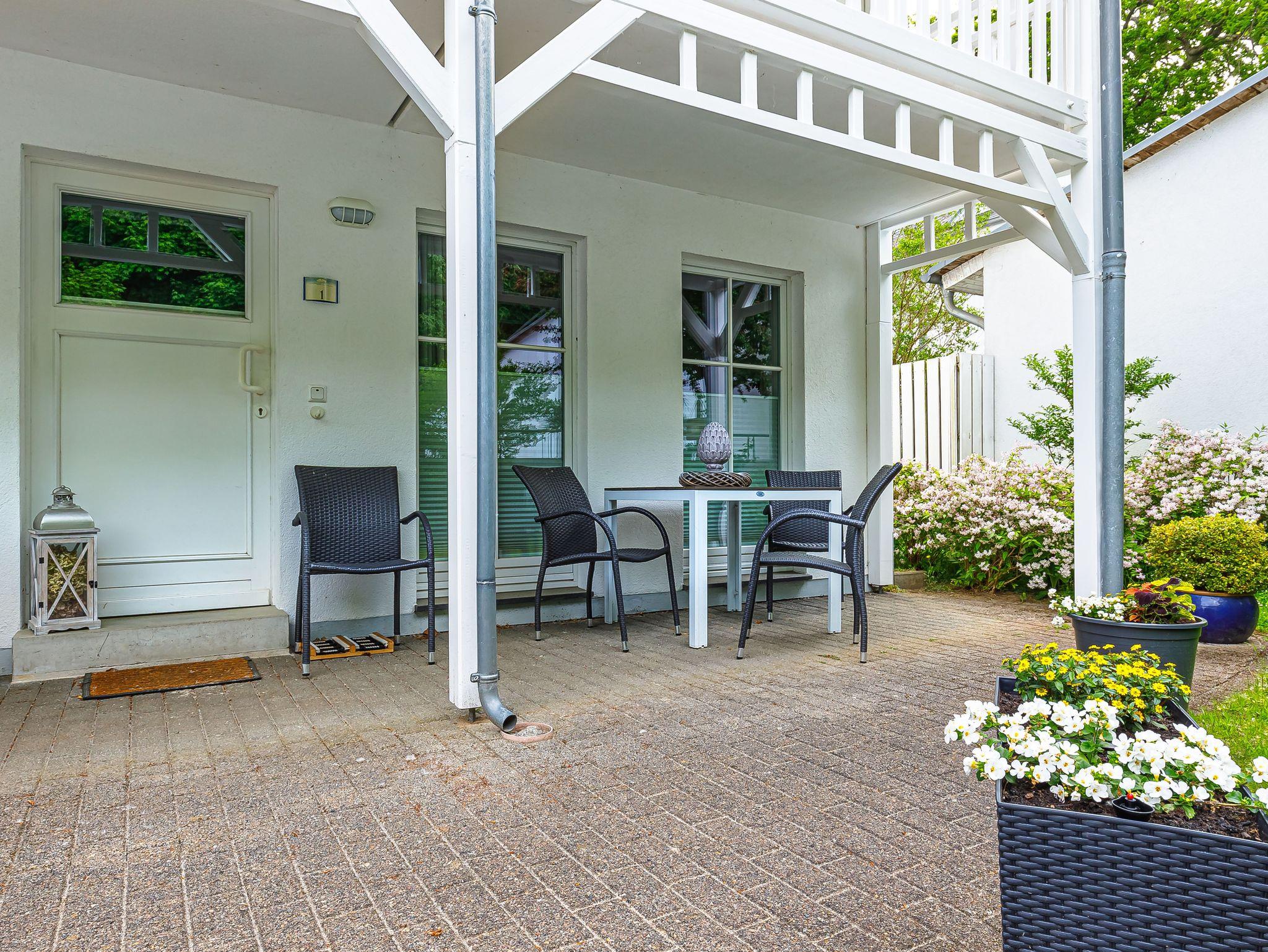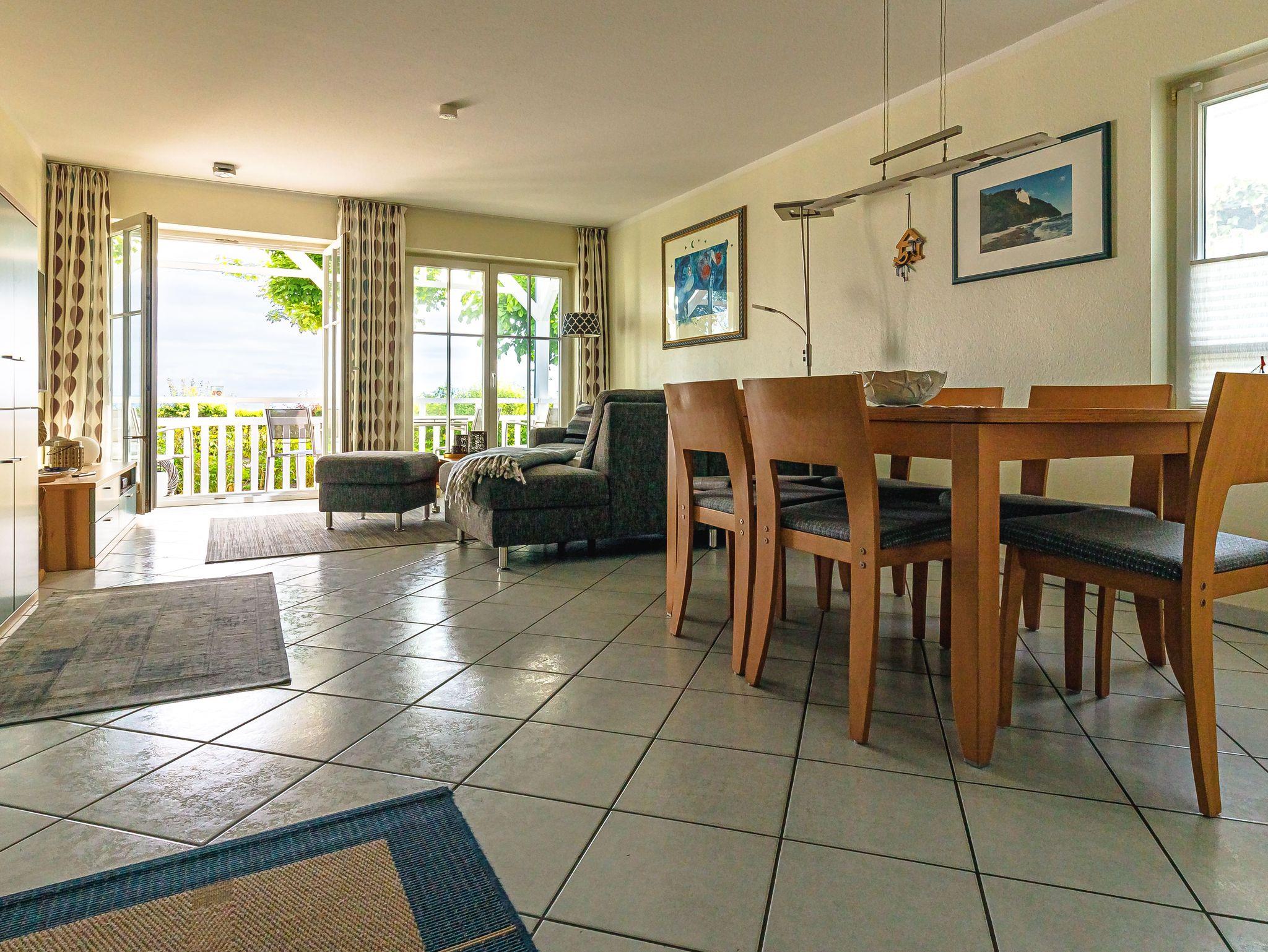 Das ca. 63 m² 3-Raum-Apartment befindet sich im Erdgeschoss. Zugang zum Apartment erhält man durch einen separaten Eingang hinter dem Haus. Das modern eingerichtete Apartement verfügt über einen Balkon mit frontalem Meerblick sowie einer Terrasse zur Südseite.