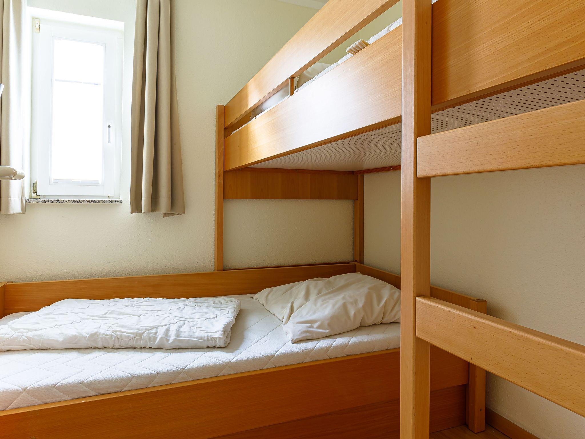 Eine Belegung mit 4 Personen wäre möglich, mit Einschränkungen. Die Aufbettung diesbezüglich befindet sich im Zimmer mit dem Einzelbett in einem Hochbett.