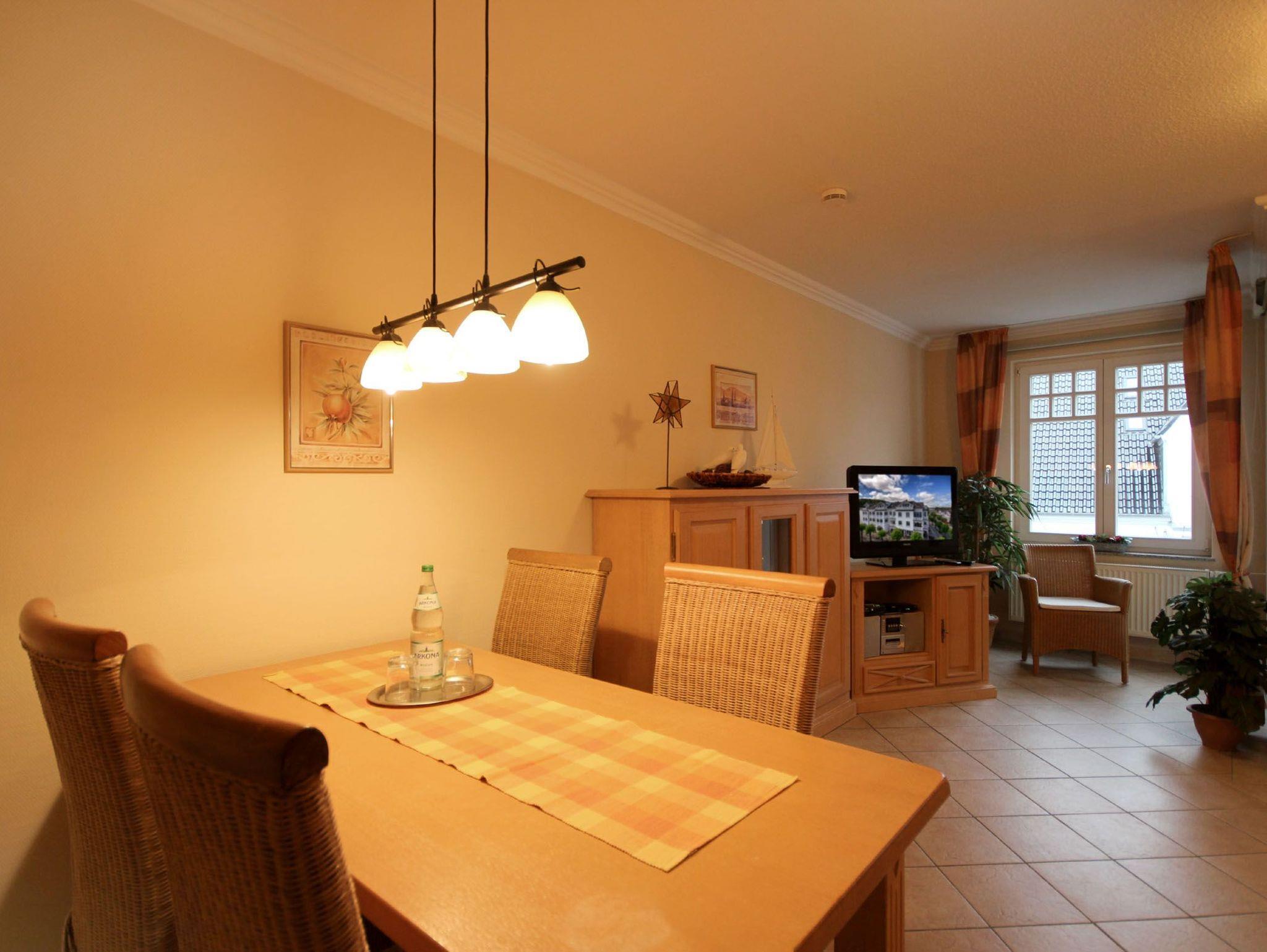 Ihre Nichtraucher-Ferienwohnung 21RB7 befindet sich im 1. Obergeschoss. Die 2-Raum-Komfortwohnung hat eine Größe von ca. 48 qm und ist mit bis zu 4 Personen belegbar. Auf dem Westbalkon der Wohnung können Sie die Abendsonne genießen. Neben dem Wohnraum mit integrierter Küche gibt es einen separaten Schlafraum, Flur und ein Badezimmer mit Waschtisch, Dusche und WC. Im Schlafraum befindet sich ein Doppelbett, Flachbild-TV und ein Kleiderschrank. Im Wohnraum können auf dem Schlafsofa (160x200) weitere zwei Personen schlafen. Sie finden dort auch Flachbild-TV, einen kostenfreien WLAN-Zugang und Radio/CD-Spieler. Die Küche ist mit Geschirrspülmaschine, Cerankochfeld, Backofen, Mikrowelle, Kühlschrank und diversen Kleingeräten komplett ausgestattet. Ein Kinderhochstuhl, ein Kinderbett und ein Zustellbett ( für eine evt. 5. Person ) sind auf Anfrage ebenfalls vorhanden. Ein überdachter Stellplatz steht Ihnen im nahe gelegenen Parkhaus (zwei Gehminuten) kostenlos zur Verfügung.