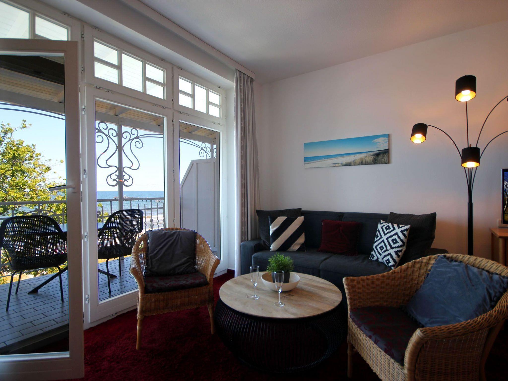 Komfortable Ferienwohnung mit Meerblick, Sauna und WLAN in Binz, ideal für bis zu 4 Personen und Haustiere willkommen.