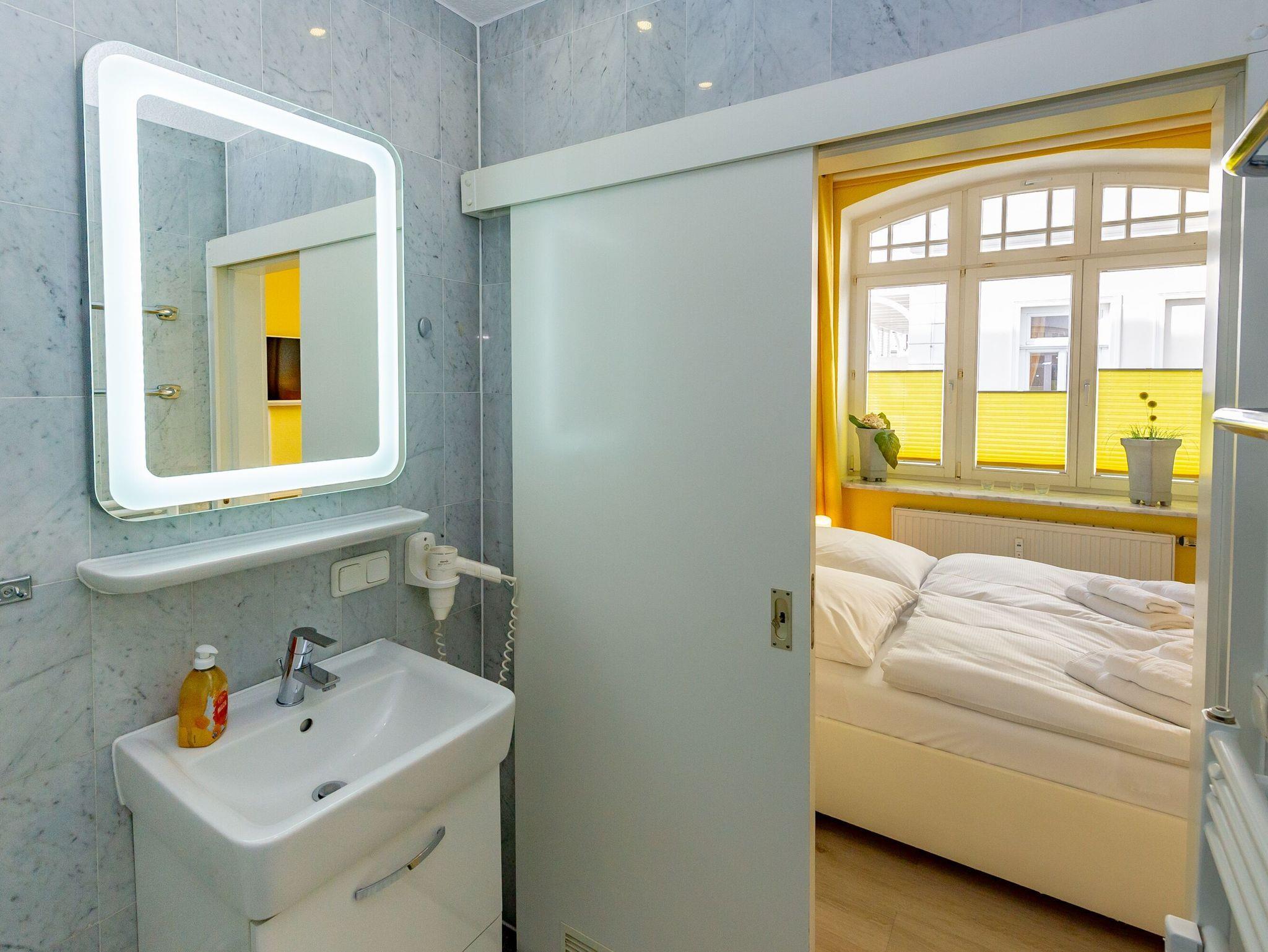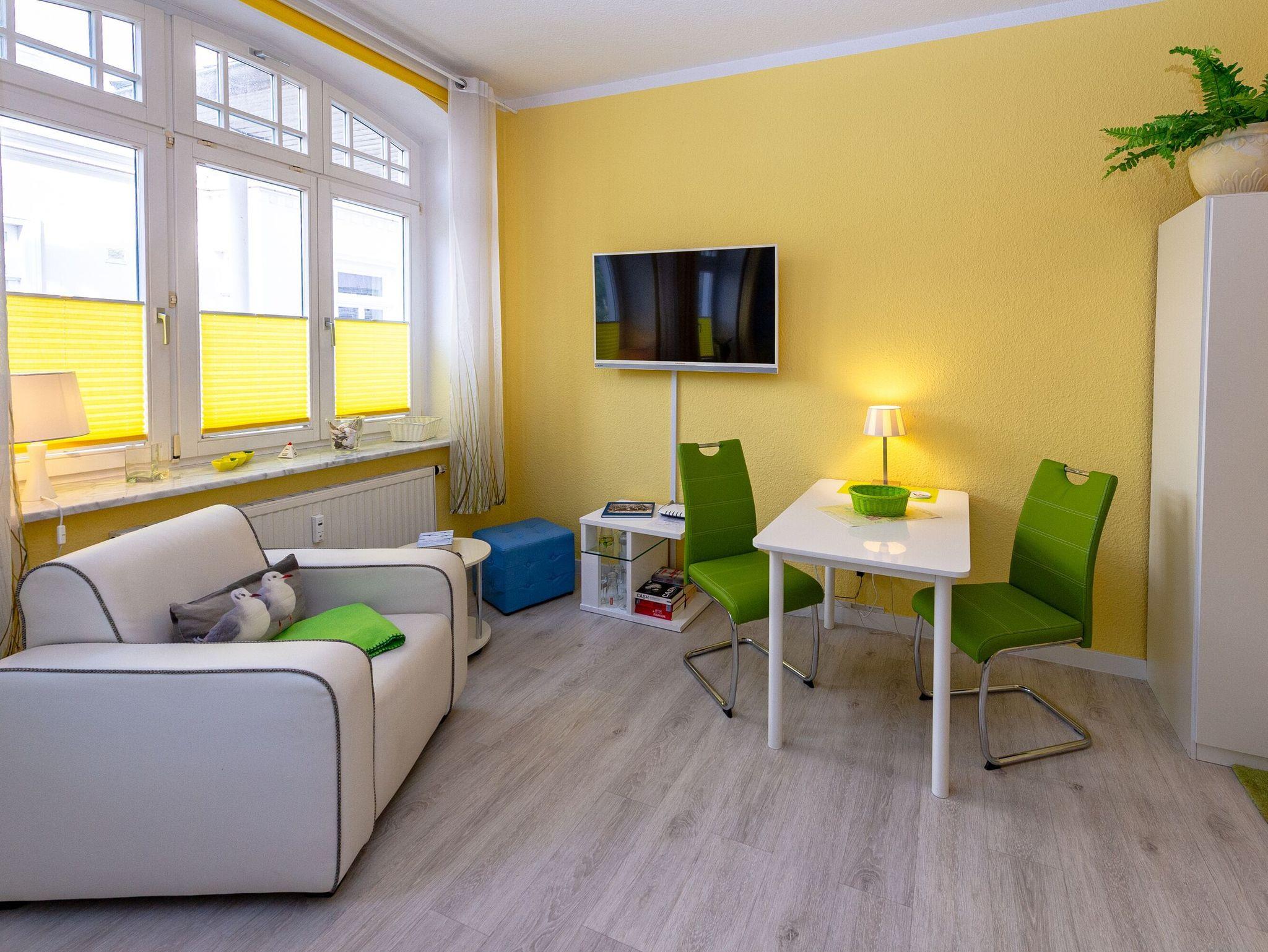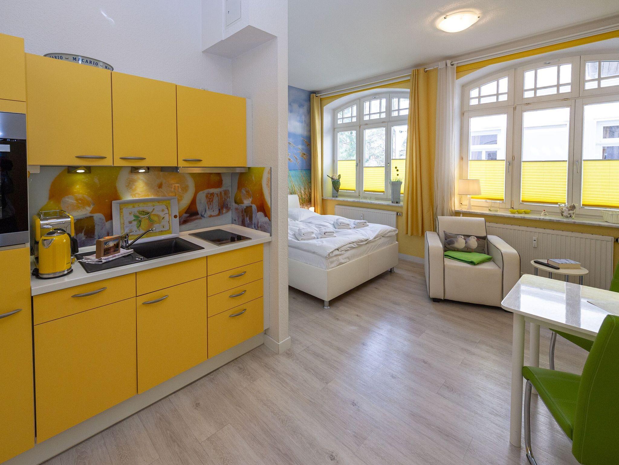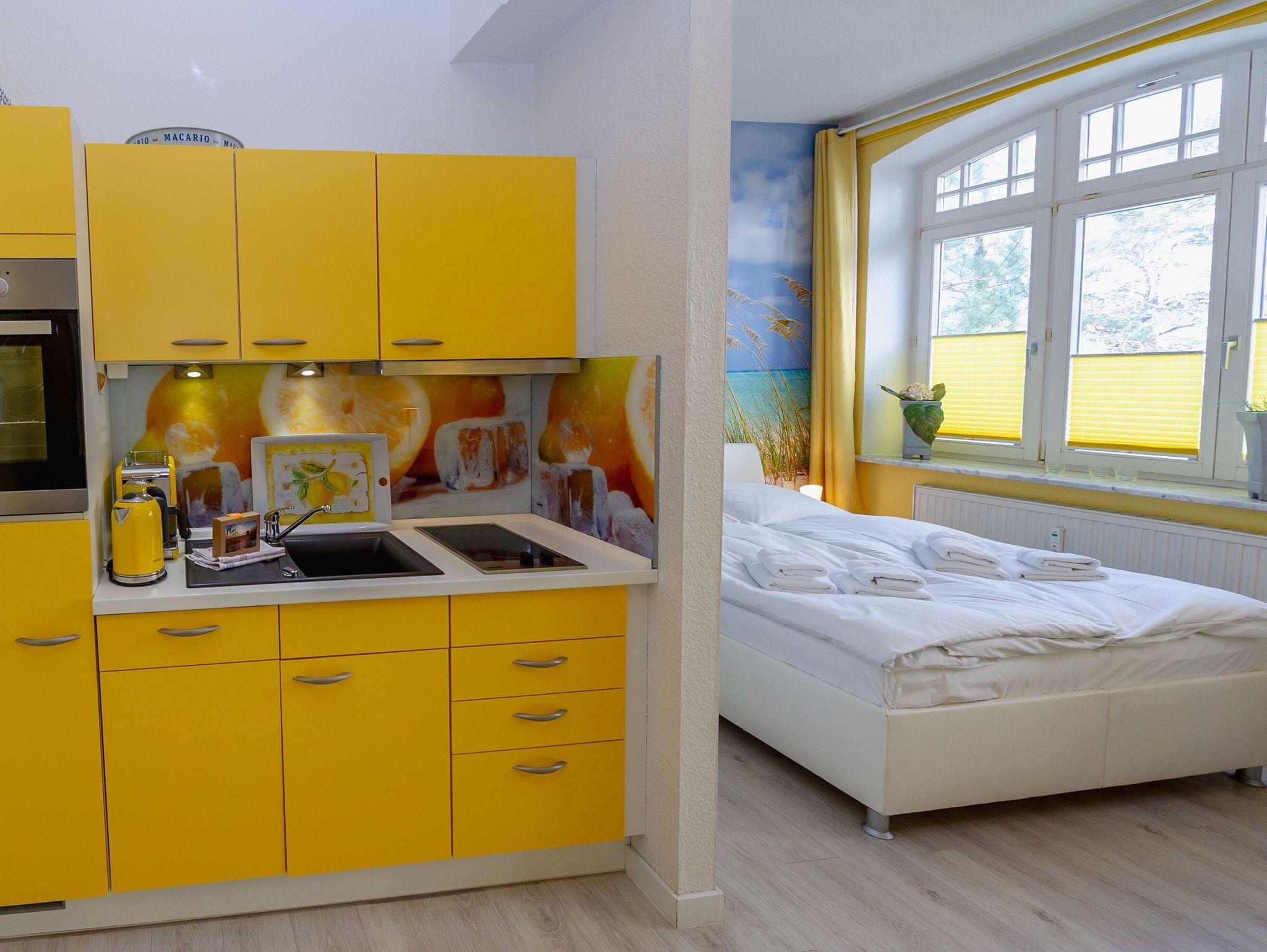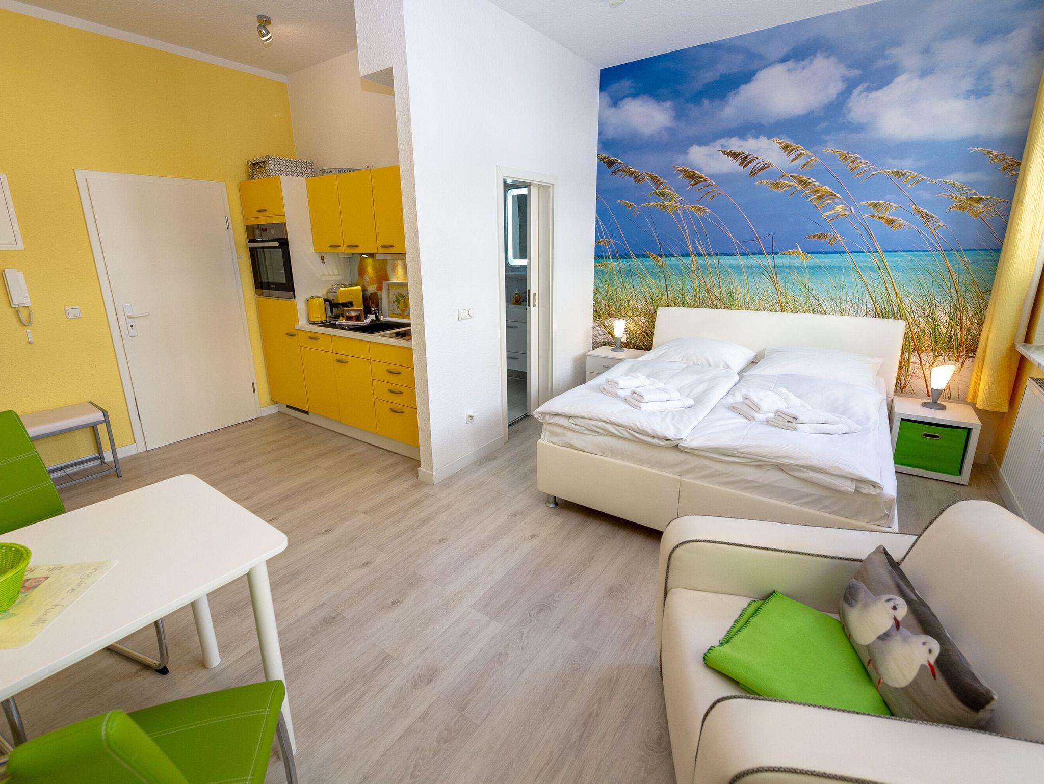 Modernes 1-Zimmer-Appartement in der Villa Sirene mit seitlichem Meerblick und kostenfreiem Strandkorb in Binz.