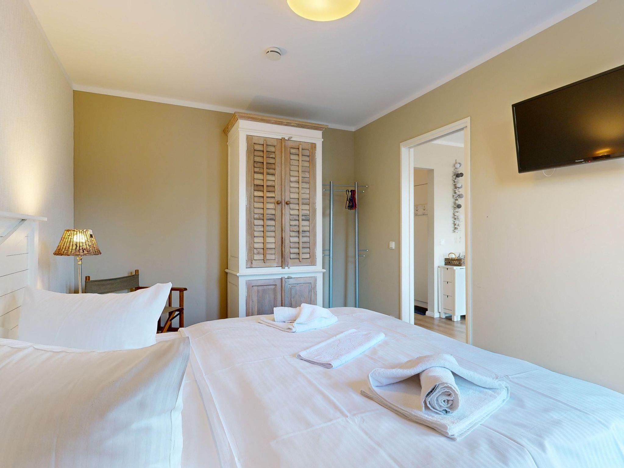 1 Schlafzimmer mit einem Doppelbett, Kleiderschrank und TV