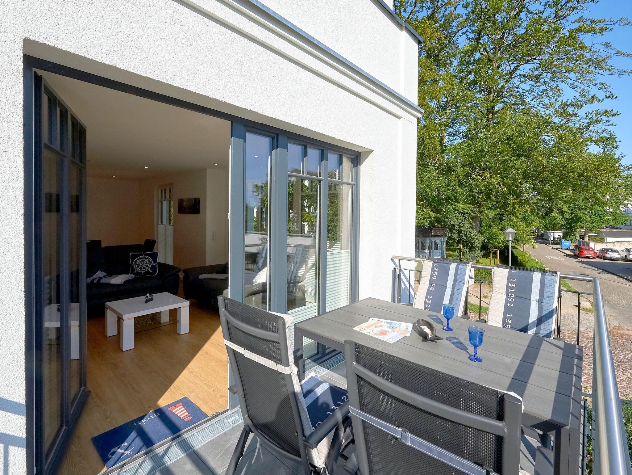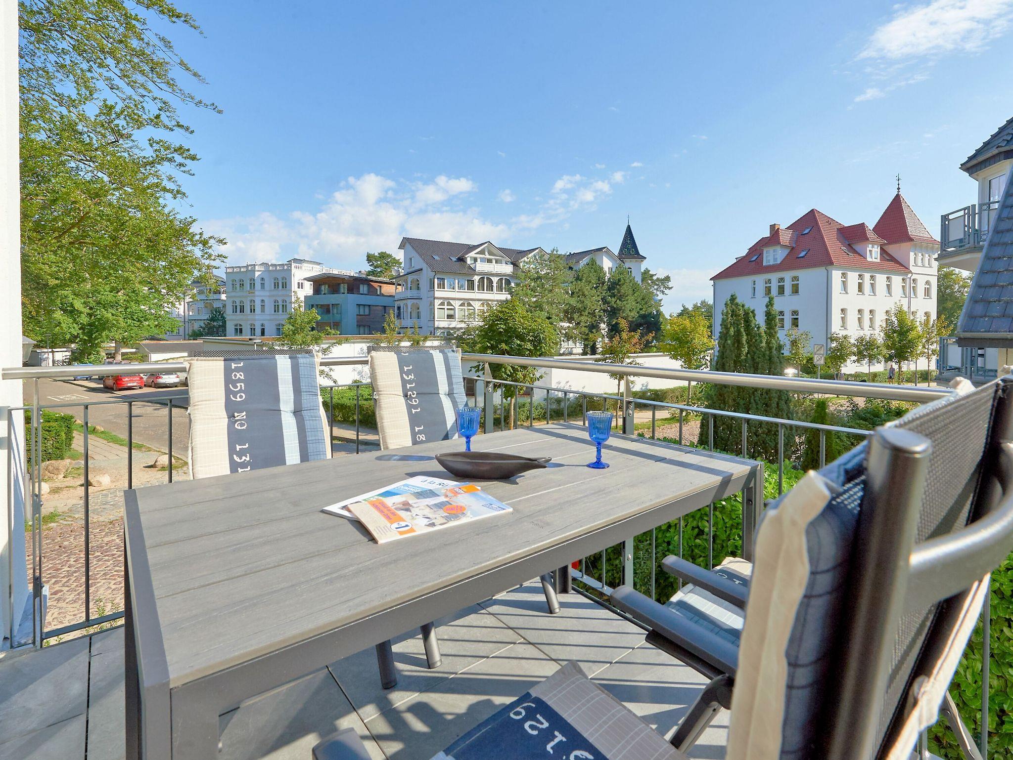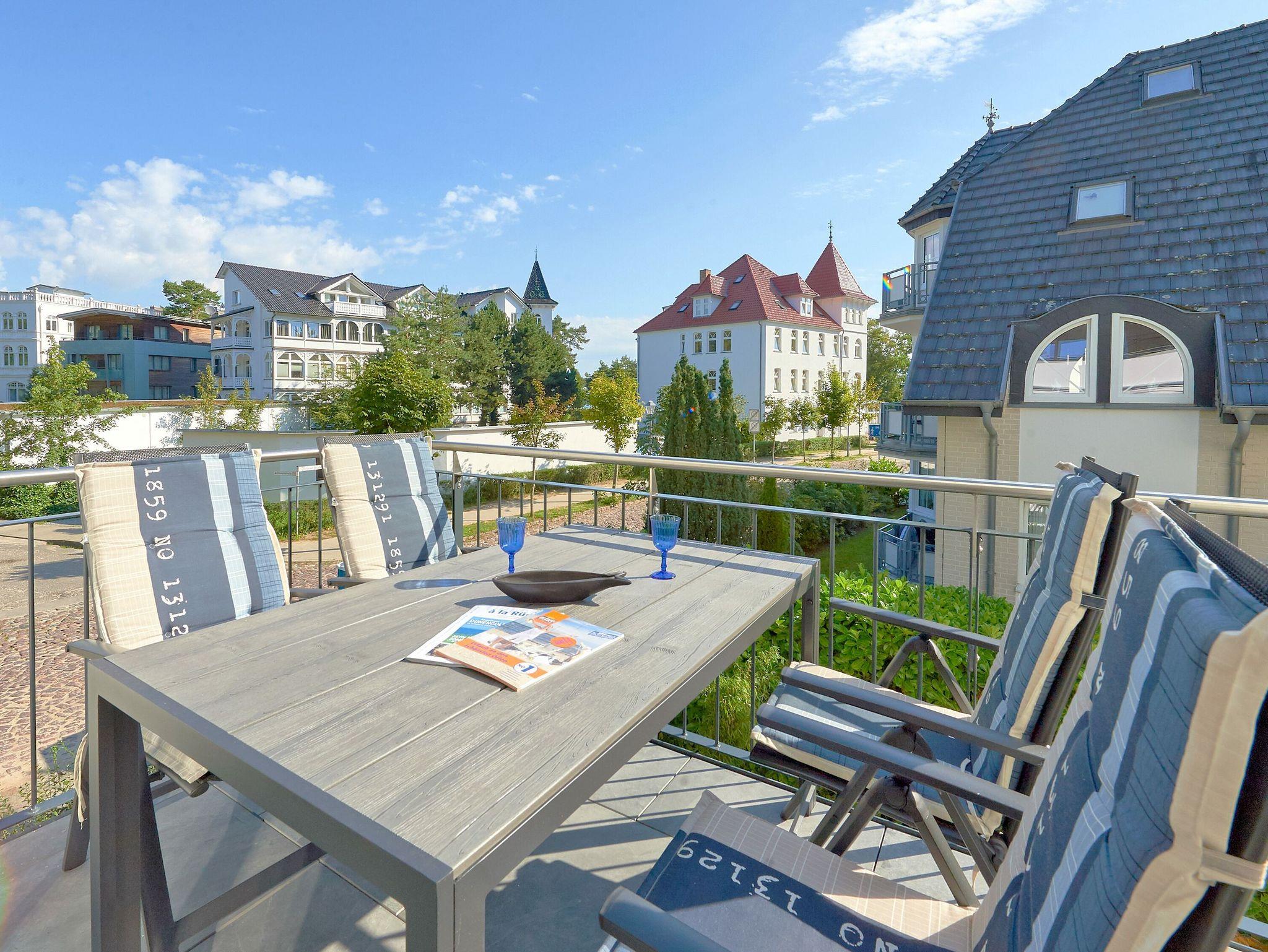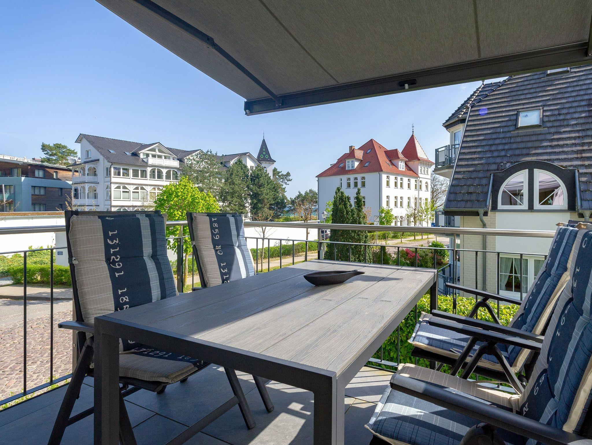 Modernes 3-Raum-Appartement mit Balkon, Meerblick und umfangreicher Ausstattung in Binz, ideal für einen entspannenden Ostseeurlaub.