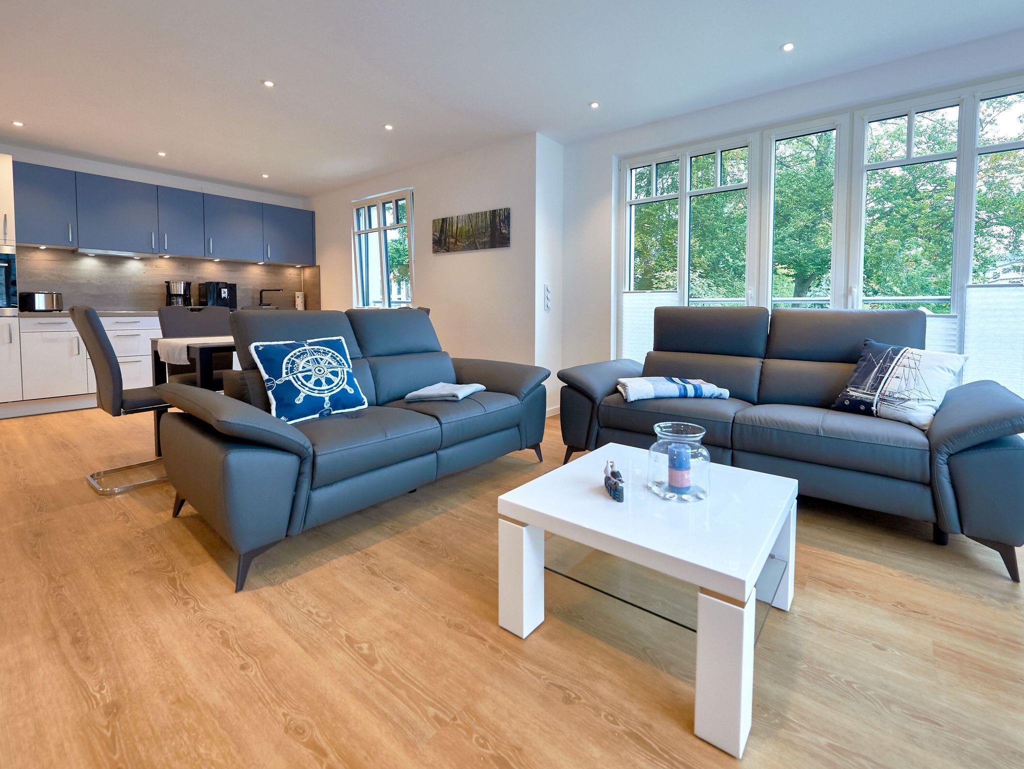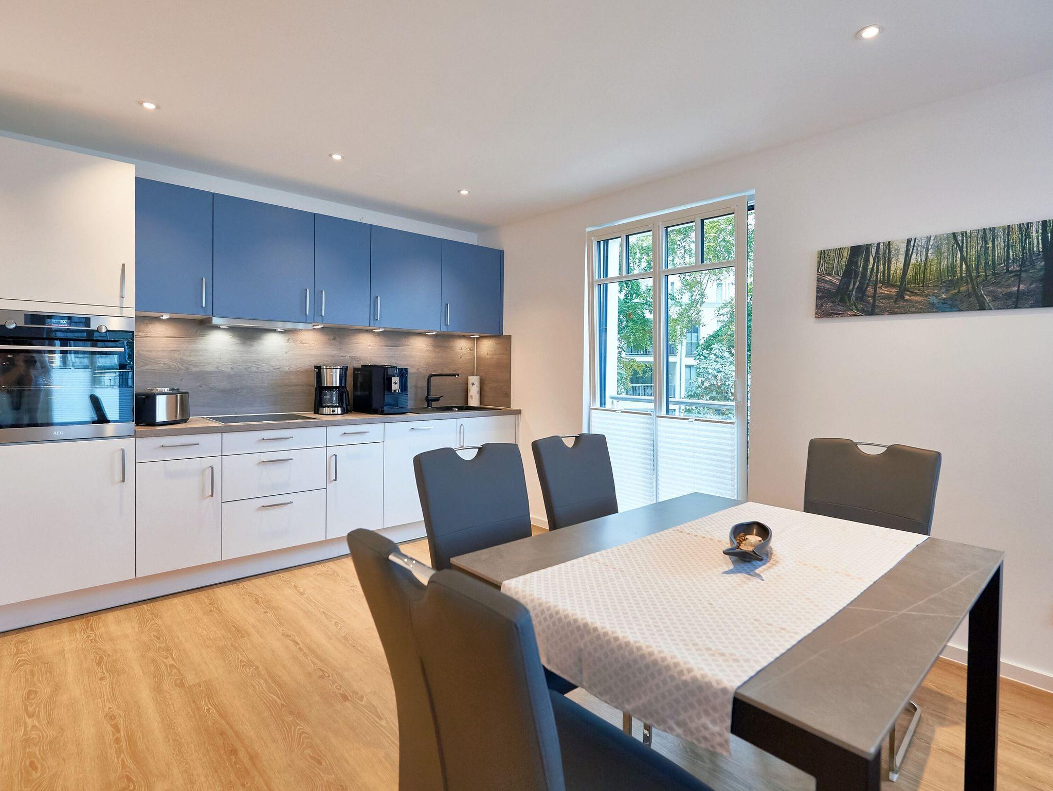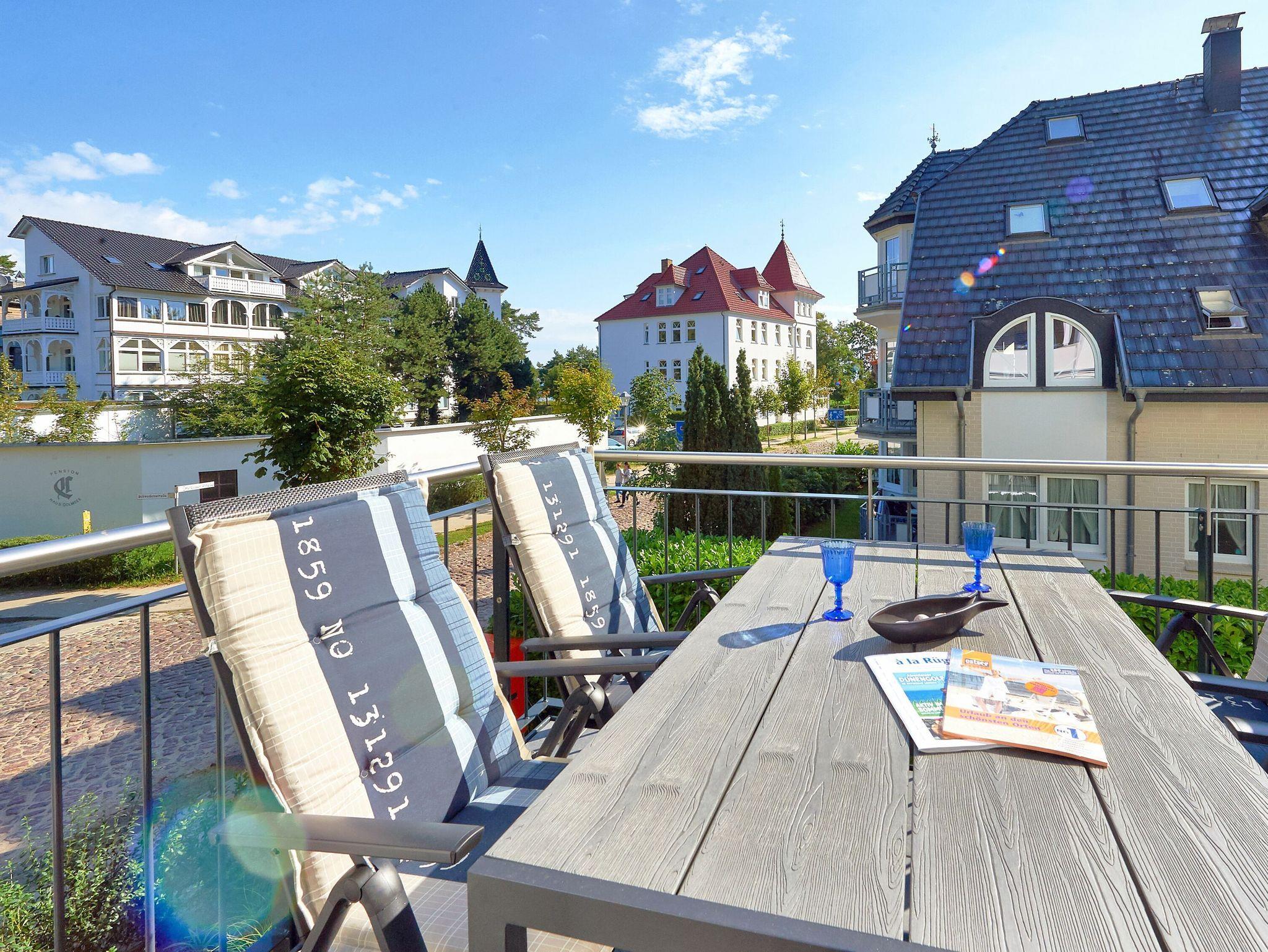 Modernes 3-Raum-Appartement mit Balkon, Meerblick und umfangreicher Ausstattung in Binz, ideal für einen entspannenden Ostseeurlaub.