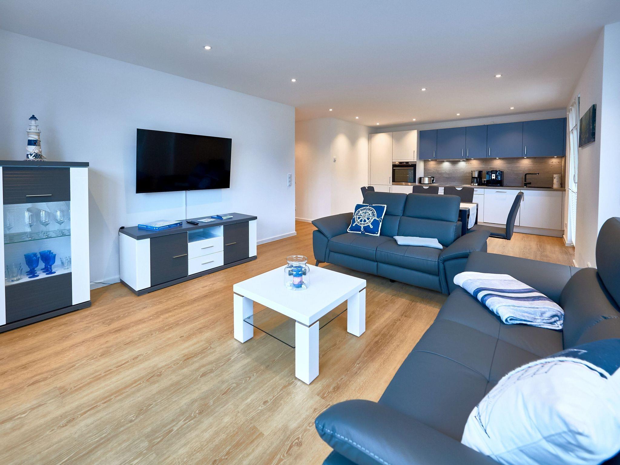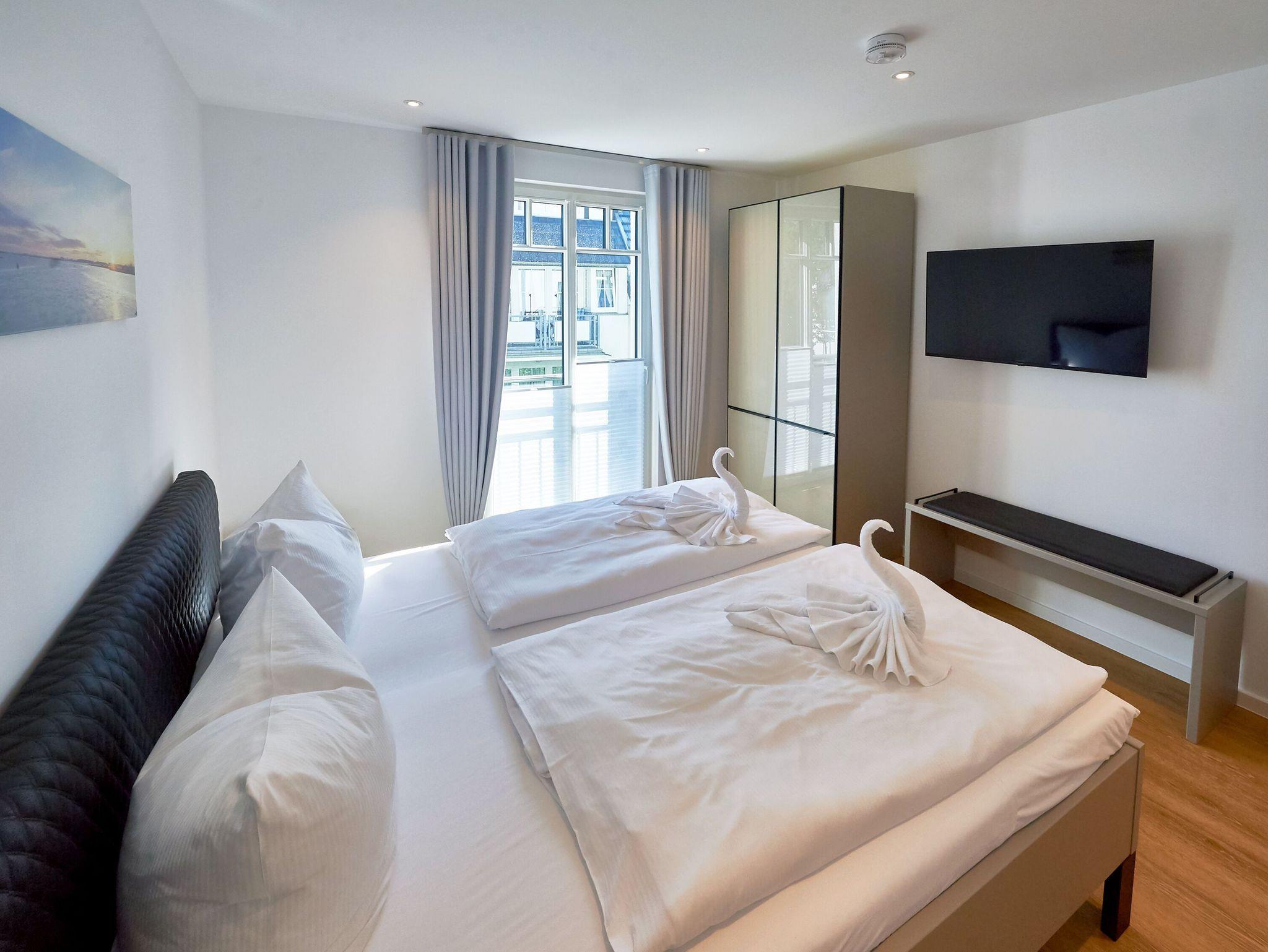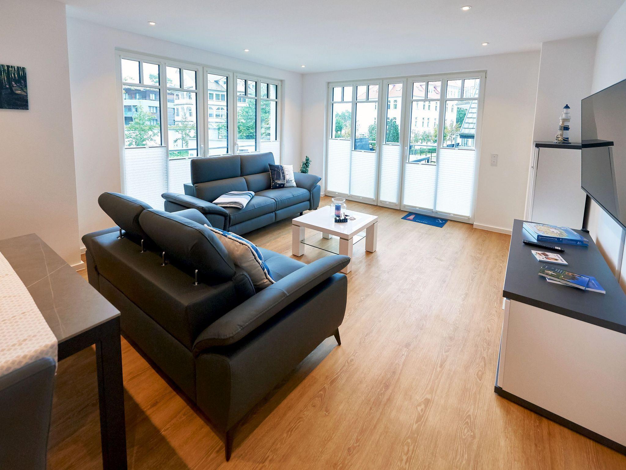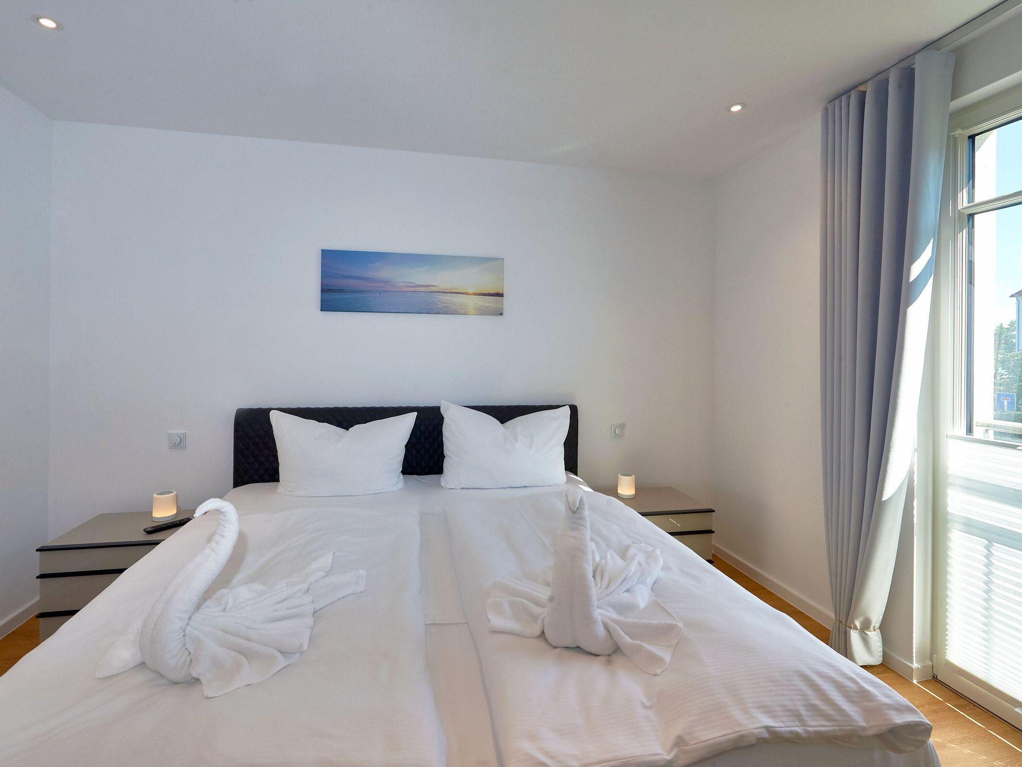 Modernes 3-Raum-Appartement mit Balkon, Meerblick und umfangreicher Ausstattung in Binz, ideal für einen entspannenden Ostseeurlaub.