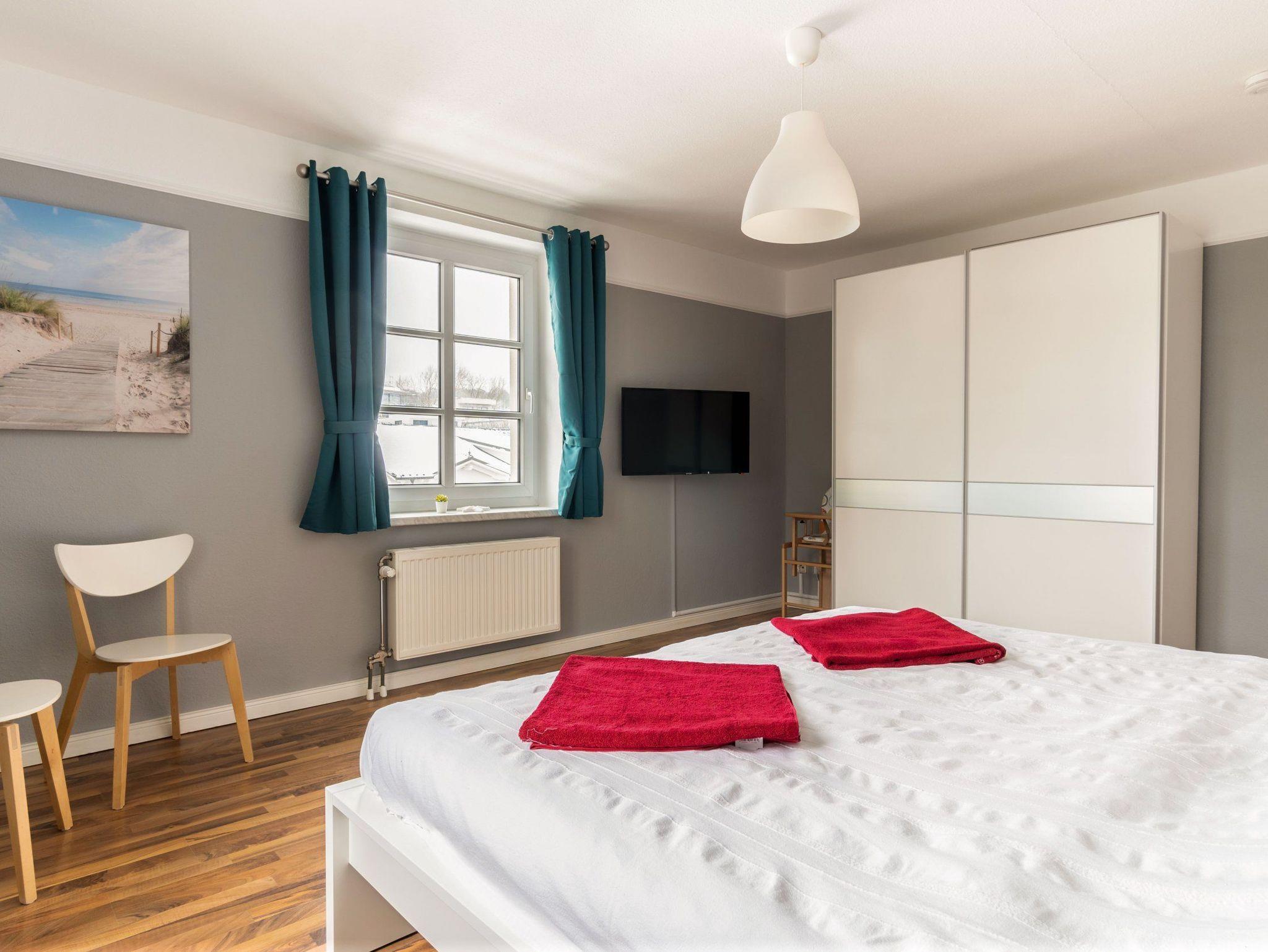 Beide Schlafzimmer sind mit einem Doppelbett, TV sowie Kleiderschränken ausgestattet. Ein Duschbad rundet die Einrichtung des Apartments ab.