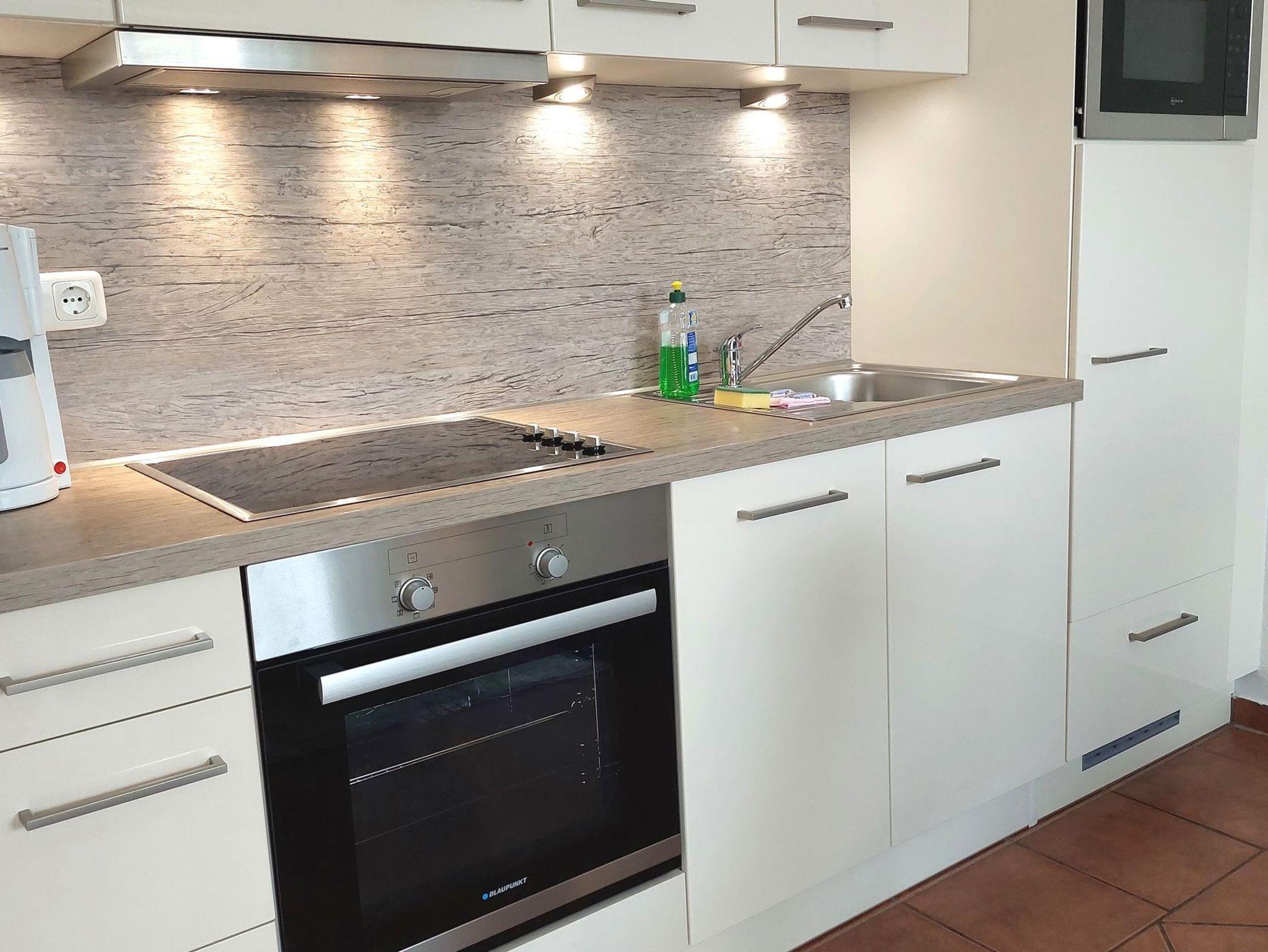 Diese schöne und helle Wohnung teilt sich auf in einen Wohnraum mit Terrassenzugang und kompletter Küchenzeile, zwei vollwertige Badezimmer, zwei separate Schlafräume und Flur. Im Wohnraum finden Sie neben der Sitzgruppe mit Sofa noch einen separaten Essplatz. Ein Flachbildfernseher und WLAN gehören zur Ausstattung.