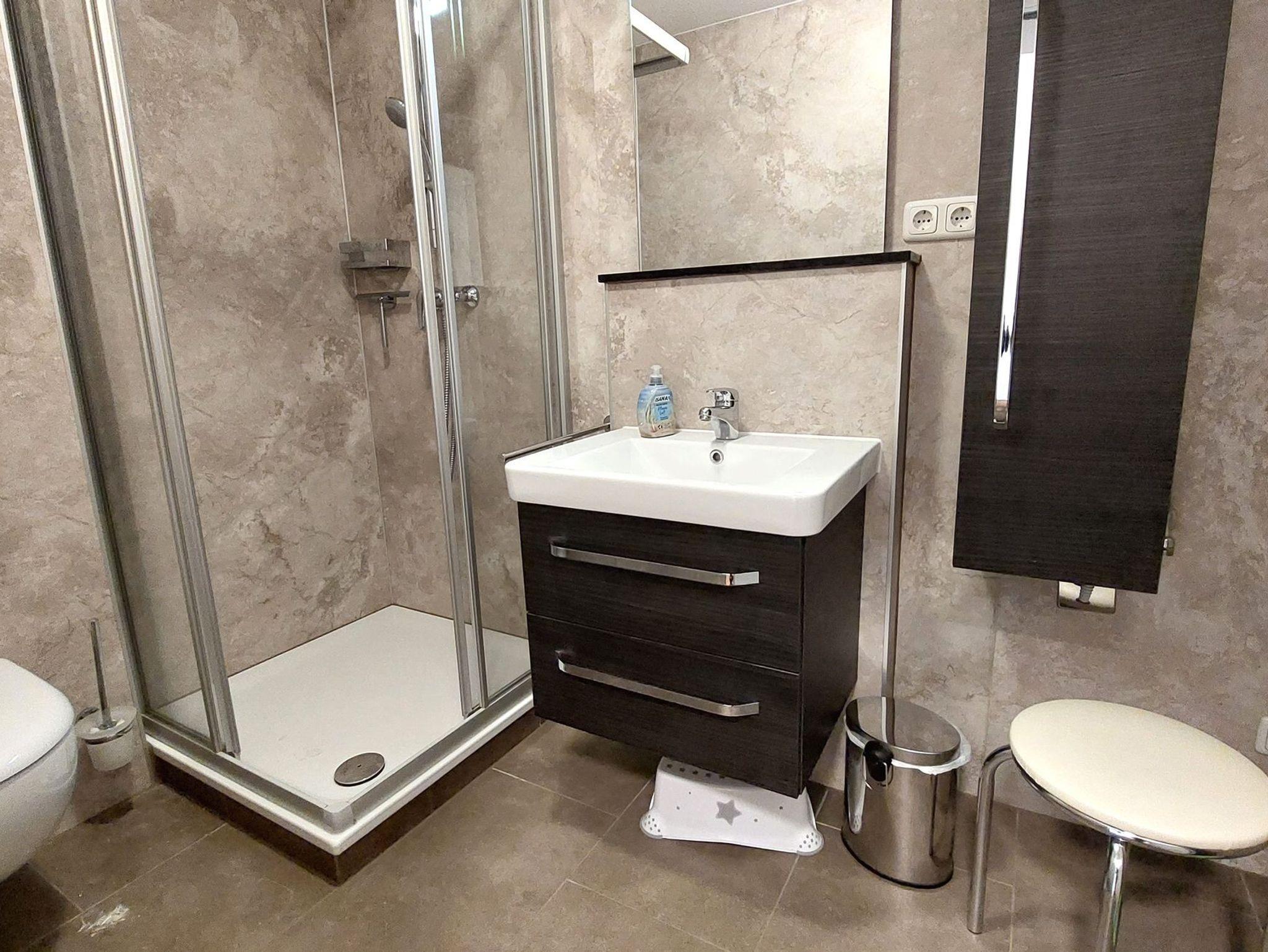 Die beiden Schlafräume sind jeweils mit einem Doppelbett und Kleiderschrank ausgestattet. Im Hauptschlafzimmer finden Sie einen zusätzlichem TV. Das kleinere Schlafzimmer verfügt über einen Schreibtisch und ein fusshohes großes Fenster (franz. Balkon). Beide Schlafzimmer sind durch die elektrischen Außenjalousien verdunkelbar. Die Badezimmer verfügen jeweils über Waschtisch, Dusche und WC. Die Küchenzeile beinhaltet u.a. einen Geschirrspüler, Kochfeld, Kaffeemaschine, Wasserkocher und Toaster.