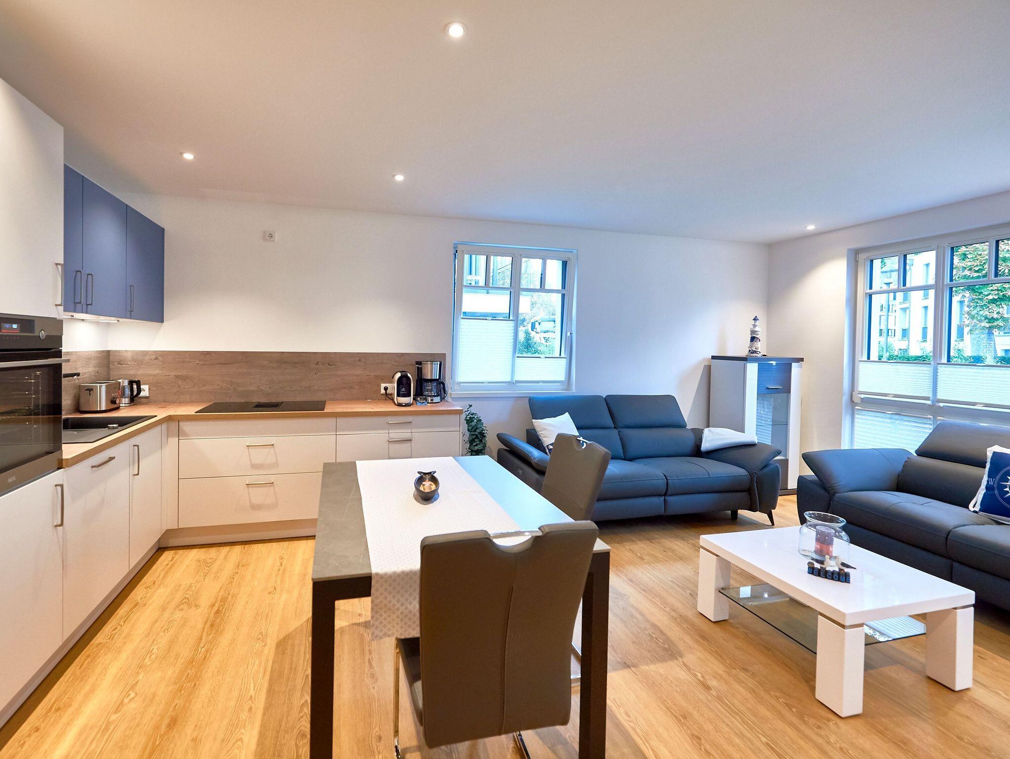Herzlich willkommen in der Wohnung 2 Wellenspiel! Dieses zauberhafte 2-Raum-Appartement mit wind- und wettergeschützter Terrasse zur Abendsonne begrüßt Sie im Erdgeschoss der Villa Beatrice. Ausgelegt für zwei Personen und dazu rauch- und haustierfrei, eröffnet sich Ihnen auf gut 57 Quadratmetern Wohnfläche ein herrlich geräumiges Zuhause auf Zeit, in dem Sie sich garantiert wohlfühlen werden.
