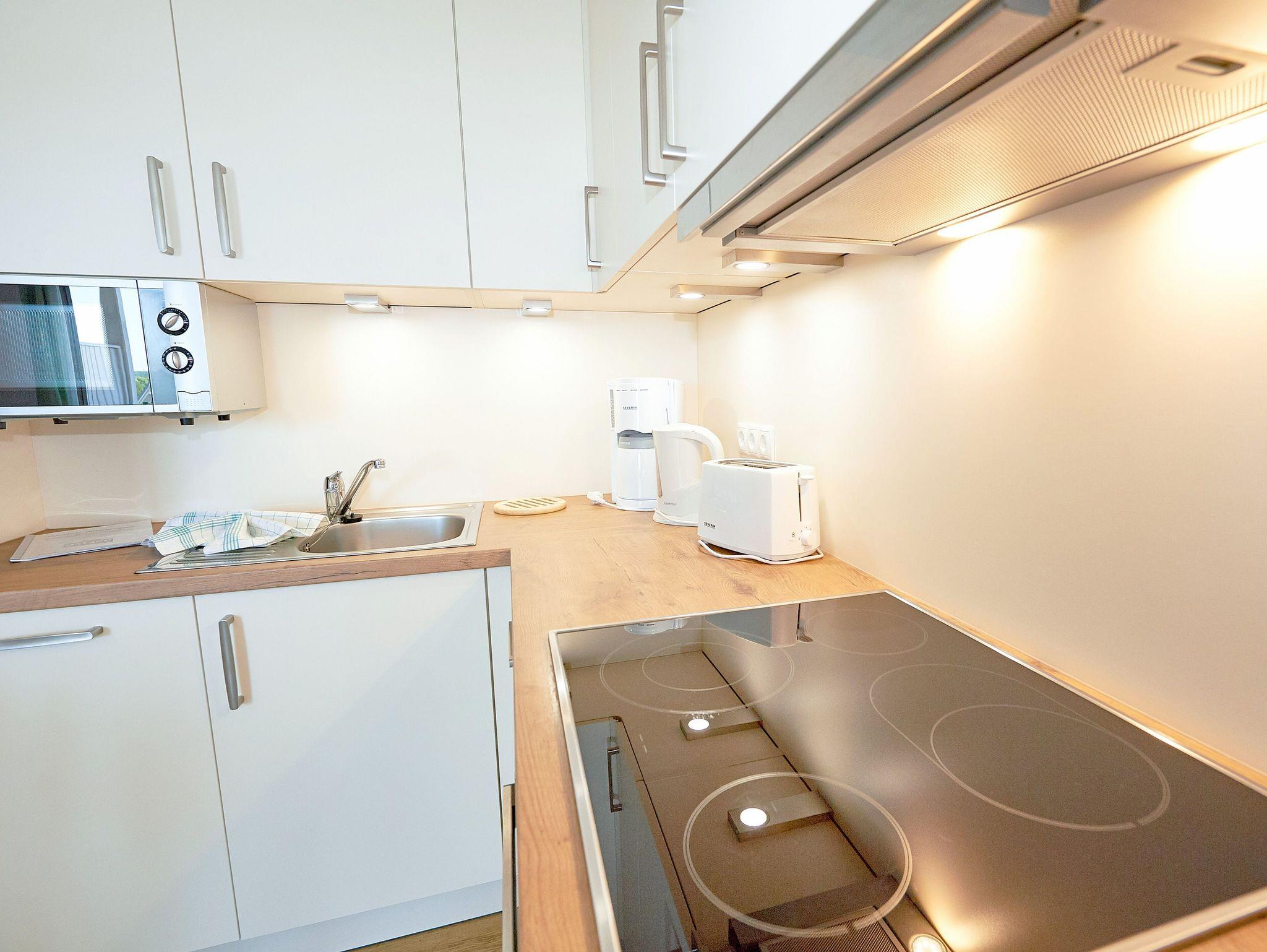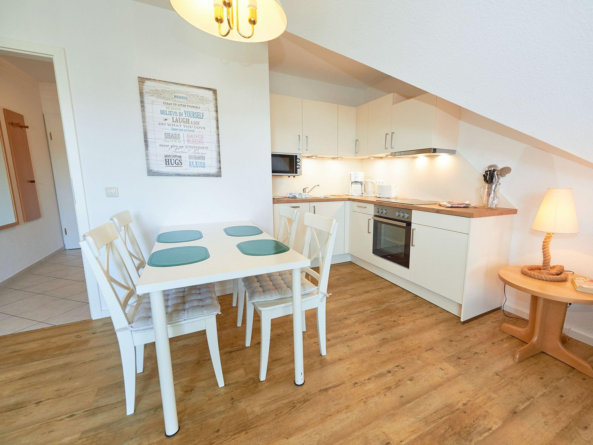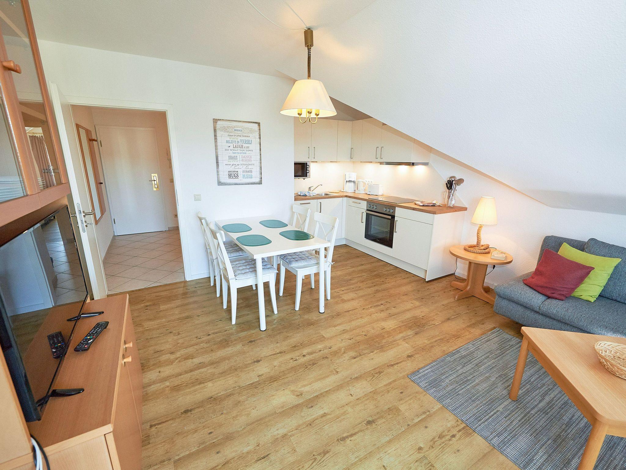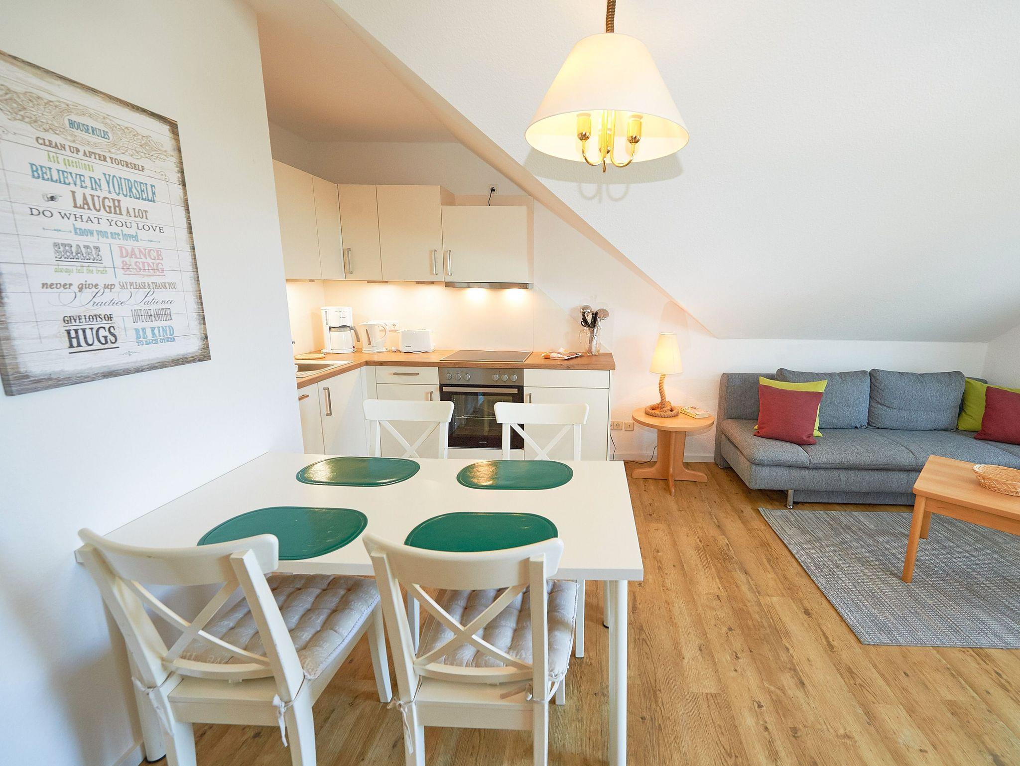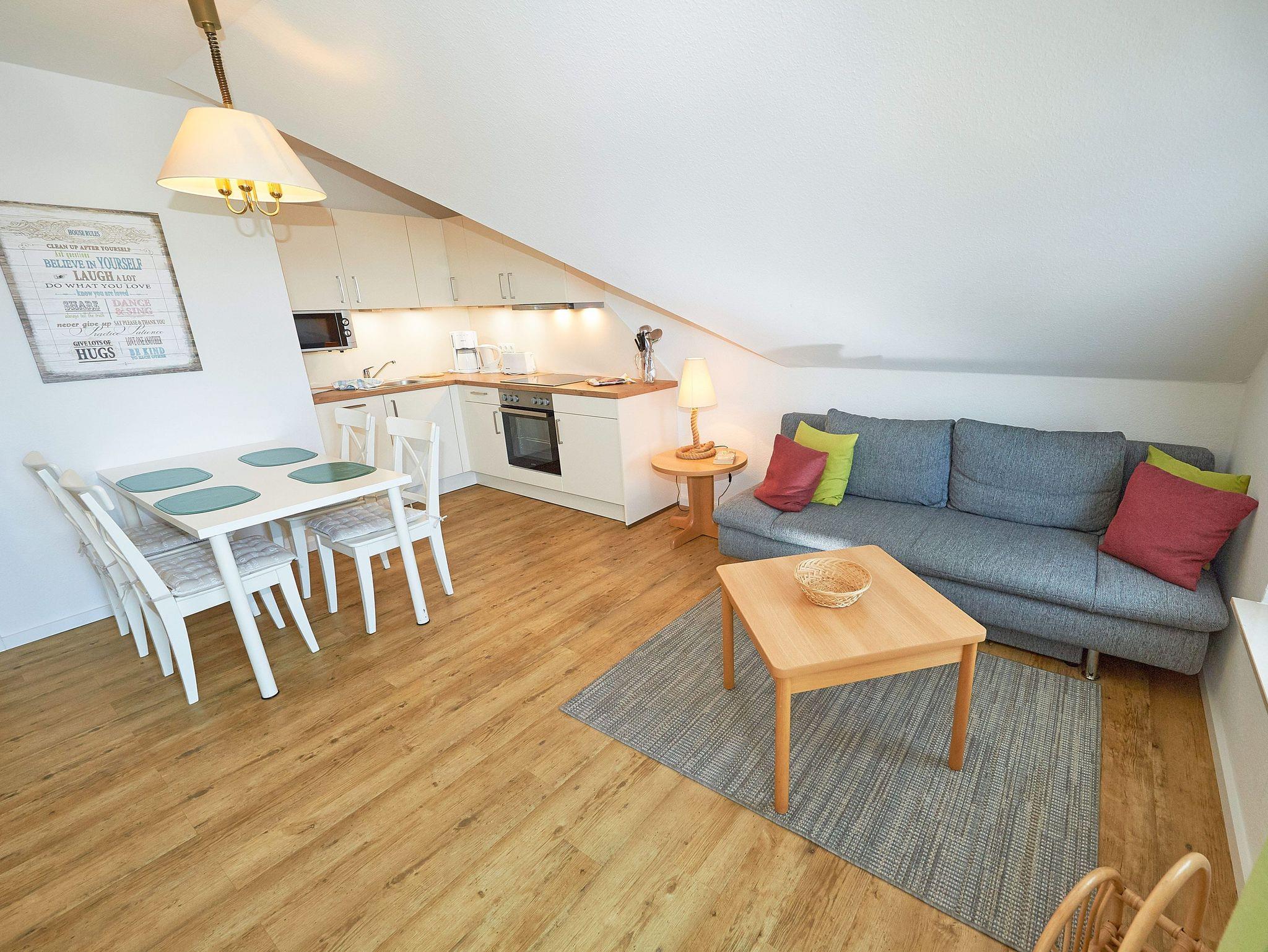 Modernes Nichtraucher-Appartement mit Balkon, WLAN und kostenfreiem Parkplatz in Binz, ideal für 1 bis 4 Personen.