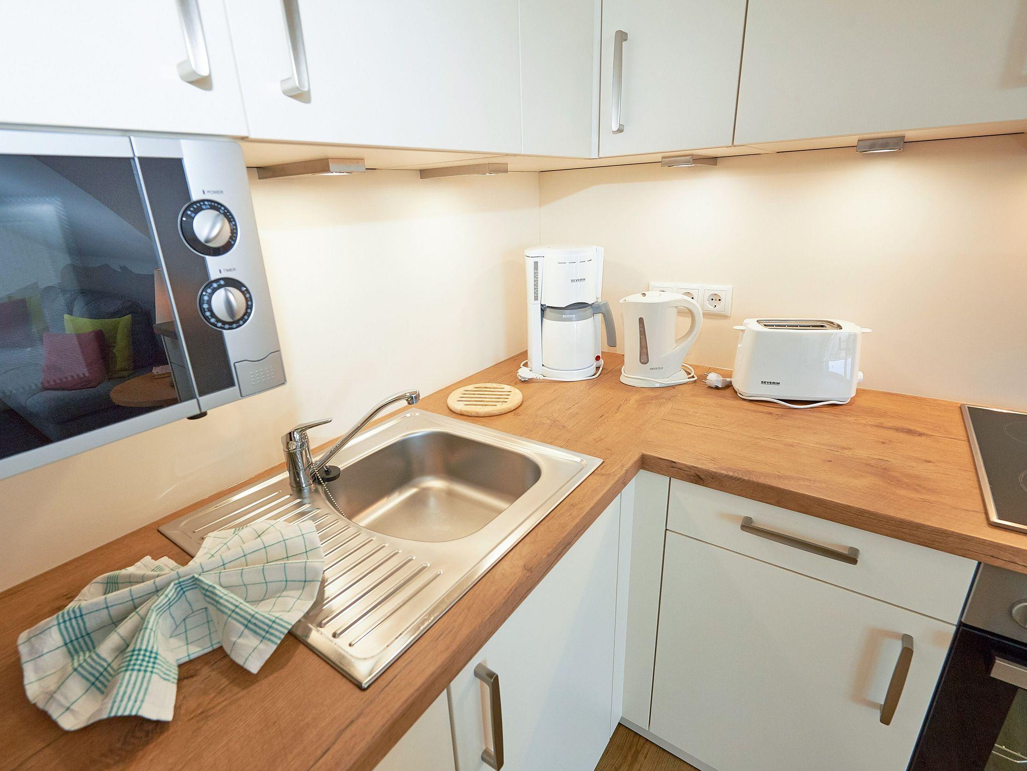 Ein WLAN-Anschluss und Kabelfernsehen sind in diesem Appartement inklusive. Ein PKW-Stellplatz pro Appartement steht auf dem Grundstück kostenfrei bereit.