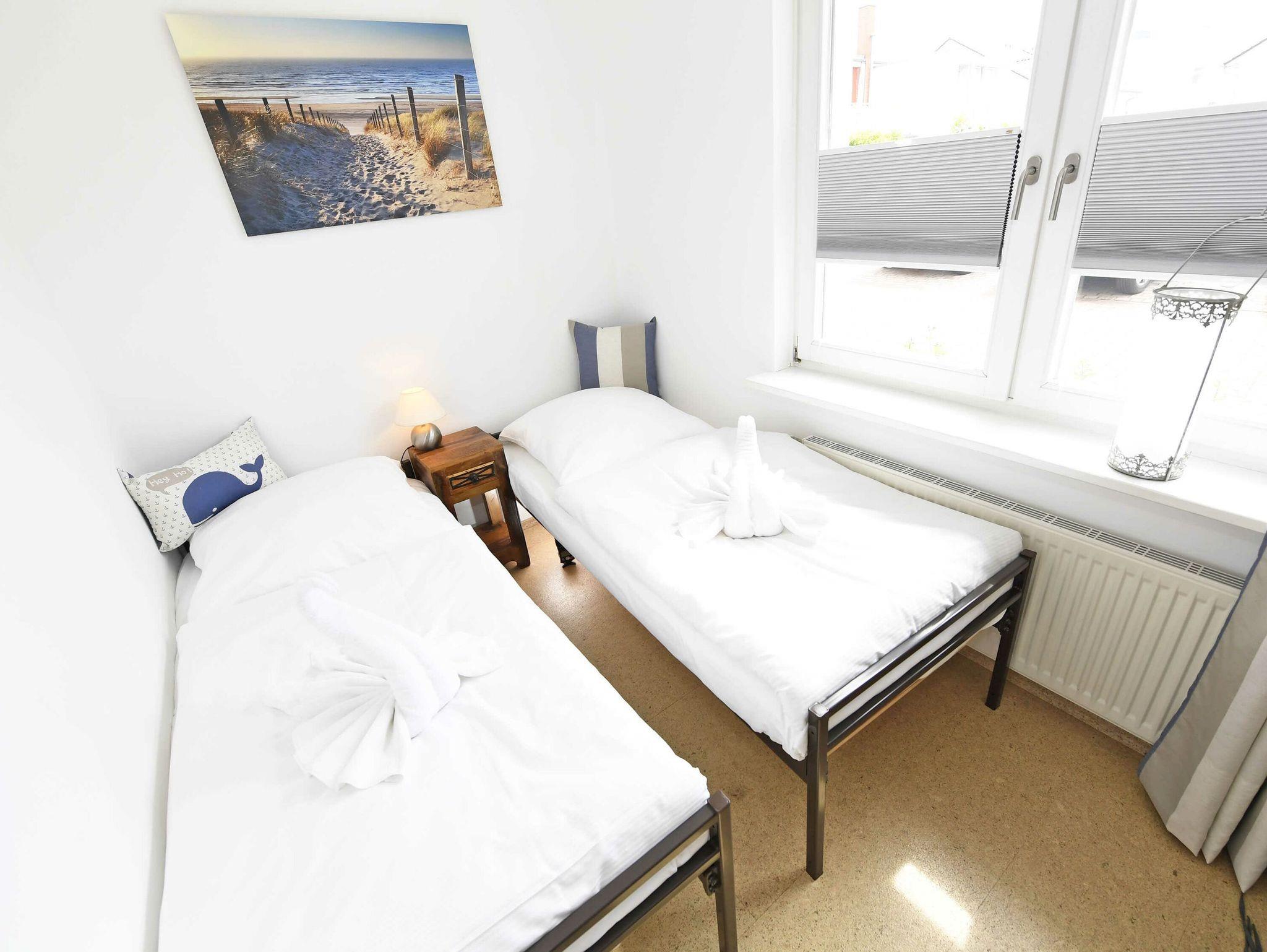 Die Wohnung verfügt über zwei Schlafzimmer. Das große Schlafzimmer ist mit einem Doppelbett und großem Kleiderschrank mit viel Stauraum für Ihre Urlaubsgarderobe eingerichtet. Im kleineren Schlafzimmer finden Sie zwei Einzelbetten, eine Kommode sowie einen zusätzlichen Fernseher.