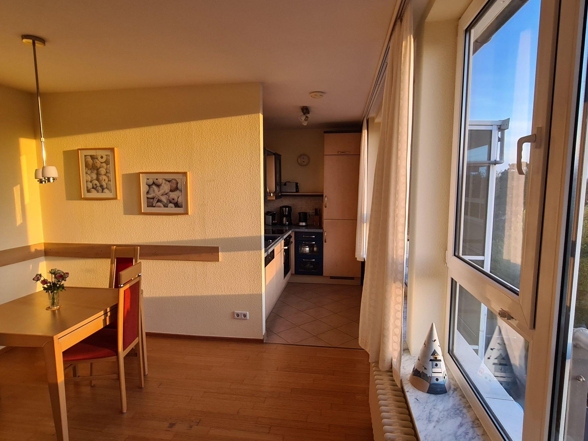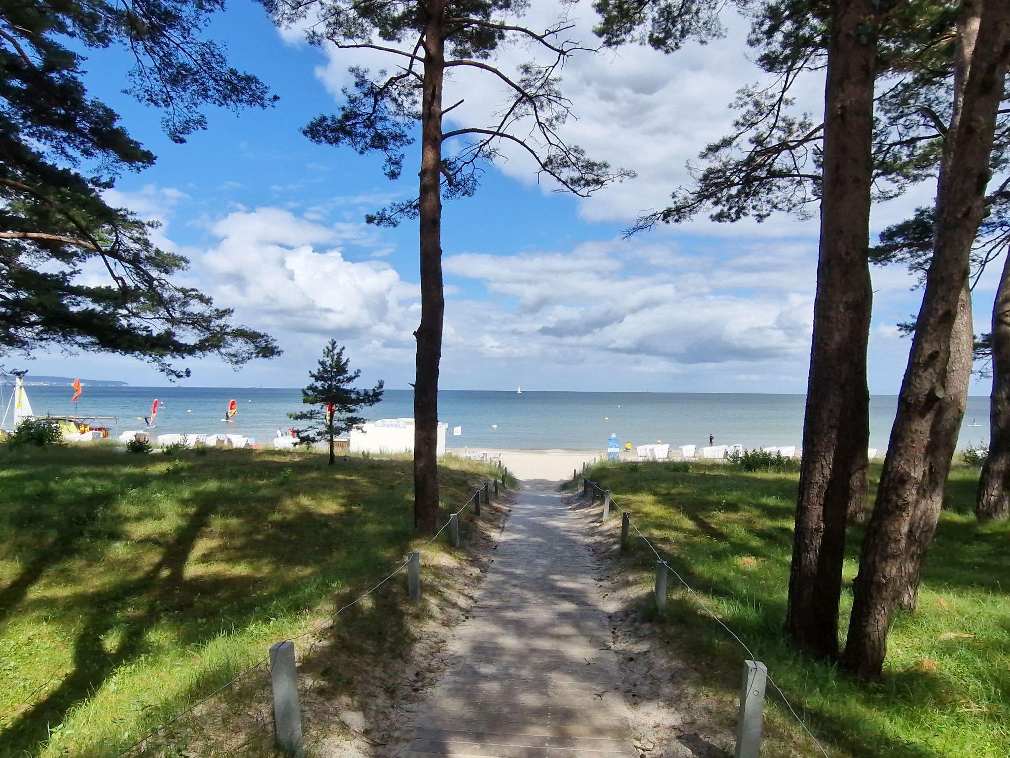 Ein gläserner Aufzug bringt Sie in das Appartement. Vom Strand trennen Sie nur ein kleiner Wald und 2-3 Geh-Minuten. Eine Haltestelle der Busse befindet sich ebenso in unmittelbarer Nähe, wie eine Bäckerei und E-Ladestation. Ein Lebensmiottelgeschäft ist fußläufig zu erreichen. Kinder finden einen Spielplatz auf dem Grundstück. Für Fahrräder steht ein Keller bereit.