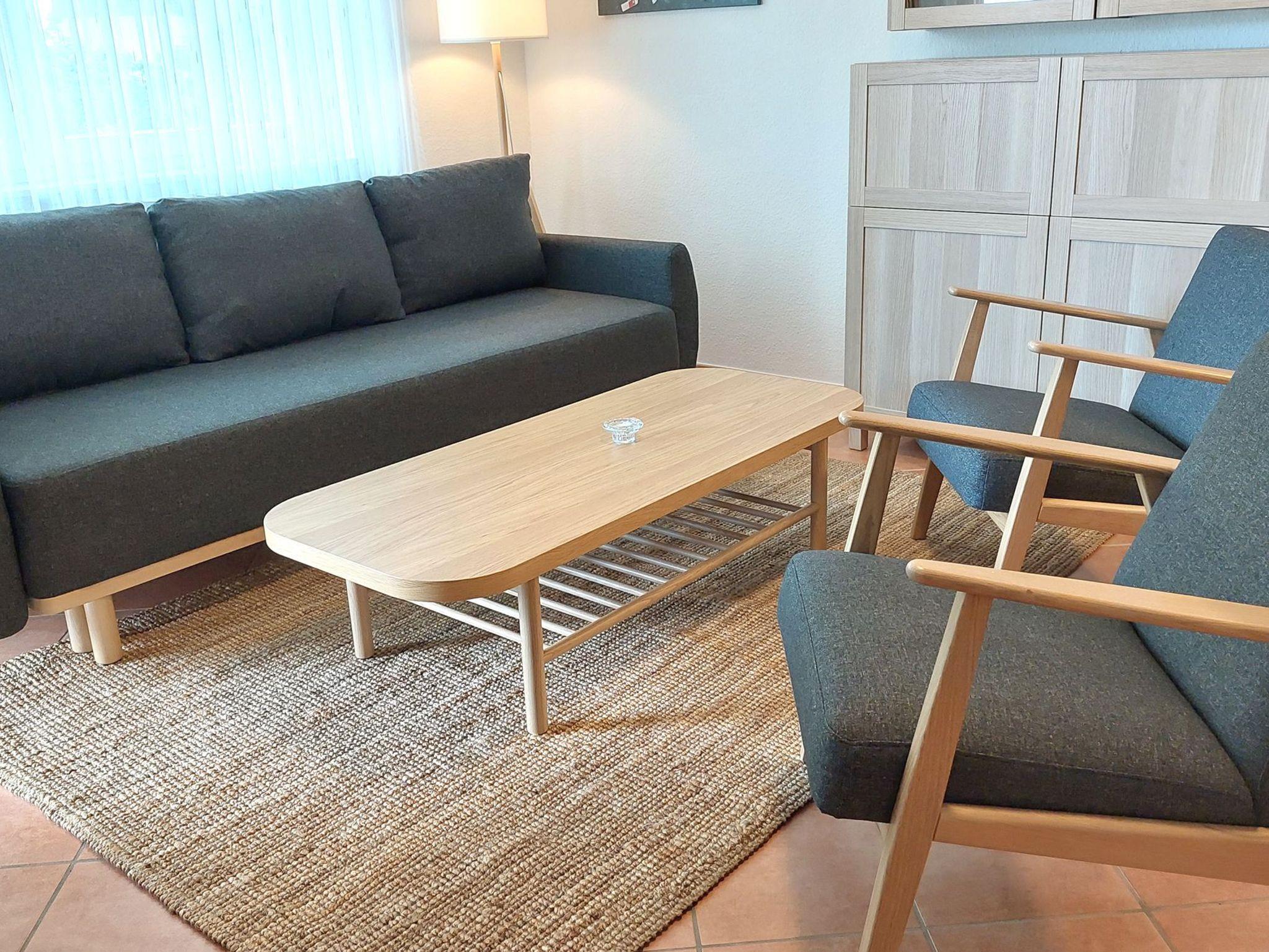 Die gemütliche Sitzlandschaft bietet besten Blick auf den großen Smart-TV. Zusätzlich sorgen Radio und schnelles WLAN auch bei schlechtem Wetter für Unterhaltung.