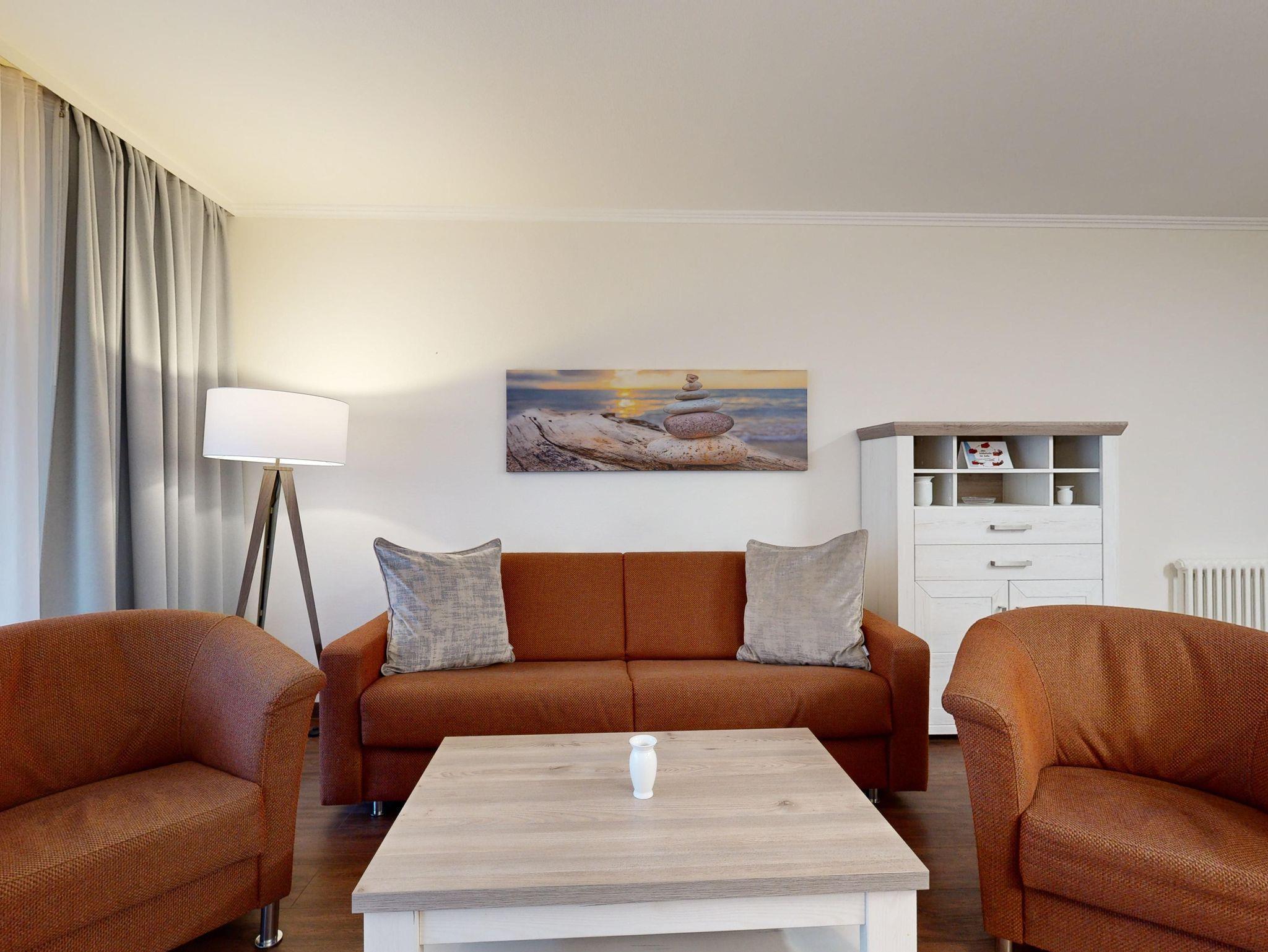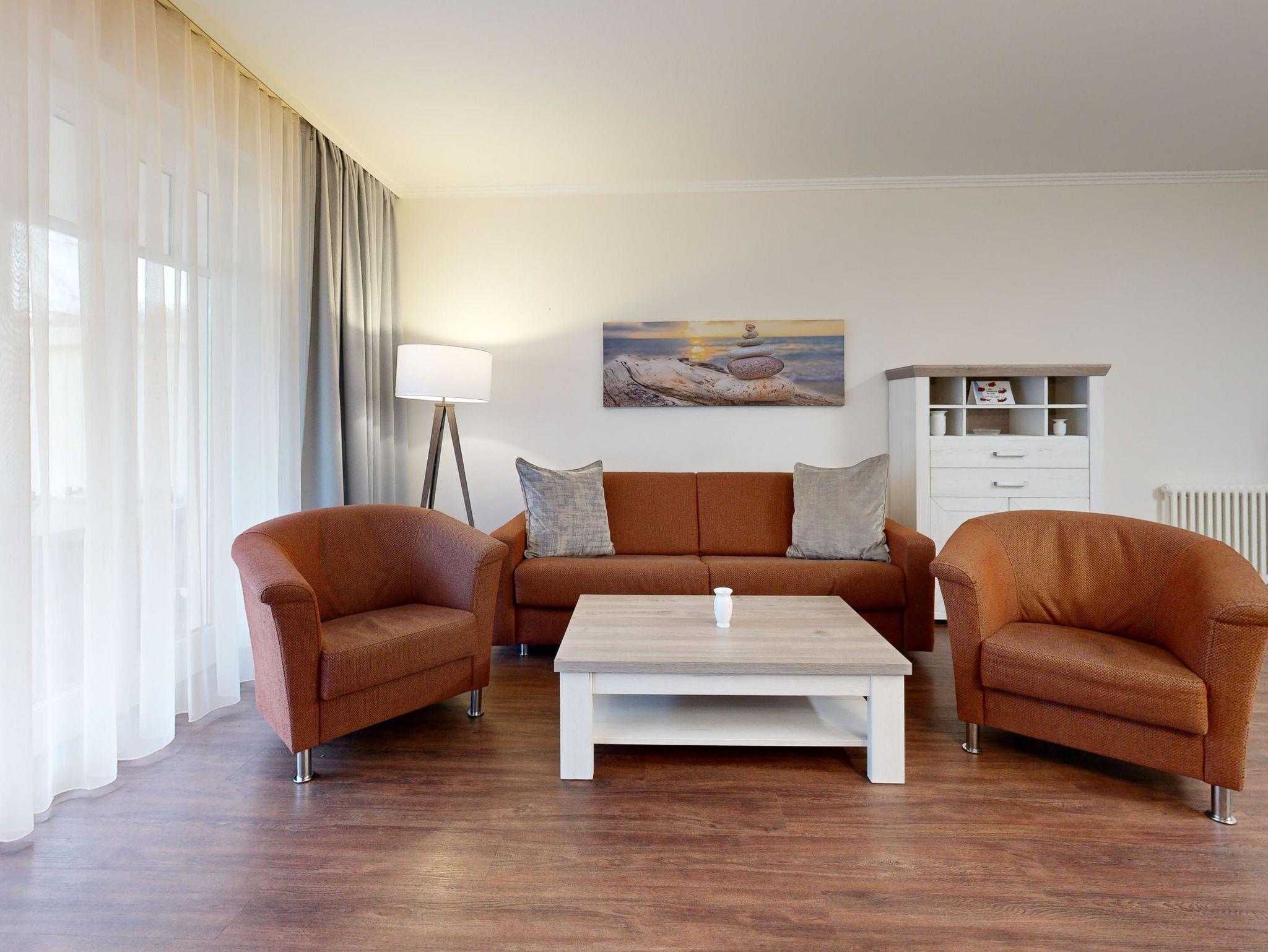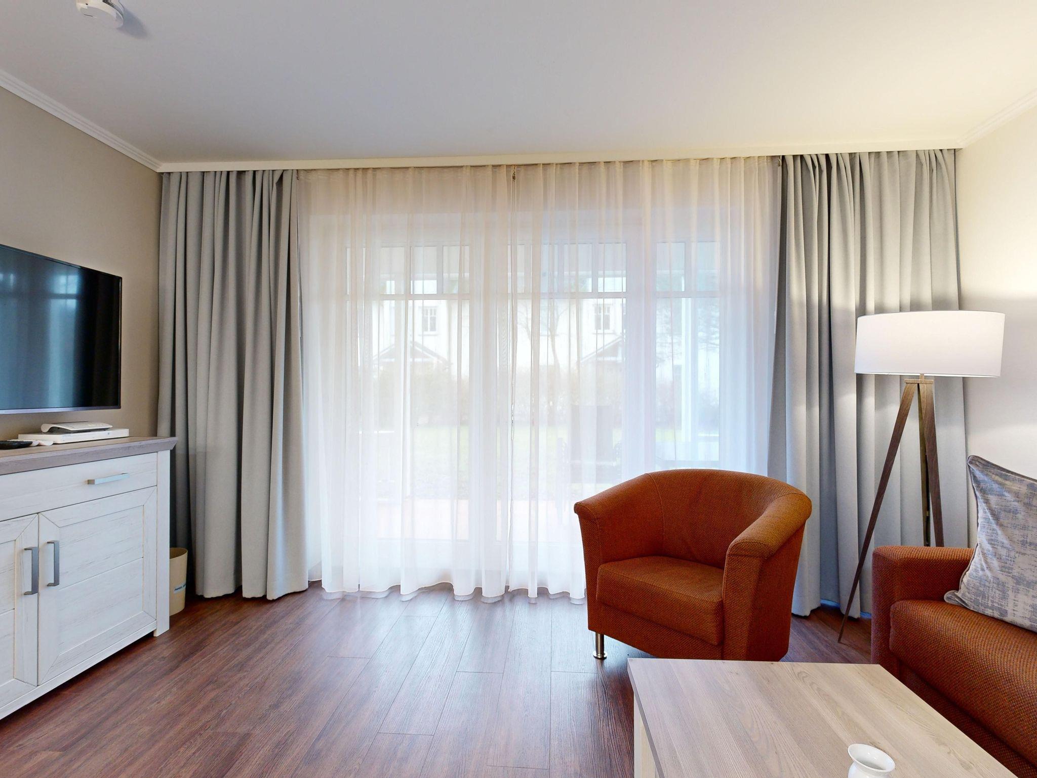 Im Dünenpark Binz befindet sich im Haus 21 die großzügige Komfort-Ferienwohnung im Erdgeschoss (2 Zimmer / 61 m²) mit 1 Schlafzimmer, einer Schlafcouch und mit großer Terrasse
