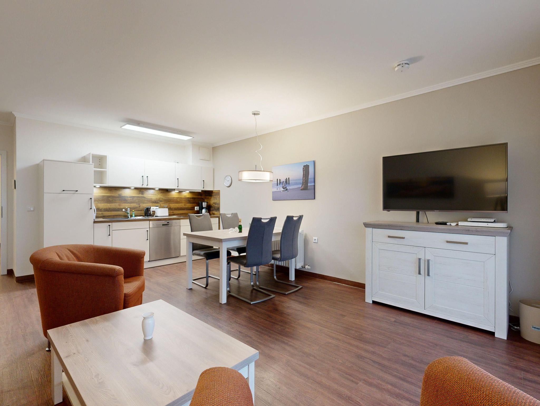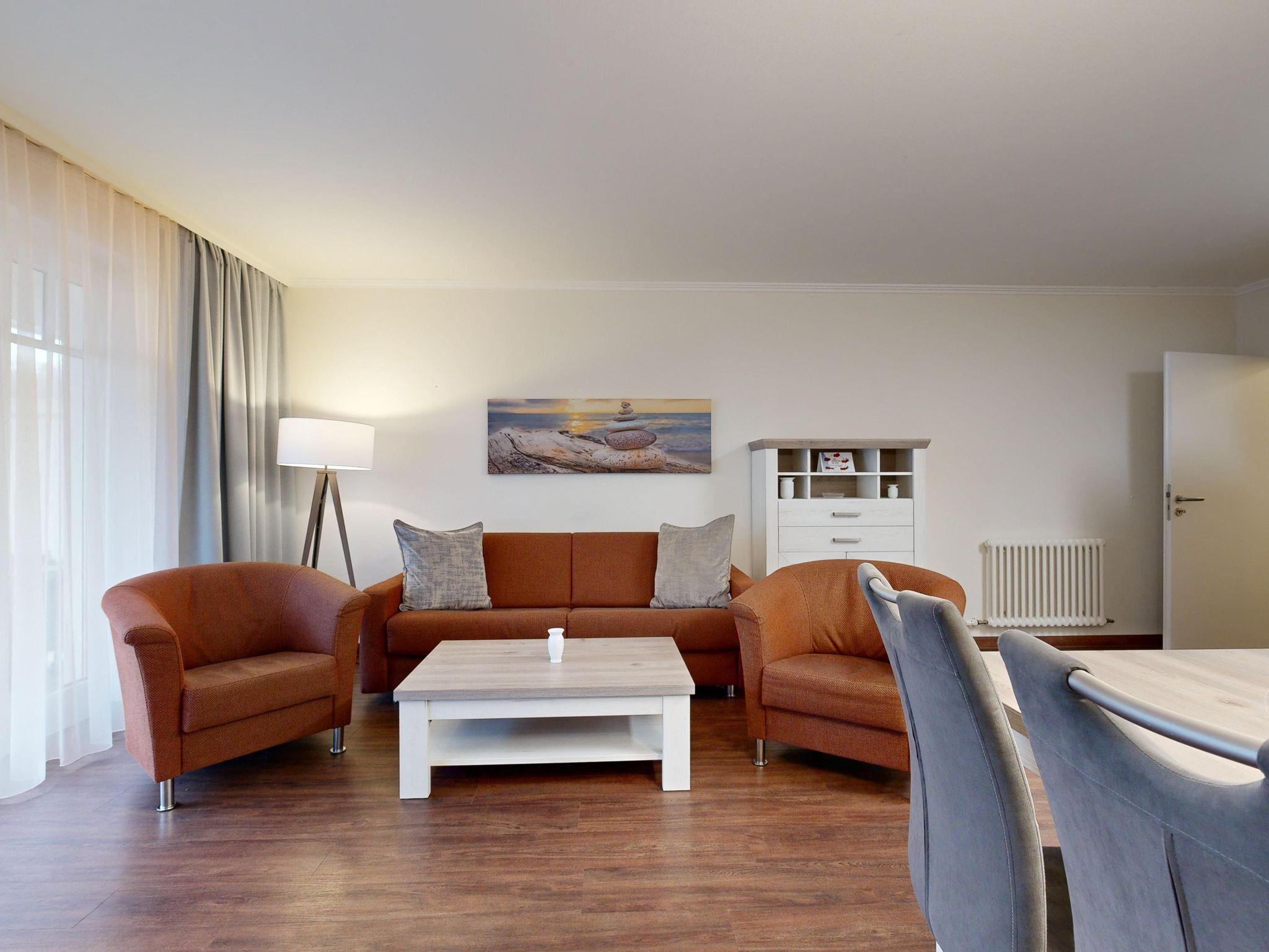 In der Ende der 90er Jahren neu gebauten Anlage gibt es großzügige Ferienwohnungen mit 1 Schlafzimmer, Internet und Terrasse oder Balkon. Je ein Außenstellplatz oder ein Tiefgaragen-Stellplatz stehen pro Wohnung zur Verfügung.