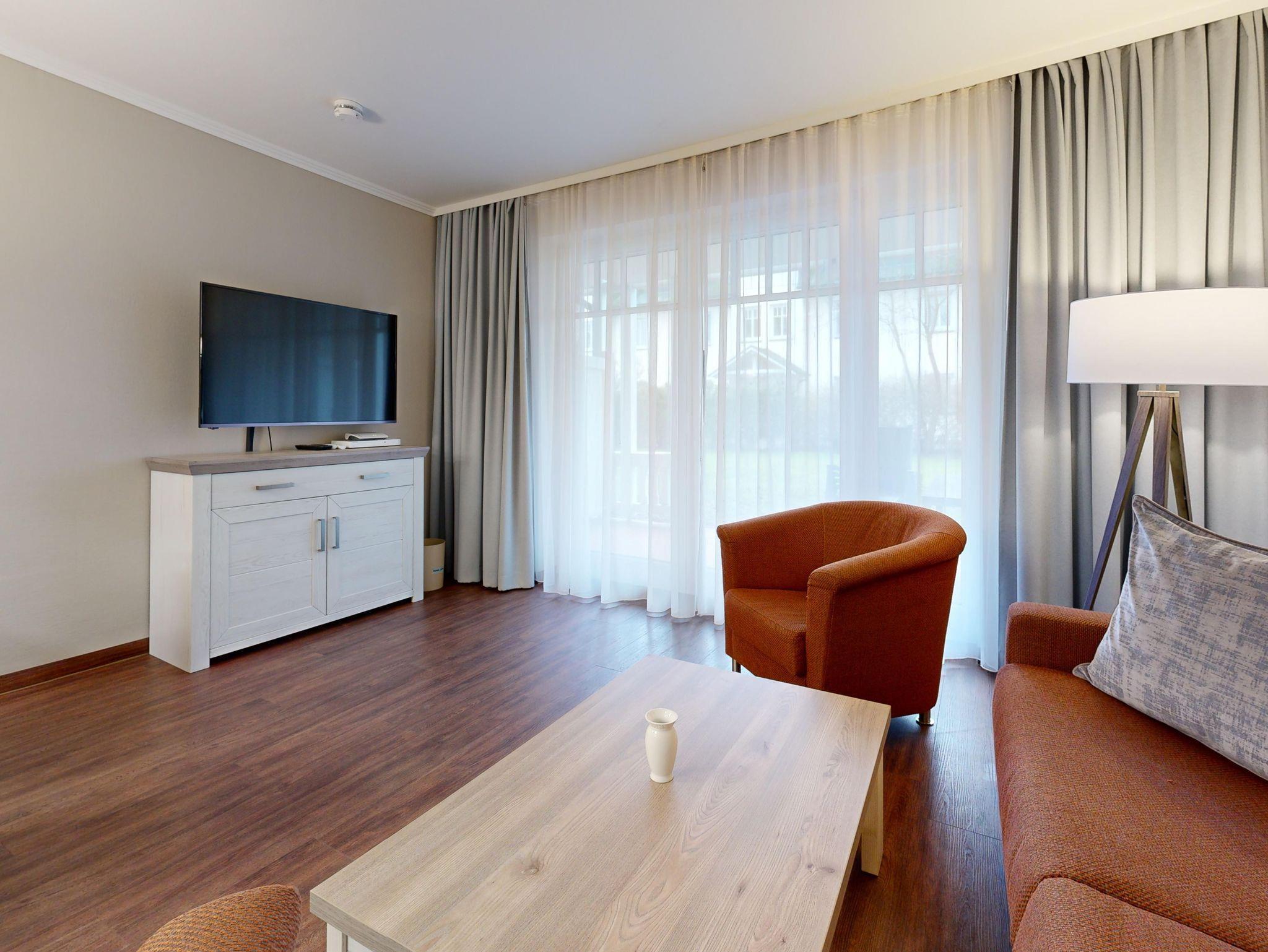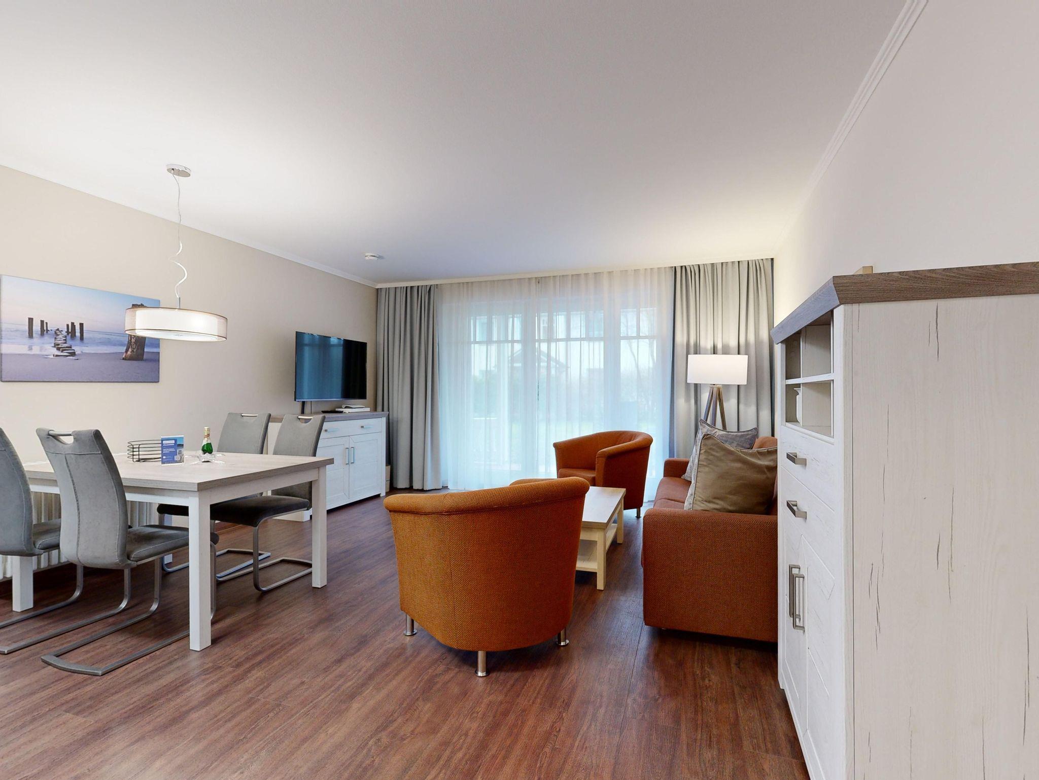 Moderne Ferienwohnung im Dünenpark Binz, nur 200 m vom Strand, mit Terrasse und WLAN für entspannte Urlaubstage.