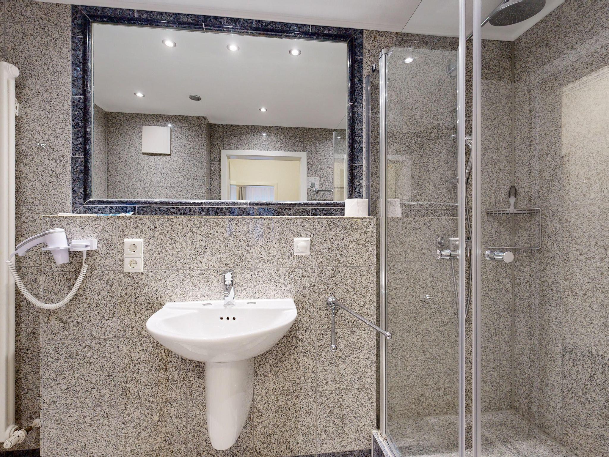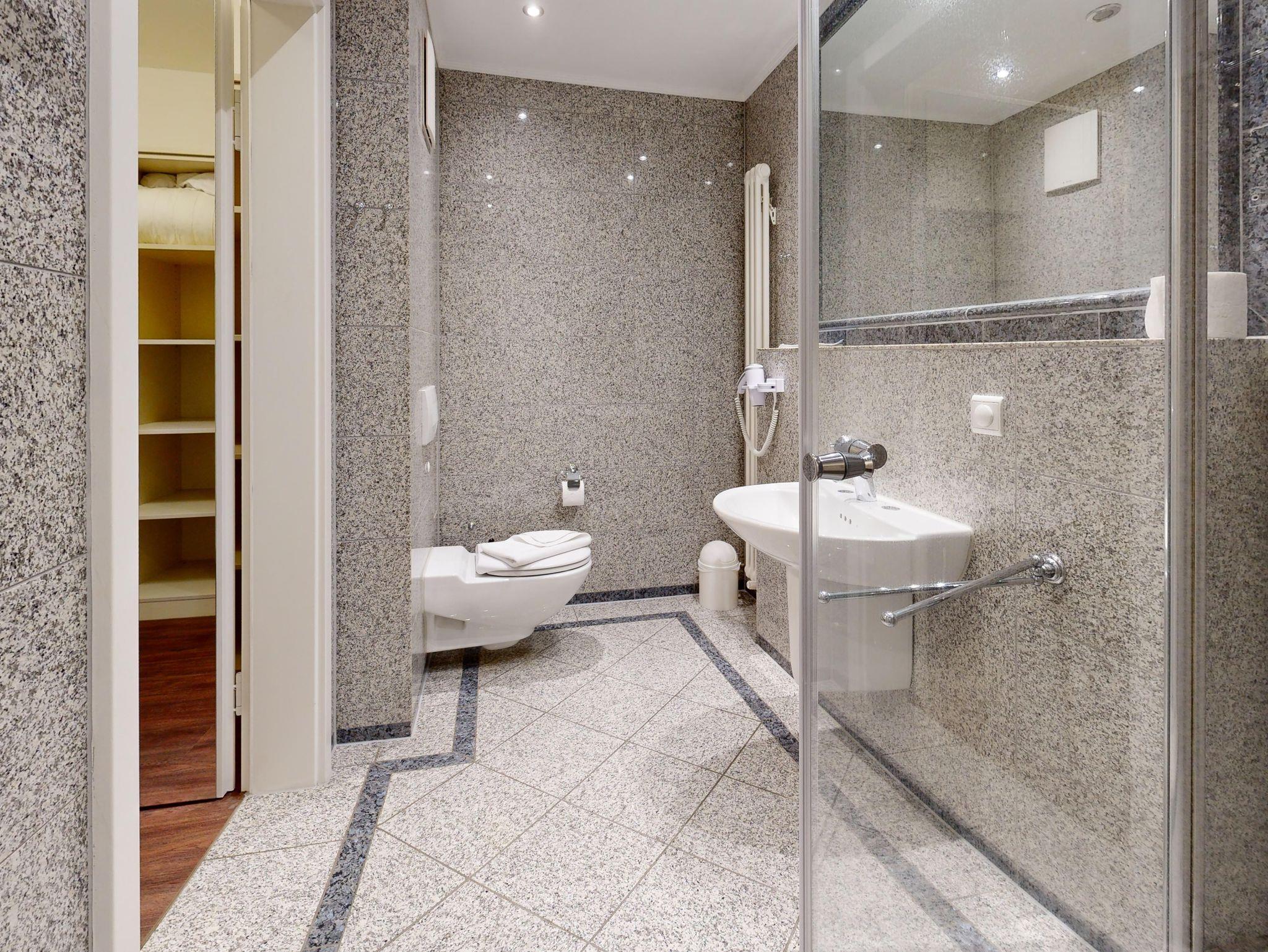 1 großes Badezimmer mit Dusche, WC, Föhn