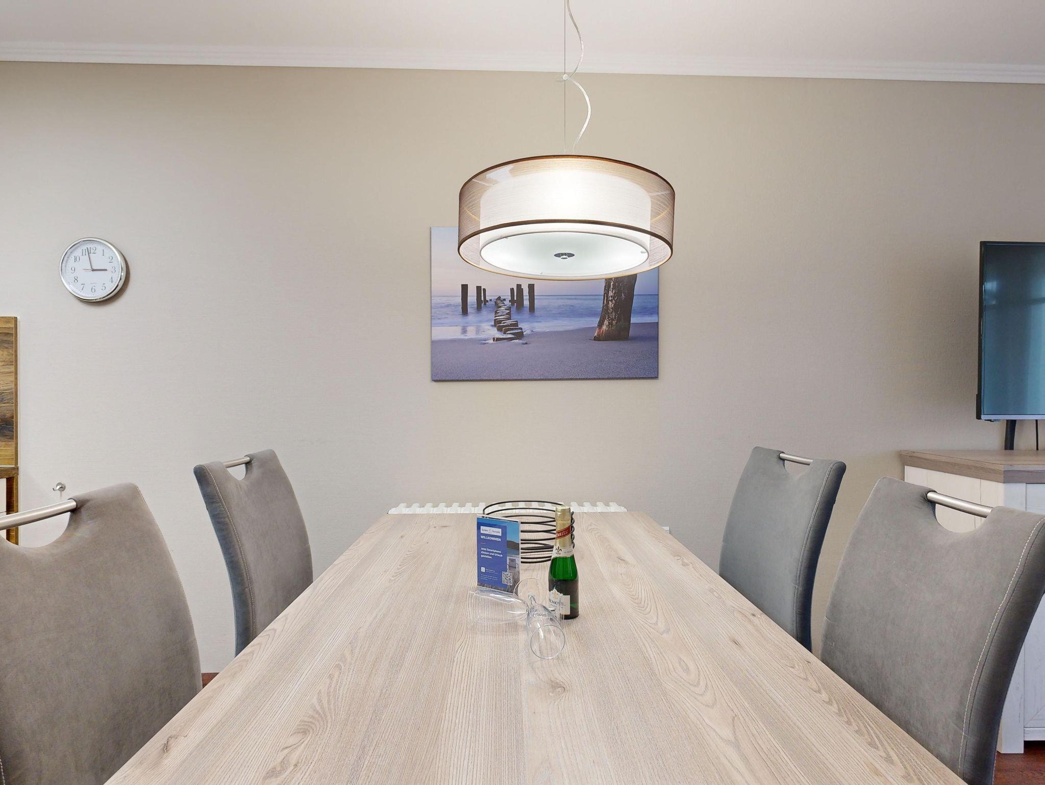 Wohnzimmer: Große Couch (Schlafcouch für 1-2 Personen), 2 Sessel, Sat-TV mit gr. Bildschirm, WLAN-Internetanschluss, großer Essplatz mit 4 Stühlen