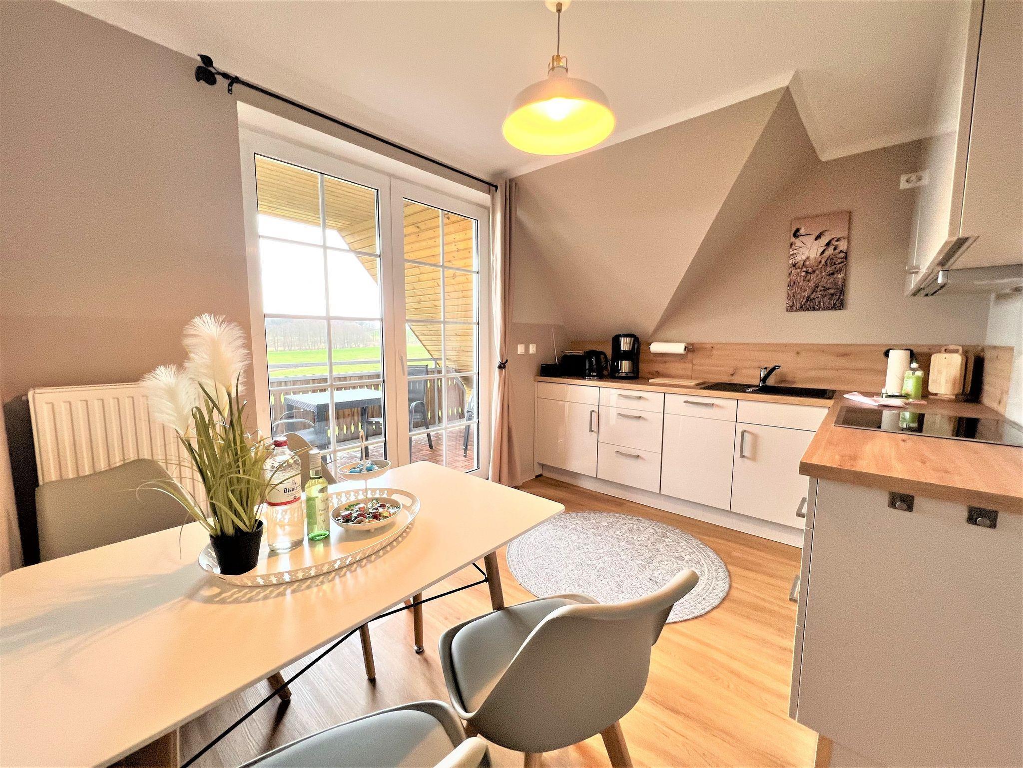 Die 52m² große Ferienwohnung Rabenblick beherbert max. 4 Personen. Die Ferienwohnung besteht aus einem Wohnzimmer mit großer Schlafcouch, Schlafzimmer mit einem 1,60mx2,00m Futonbett, eine Komplett ausgestattete Küche mit Sitzbereich gehört ebenfalls zur Ausstattung. Ein Balkon ist von der Küche aus begehbar und mit herrlichem Blick zur Granitz , einladet für einen schönen Ausklang des Urlaubstages.. Das Bad/WC ist mit einer Dusche und Fenster ausgestattet.