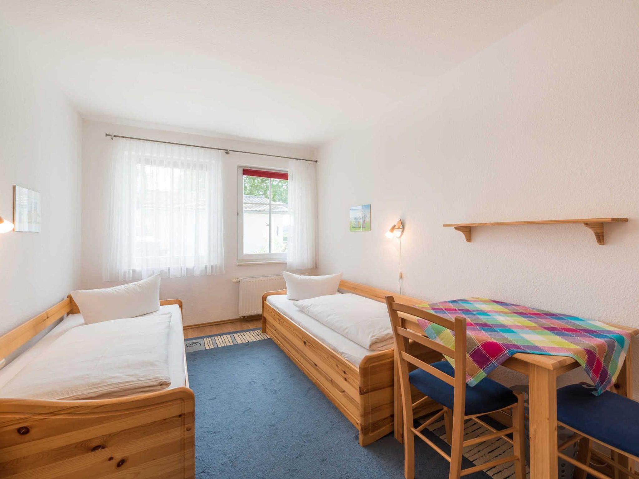 Ihr modernes 4 -Raum- Ferienhaus 90587 (Nichtraucher) hat eine Größe von ca. 130 qm und ist mit bis zu 6 Personen belegbar. Gleich 2 großzügige Balkone laden zum Sonnenbaden und Verweilen ein. Ein Balkon bietet Ihnen sogar einen wunderschönen Blick bis hin zum Schmachter See. Das allergikerfreundliche Ferienhaus streckt sich über 2 Etagen. Im Erdgeschoss befindet sich ein vorgelagerter Flur, zwei Schlafzimmer und ein Tageslichtbad mit Dusche, Waschtisch, WC, Waschmaschine, Fön und Kosmetikspiegel. Ein Schlafzimmer ist mit einem Doppelbett und das weitere Schlafzimmer mit zwei Einzelbetten ausgestattet.. Im Obergeschoss befindet sich der gemütliche Wohnraum mit Flachbild-TV, DVD-Player, CD-Radio, kostenlosem Internetzugang, Essbereich und direktem Zugang zum Seeblickbalkon, ein weiteres Schlafzimmer mit Doppelbett und Kleiderschrank sowie ein Bad mit Fenster, Dusche, Waschtisch, WC und Kosmetikspiegel. Darüber hinaus finden Sie hier eine separate Küche, die mit Kühlschrank, Geschirrspüler, Backofen, Ceranfeld, Kaffeemaschine, Mikrowelle, diversen Küchenhelfern und einer kleinen Sitzgelegenheit perfekt ausgestattet ist.