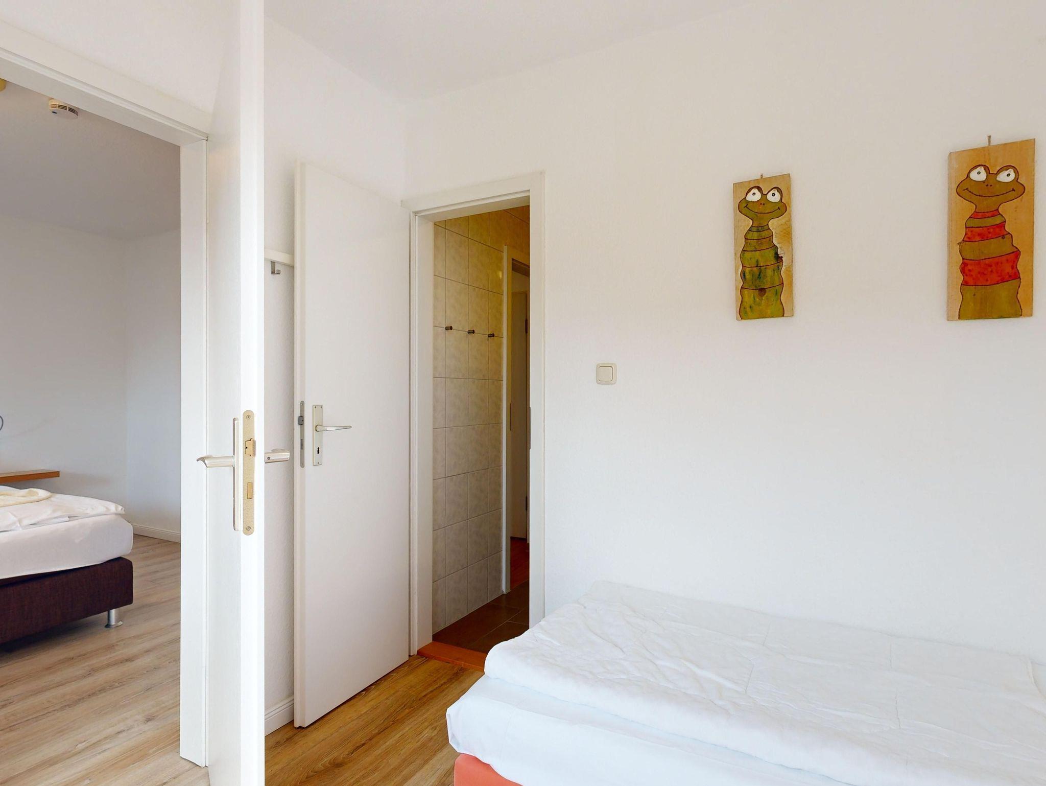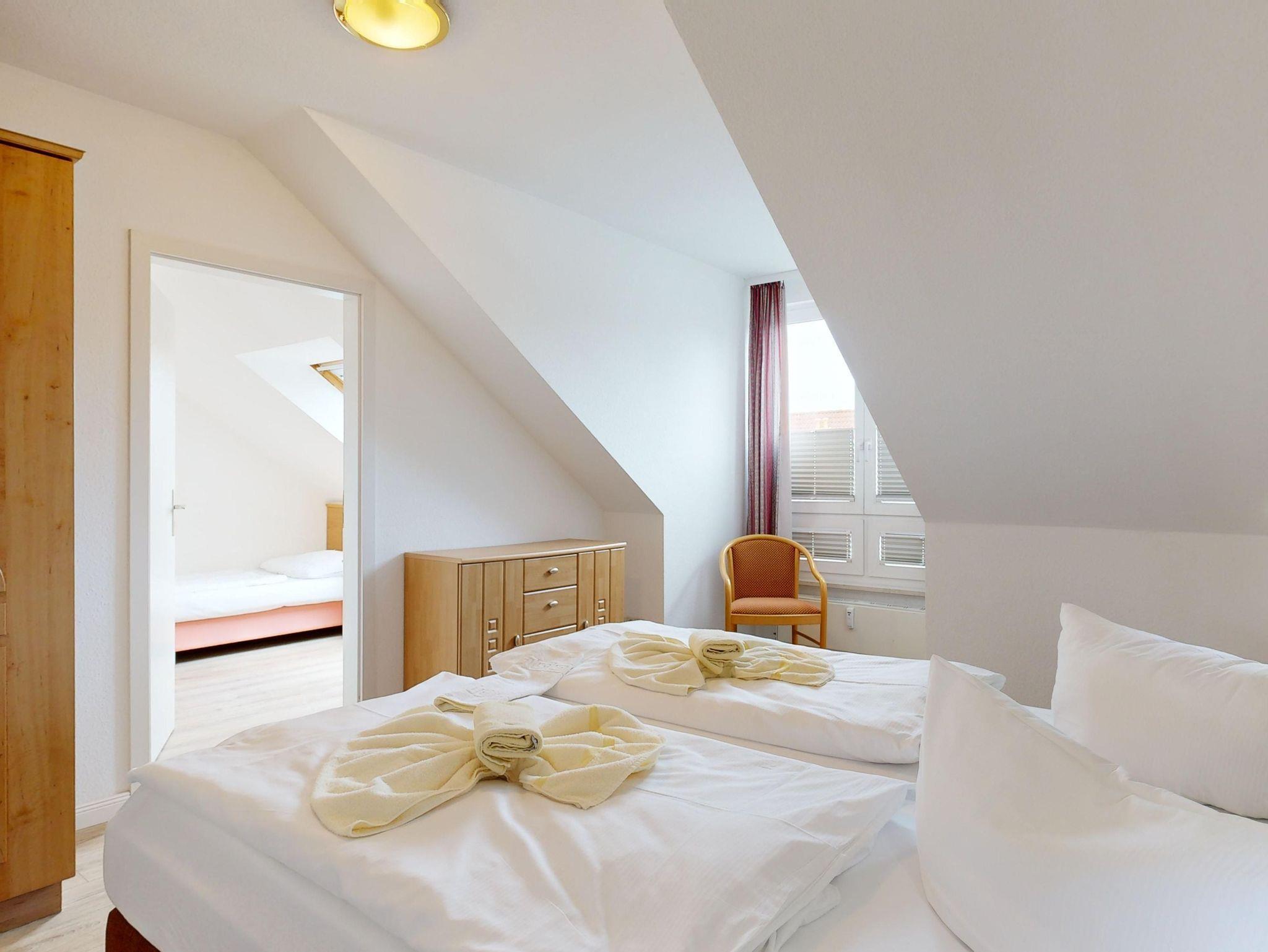 Ferienwohnung Binzer Sterne 40 für bis zu 6 Personen im im 2. OG, Typ C (3 Zimmer / 68 m²) des Appartementhauses Binzer Sterne, 2 Schlafzimmer, Parkplatz (gegen Gebühr) und freies WLAN.