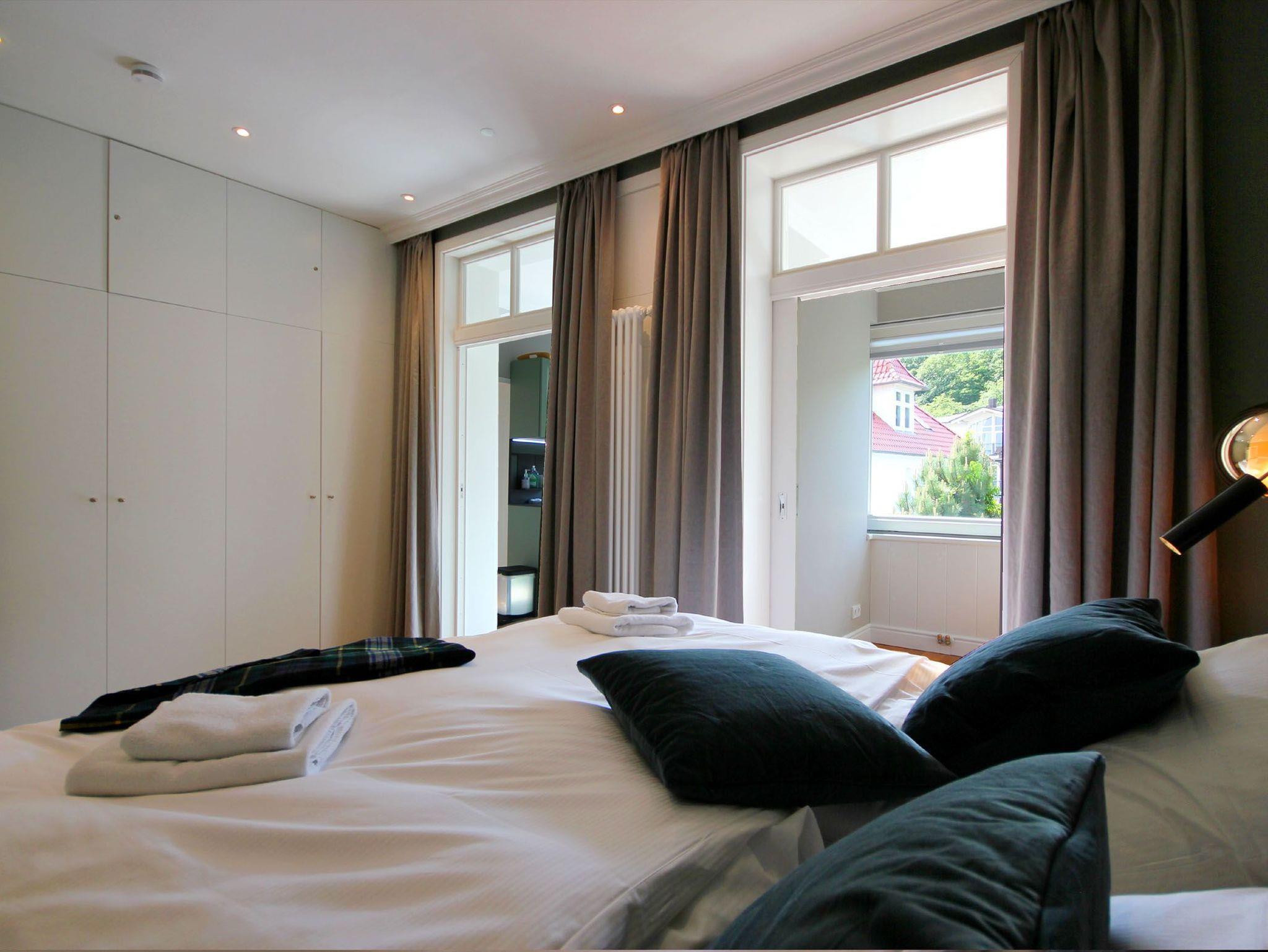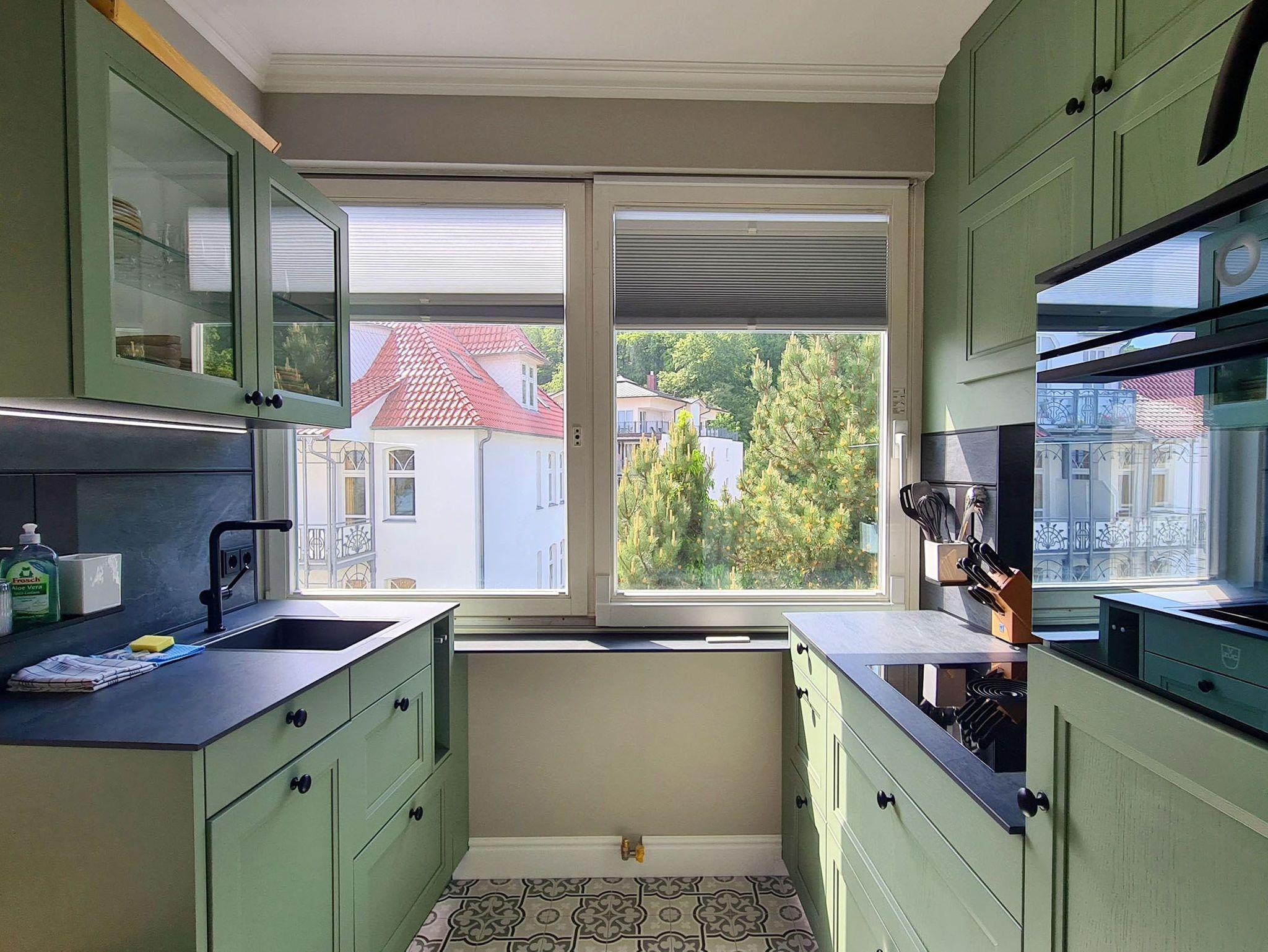 Ihre stilvoll eingerichtete 2,5 - Raum - Meerblickwohnung 40RB32 (Nichtraucher) mit einer Größe von ca. 75 qm liegt im 2. Obergeschoss der Villa und ist mit bis zu 4 Personen belegbar. Das hochwertig möblierte Appartement besticht durch seine hervorragende Lage. Der lichtdurchflutete, großzügige Wohnbereich bietet Ihnen eine gemütliche Sitzgruppe, Flachbild-TV, Sonos-Soundsystem, WLAN, einen separaten Essbereich und den direkten Zugang zum Balkon in Richtung Ostsee. An den Wohnbereich schließt die offene Wohnküche an, die mit Geschirrspüler, Kühl- / Gefrierkombination, Backofen, Cerankochfeld, Kaffeemaschine, Wasserkocher, Toaster und diversen anderen Küchenhelfern komplett ausgestattet ist. Im Hauptschlafraum befindet sich ein bequemes Boxspringbett (180x200) und ein großer Kleiderschrank mit genügend Stauraum. Der 2. Schlafraum im angrenzendem Wintergarten erwartet Sie mit einem Schlafsofa. Im modernen Badezimmer finden Sie neben Waschtisch, Dusche und WC auch einen Handtuchheiztrockner. Ein wohnungseigener Stellplatz (Doppelparker Einfahrtshöhe max.1,70m) steht Ihnen direkt an der Villa zur Verfügung. Rundum eine schön eingerichtete Wohnung, die zum Entschleunigen einlädt. Genießen Sie Ihren Urlaub und machen Sie diese Wohnung zu Ihrem zweiten Zuhause!