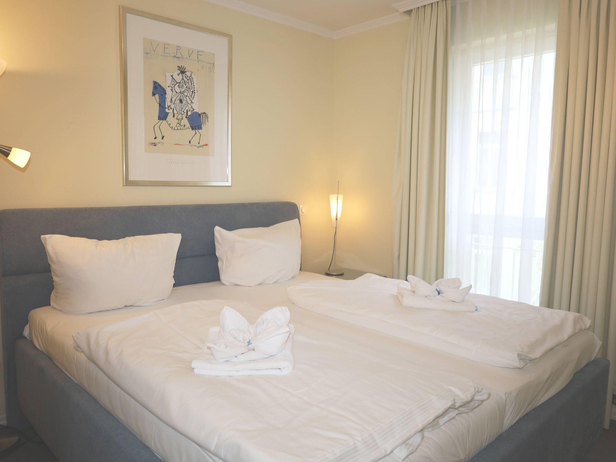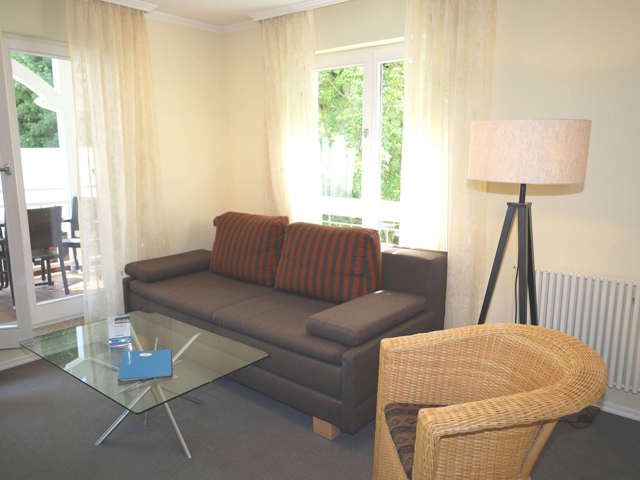 Das 2-Raum-Appartement befindet sich im 1. Obergeschoss und ist eine Nichtraucher- und Haustierfreie Wohnung. Die Wohnung ist ca. 40 m² und verfügt über einen möbilierten Balkon mit seitlichem Ostseeblick. Das Wohnzimmer verfügt über einen Flachbildschirm-TV und eine Stereoanlage mit CD-Player sowie einer Schlafcouch. Die Küchenzeile ist ausgestattet mit einen Backofen mit Ceranfeld, Geschirrspüler, Kühlschrank, Kaffeemaschine, Toaster, Wasserkocher. Im Schlafzimmer befindet sich ein Doppelbett und ein grosser Kleiderschrank. Badezimmer mit Eckdusche, WC und Fön. In den Sommermonaten steht Ihnen ein Strandkorb zur Verfügung. Ein PKW-Stellplatz gehört kostenfrei zum Appartment dazu. W-Lan ist ebenfalls vorhanden.
