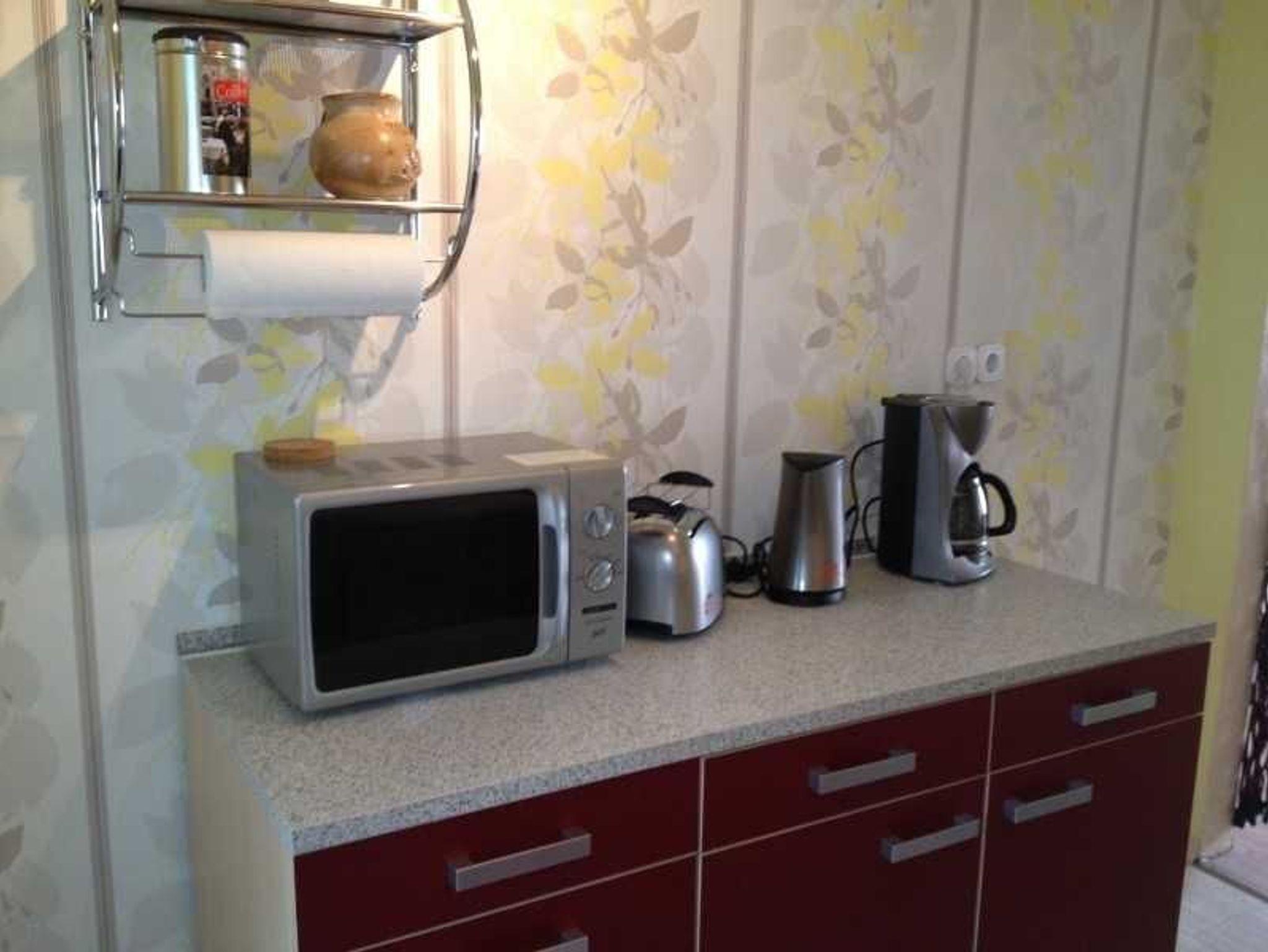 Küche: Cerankochfeld, Wasserkocher, Eierkocher, Toaster, Kaffeemaschine, Backofen mit Umluft