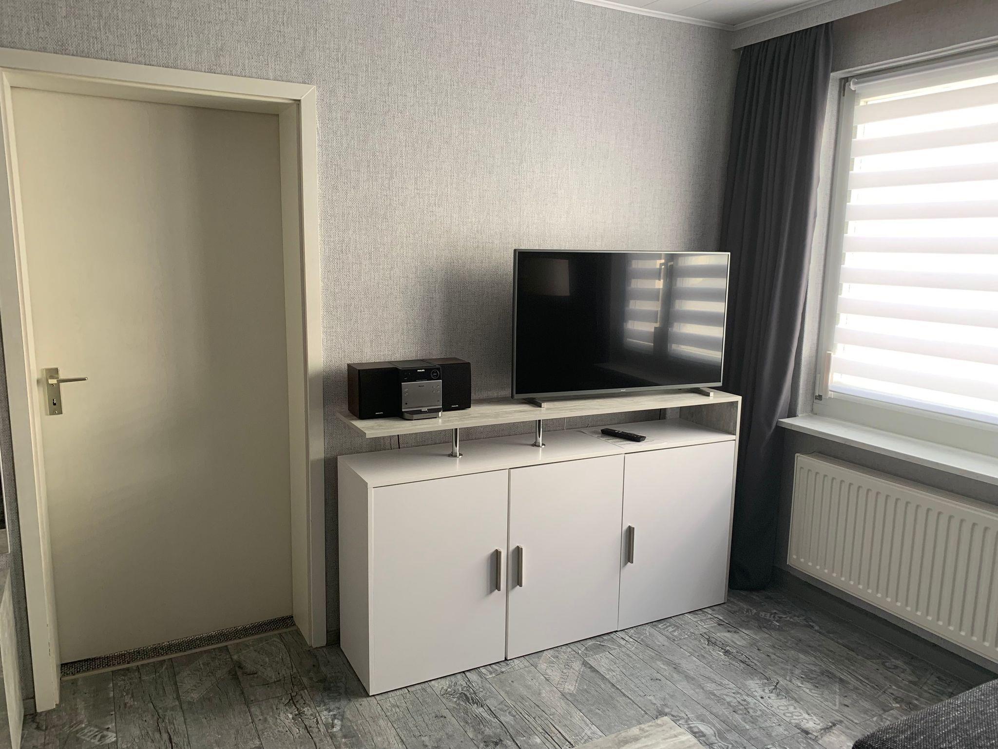 Wohnbereich: Smart-TV in Full-HD, Sitzgruppe, Sclafsofa ausziehbar als Aufbettung nutzbar, großzügige Essecke, Flurgeradobe, W-Lan.