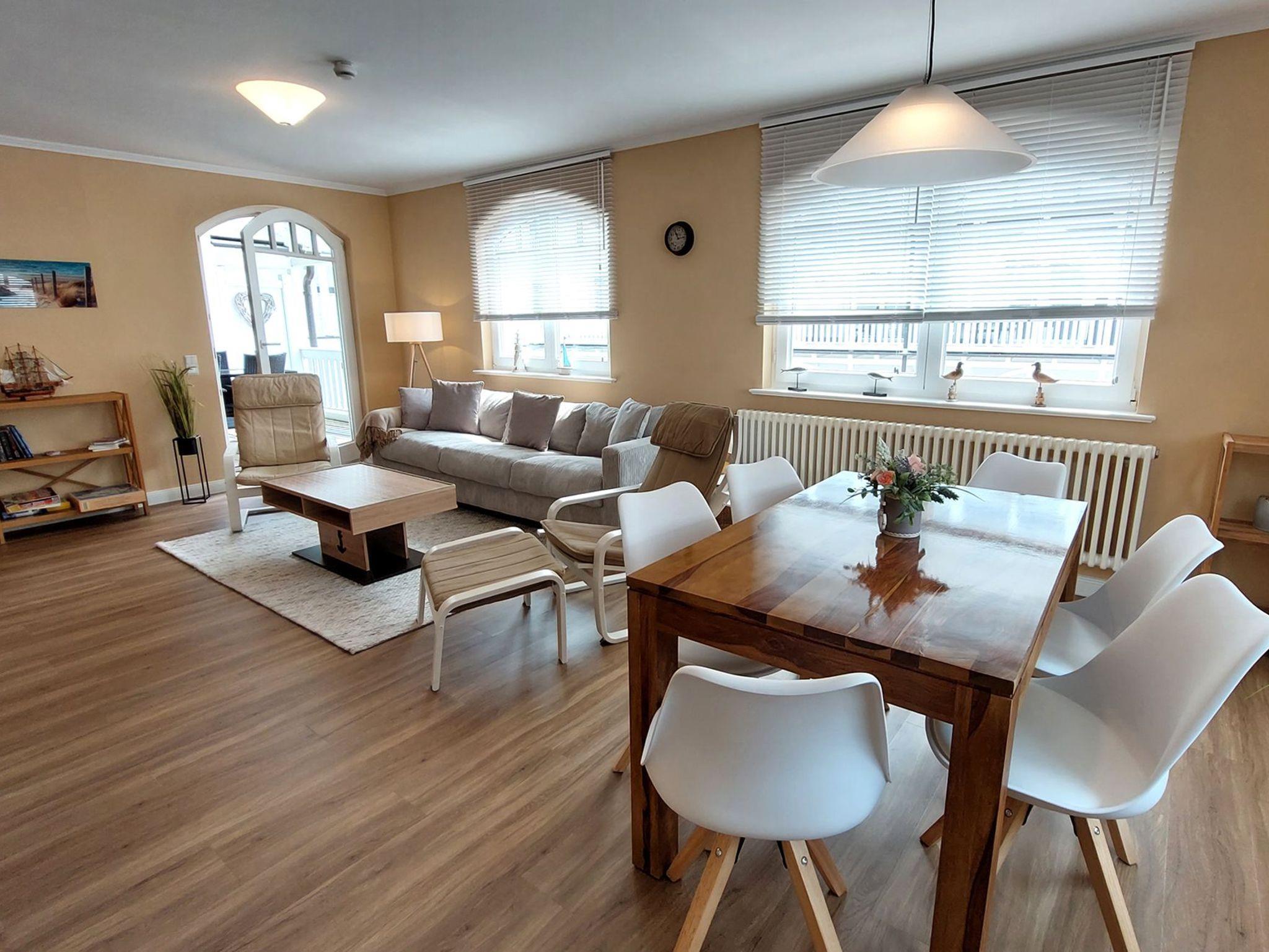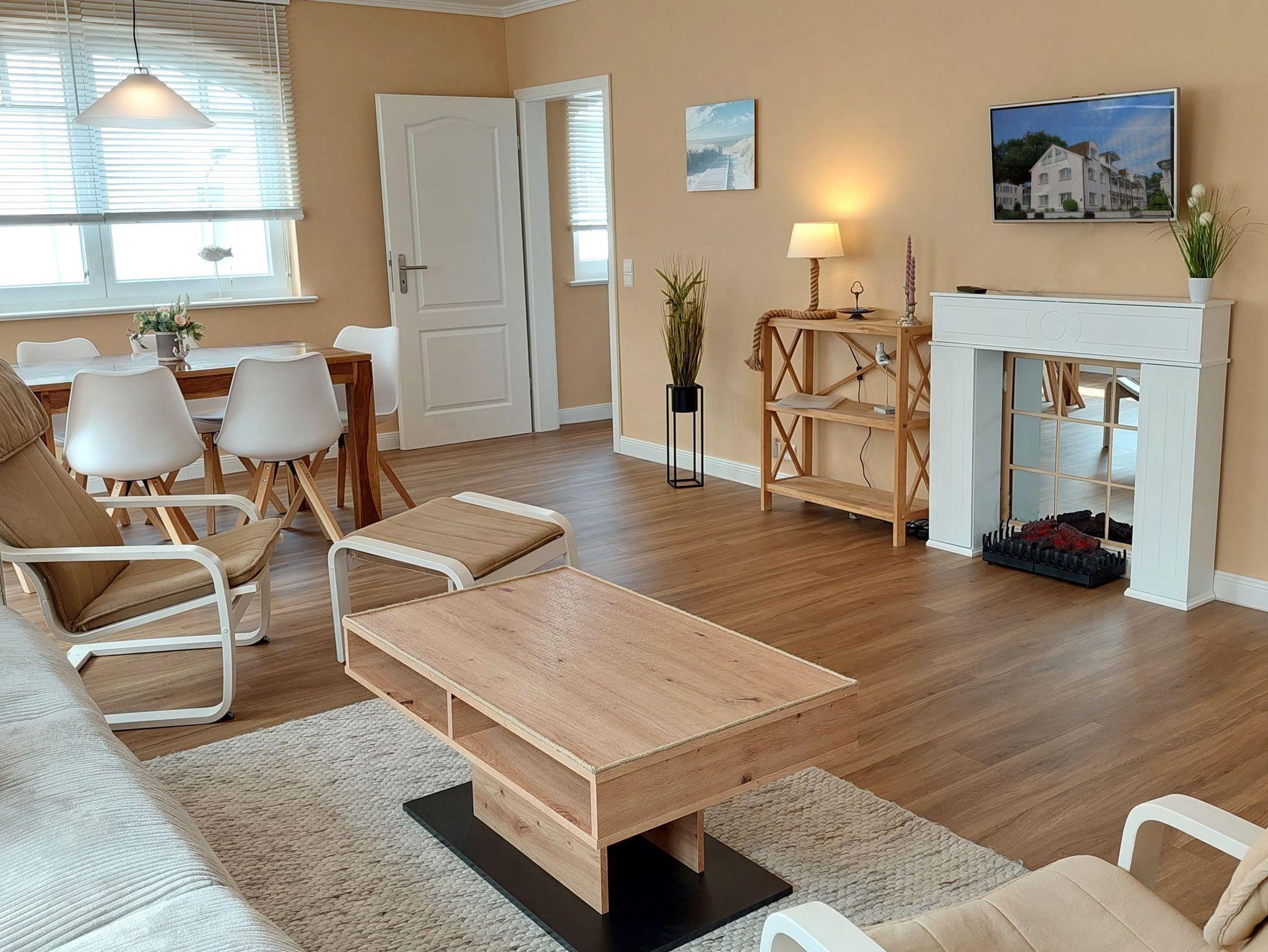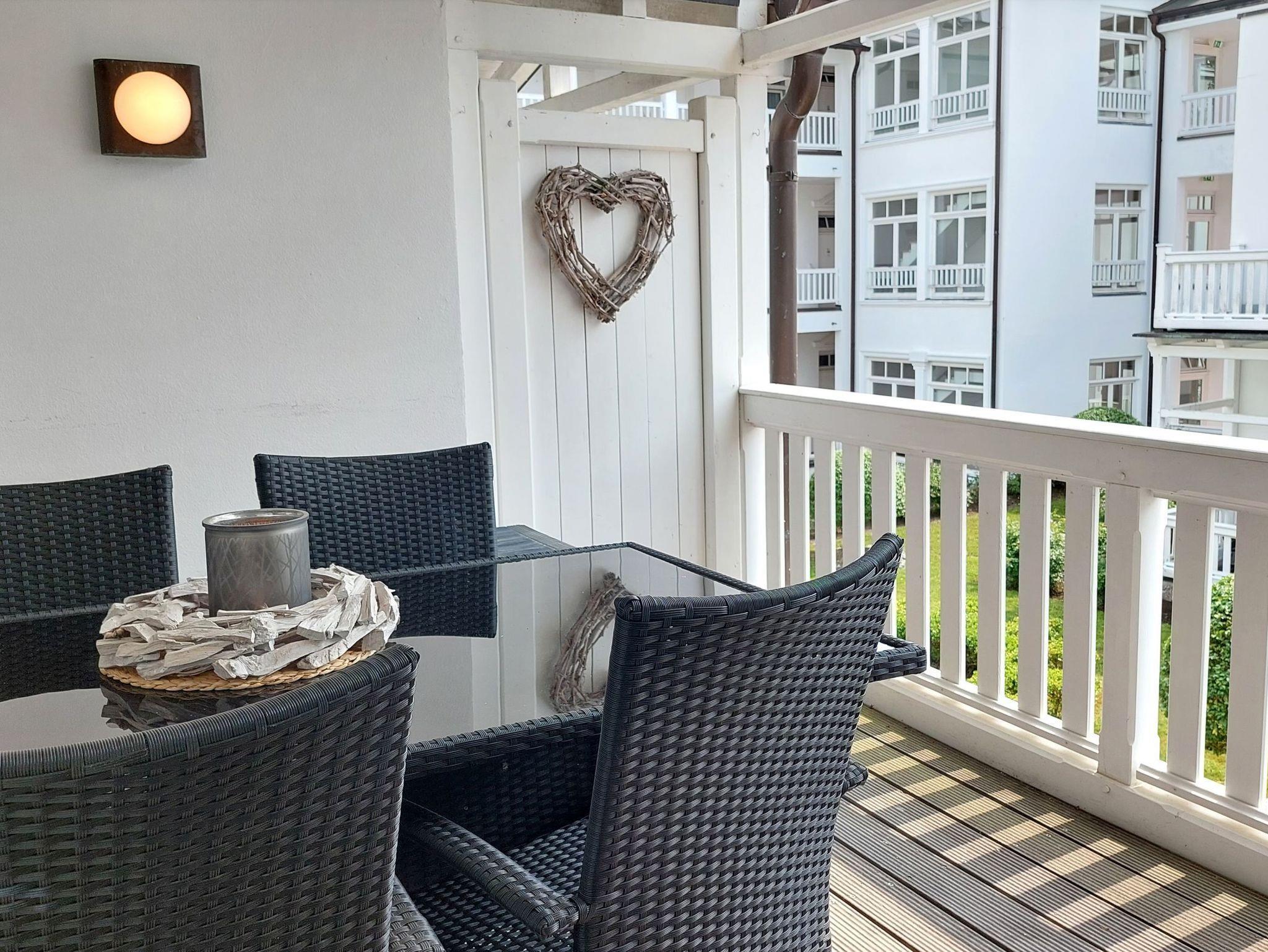 Moderne, familienfreundliche Wohnung mit Balkon und umfassender Ausstattung in Binz, nur 20 m vom Strand entfernt.