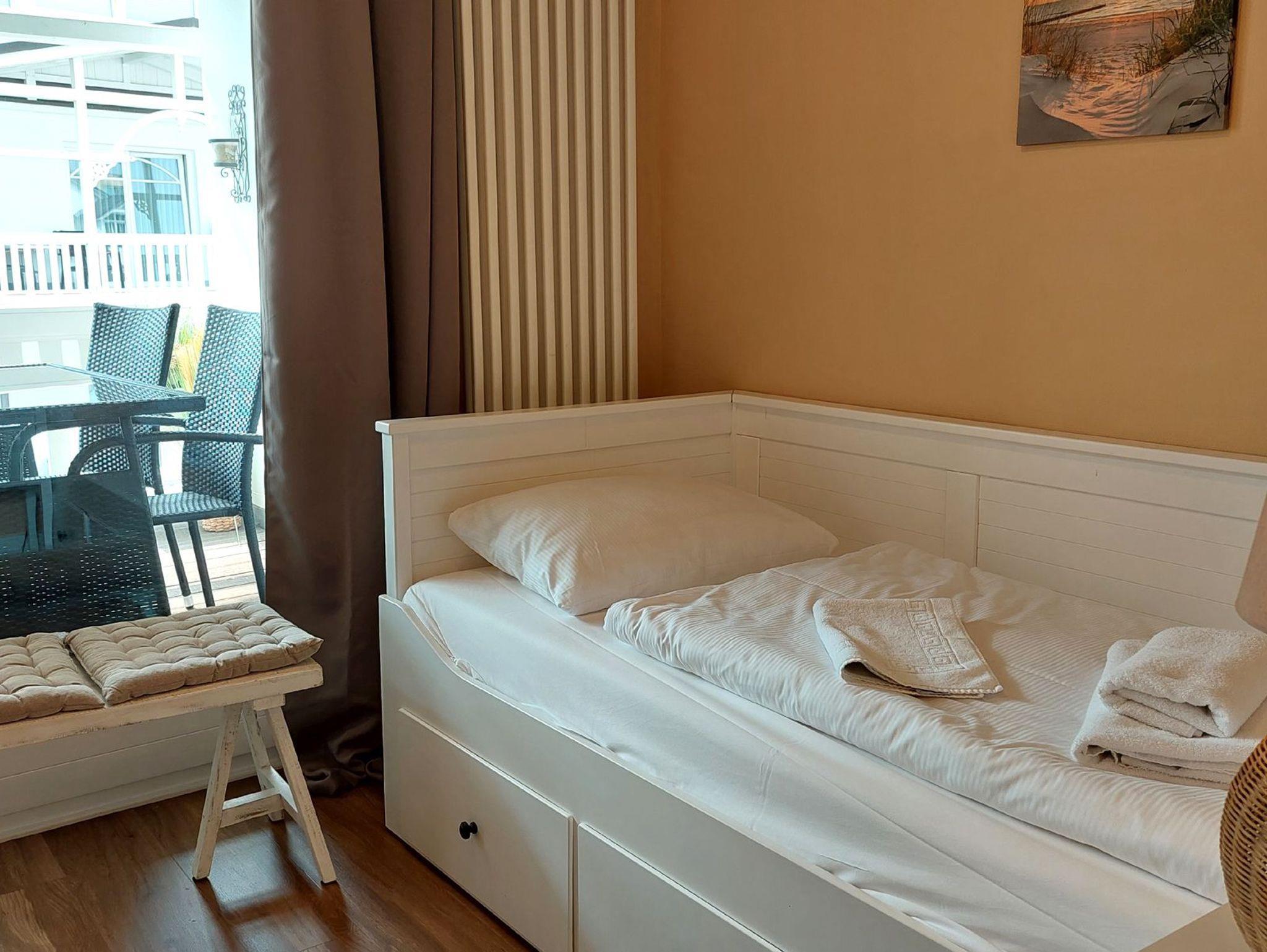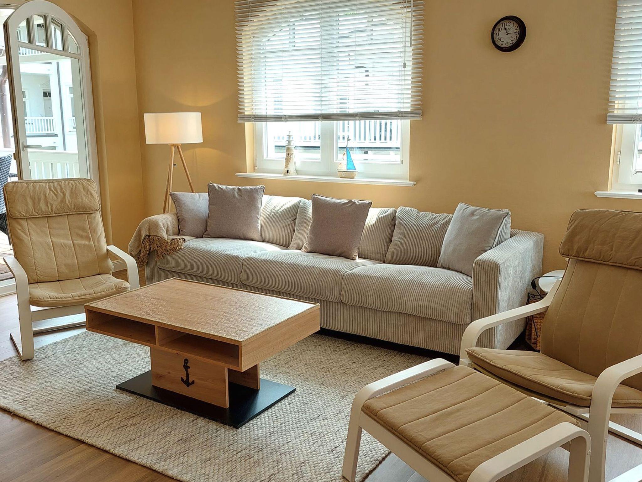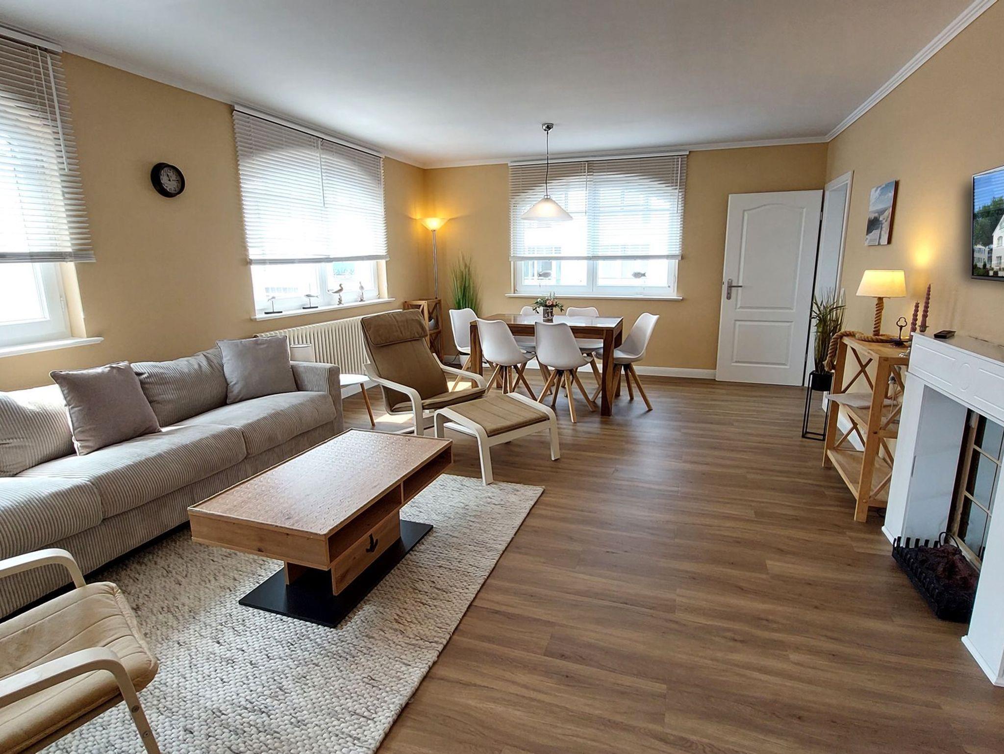 Moderne, familienfreundliche Wohnung mit Balkon und umfassender Ausstattung in Binz, nur 20 m vom Strand entfernt.