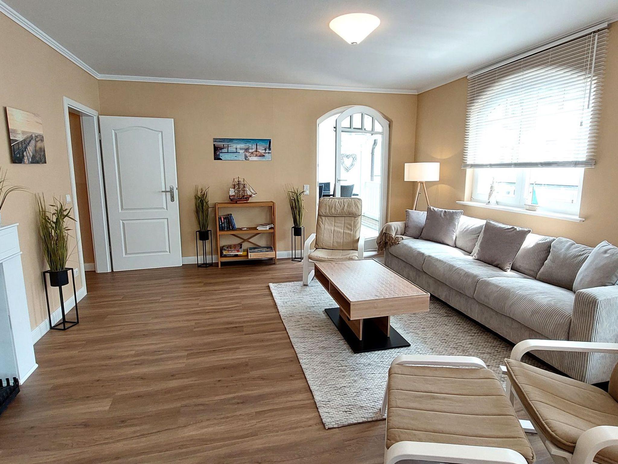 Die familienfreundliche 3,5-Zimmer Nichtraucherwohnung 209RB567 wurde 2023 komplett saniert und neu eingerichtet. Sie befindet sich im 1. Obergeschoss in der Dependance der Villa Gudrun, ist ca. 89 qm groß.