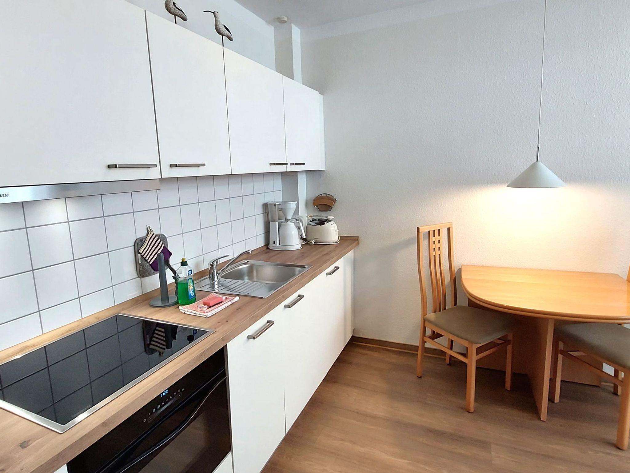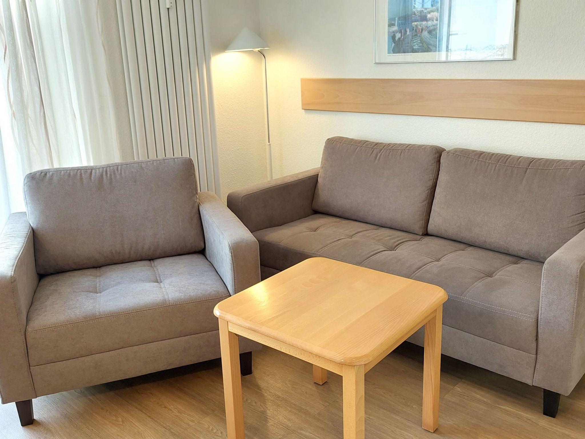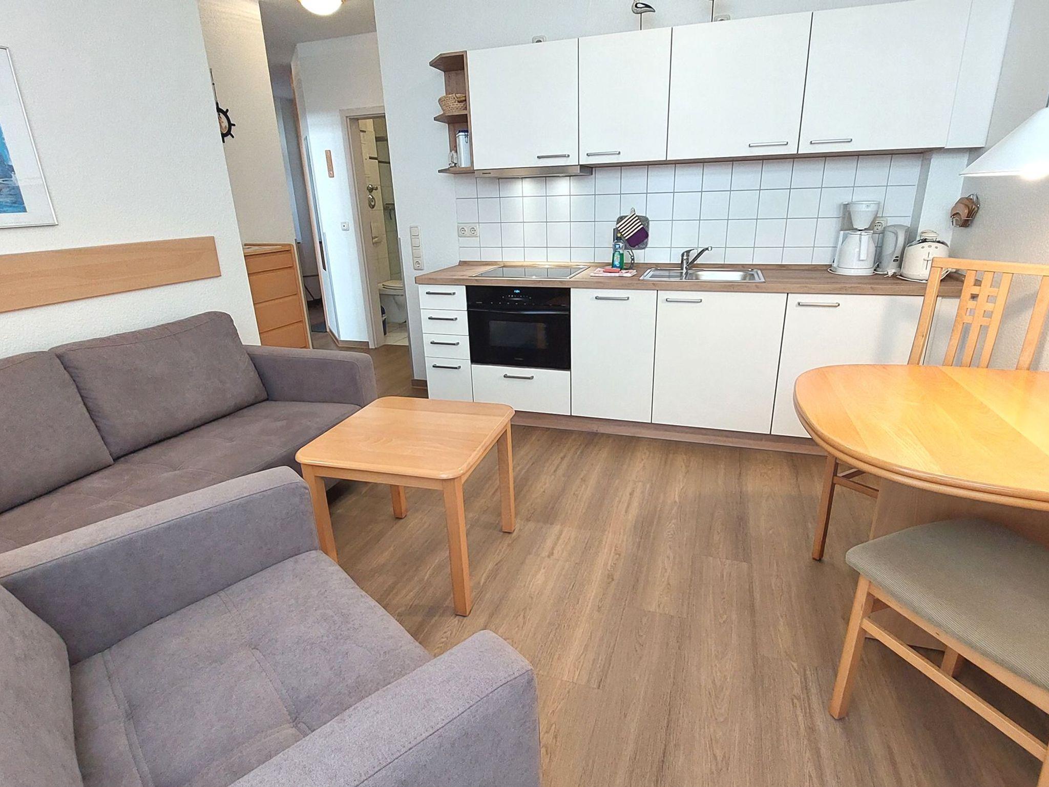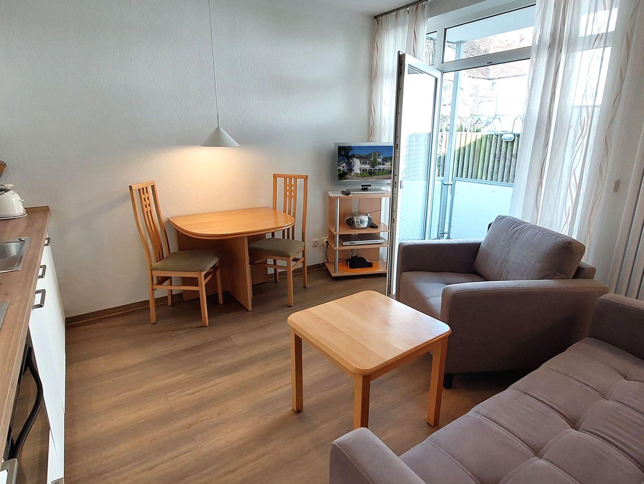 Ihre Nichtraucher-Ferienwohnung 90346 befindet sich im Erdgeschoss des Hauses Residenz Dünenstraße. Die 2 Zimmer - Wohnung hat eine Größe von ca. 38 qm und ist mit bis zu 2 Personen belegbar. [nbsp]Neben dem Wohn- und Essbereich mit Sitzecke gibt es ein separates Schlafzimmer, eine Küchenzeile sowie ein Badezimmer mit Waschtisch, Dusche/WC, Kosmetikspiegel und Fön. Das Schlafzimmer verfügt über ein Doppelbett, einen Kleiderschrank, ein Flachbildfernseher sowie Radiowecker. Im Wohnraum gibt es eine gemütliche Sitzecke mit Kabel-TV, WLAN und Musik-Anlage sowie einen gesonderten Essplatz Die Küchenzeile ist mit einem Backofen, Kühlschrank, Kochfeld, Mikrowelle, Kaffeemaschine, Wasserkocher, Toaster und diversen Kleingeräten ausgestattet. Ein geschützter in Richtung Nordwest ebenerdiger Balkon schließt sich dem Wohnbereich an. Ein wohnungseigener Außenstellplatz (Nr. 6) steht Ihnen an der Residenz zur Verfügung. Ihr Haustier ist in dieser Wohnung herzlich willkommen.
