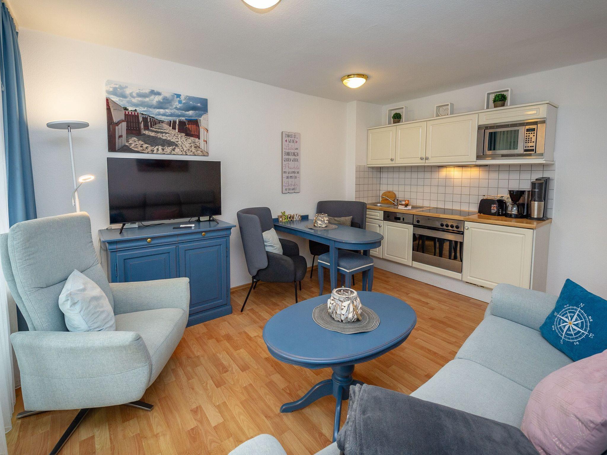 Herzlich willkommen in der Ferienwohnung Nr. 6! Dieses komfortable 2-Raum-Appartement in bester Lauflage zum Strand begrüßt Sie im Hochparterre des Appartementhauses Jahreszeiten und hat eine Wohnfläche von rund 32 m².