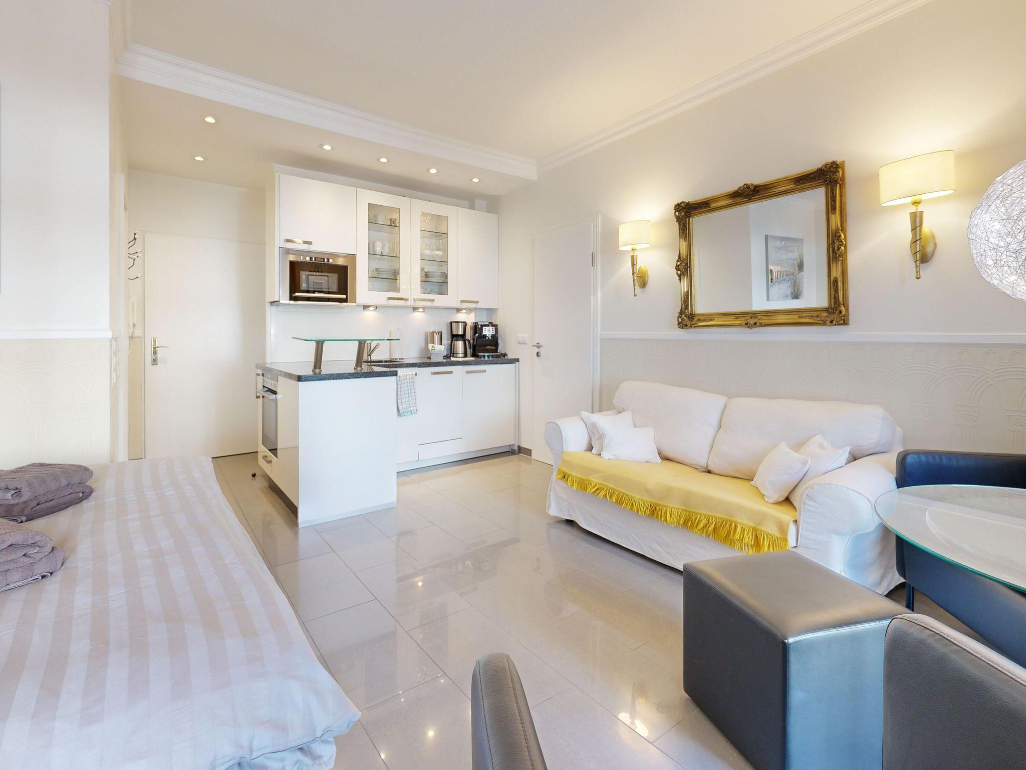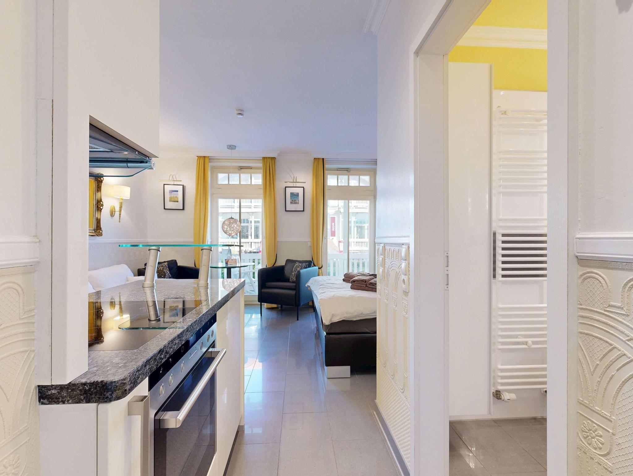 Die schöne Villa Jugendglück 04 ist eine moderne 1-Raum-Wohnung (29 m²) im Erdgeschoss mit einem Wohn-/Schlafraum und einem Balkon und Internetanschluss.