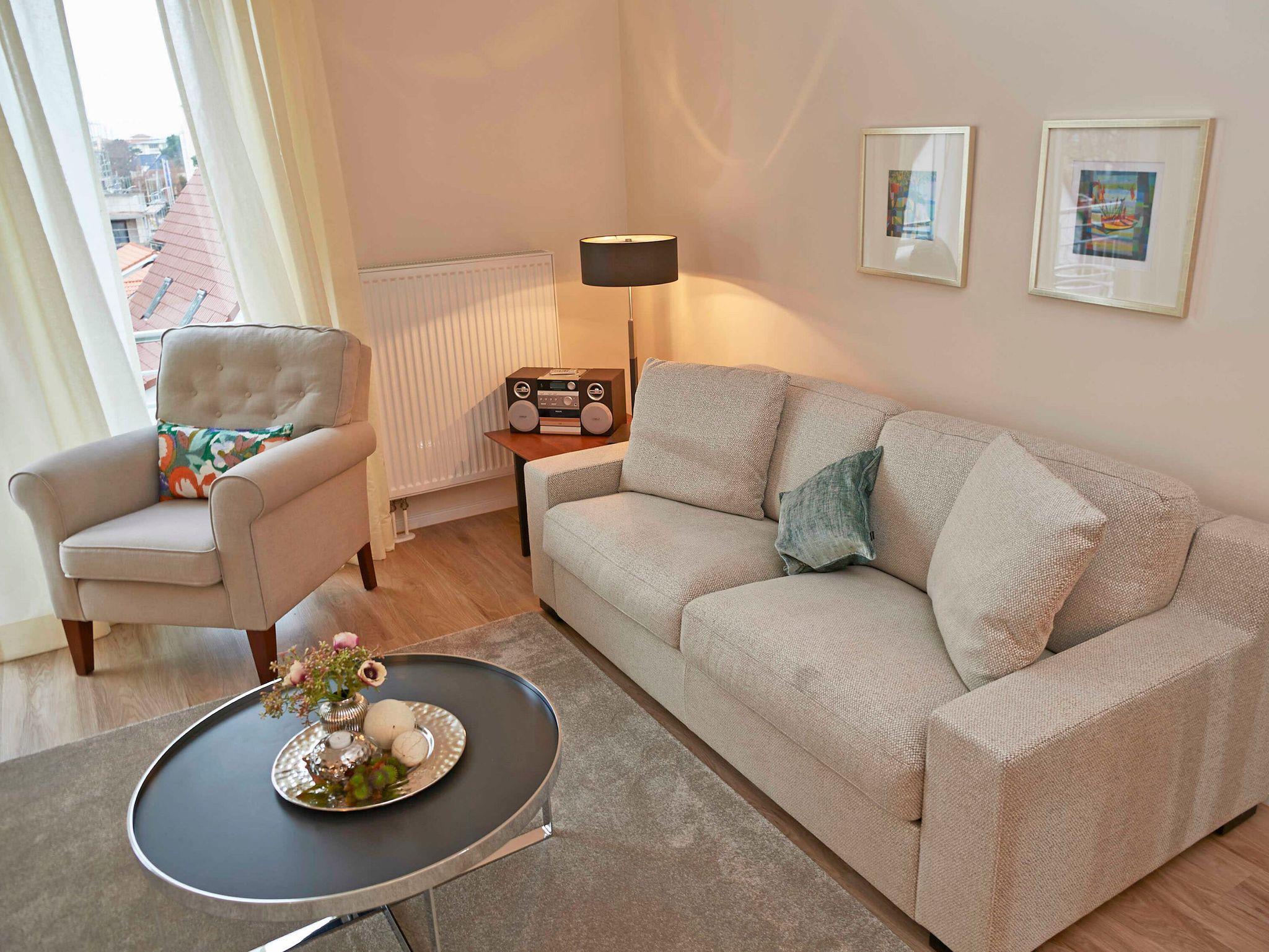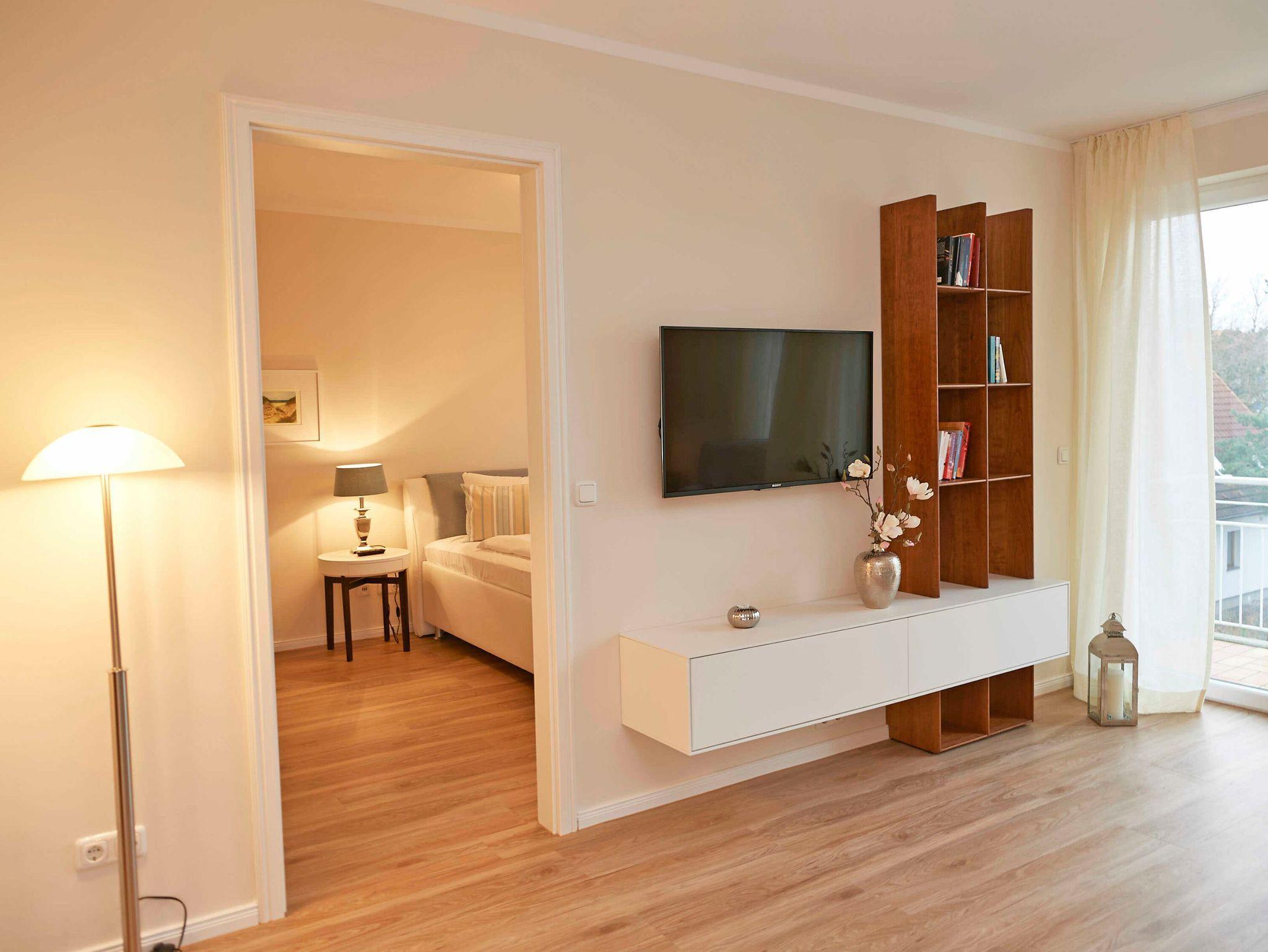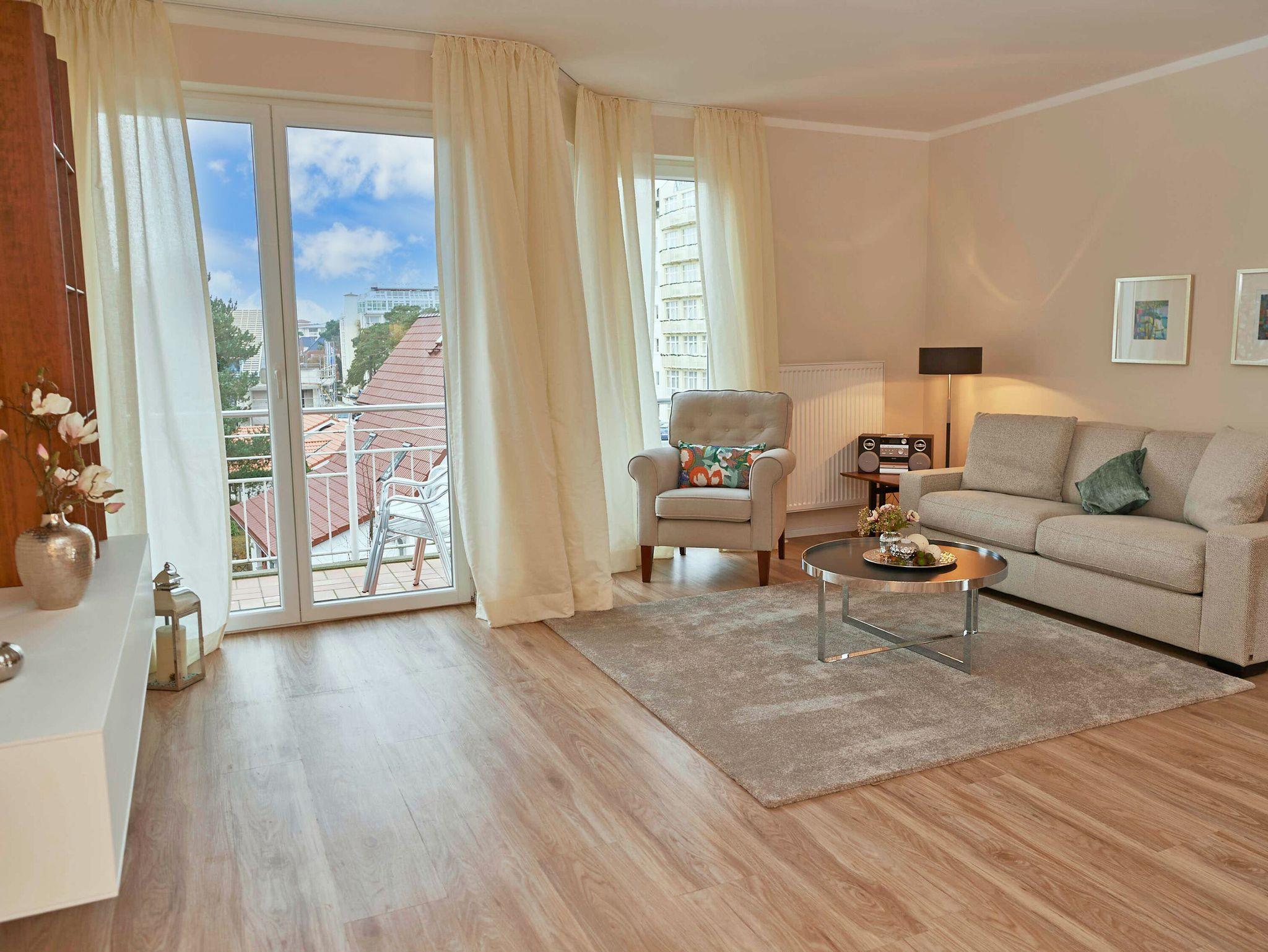 Gemütliches 2-Zimmer-Appartement mit seitlichem Meerblick und Westbalkon in Binz.