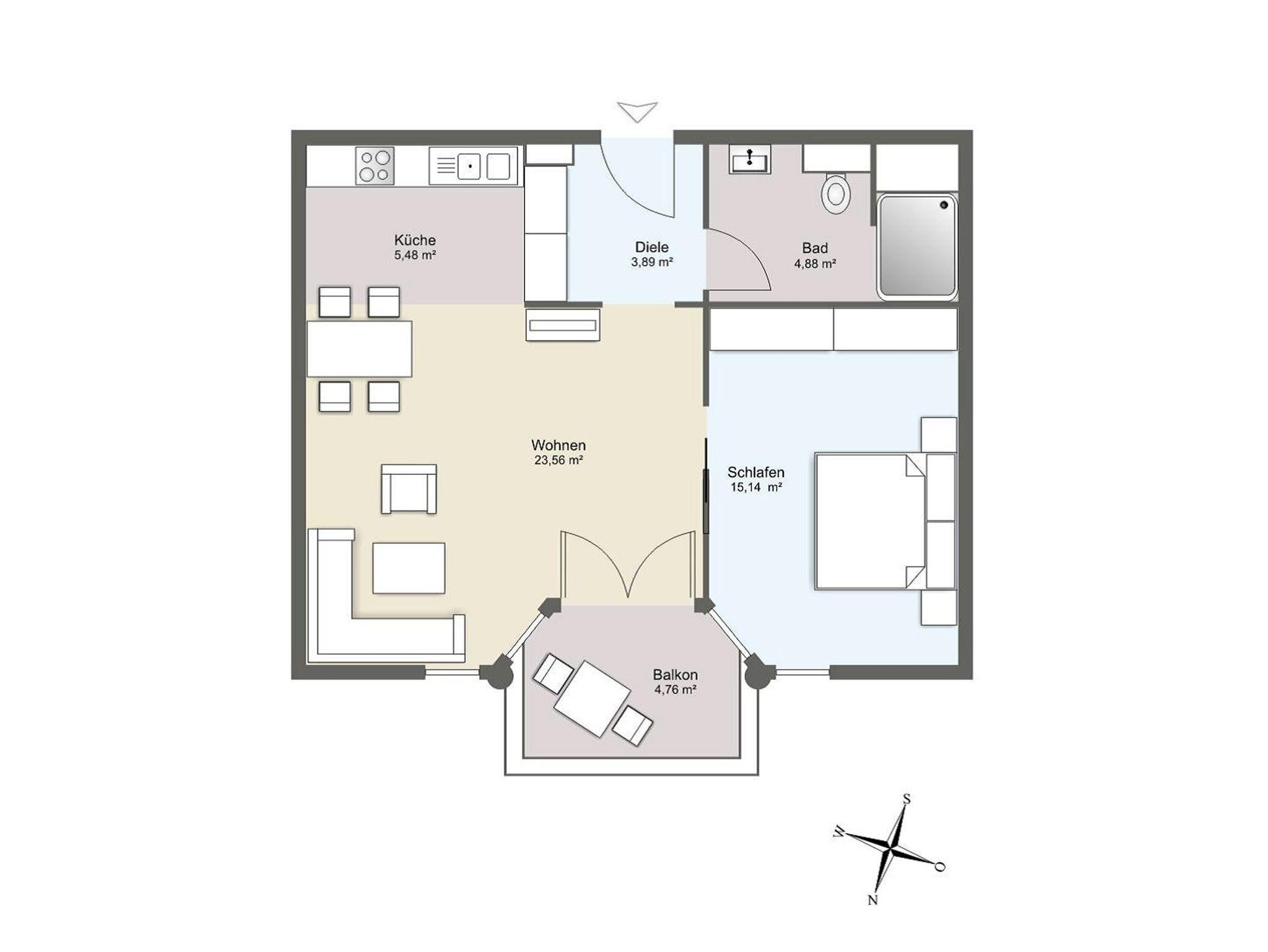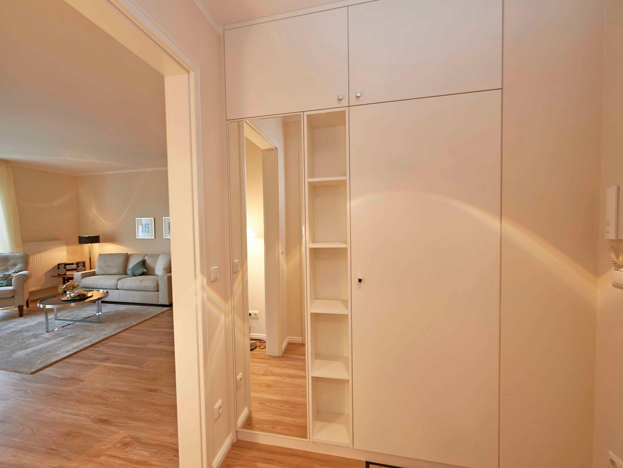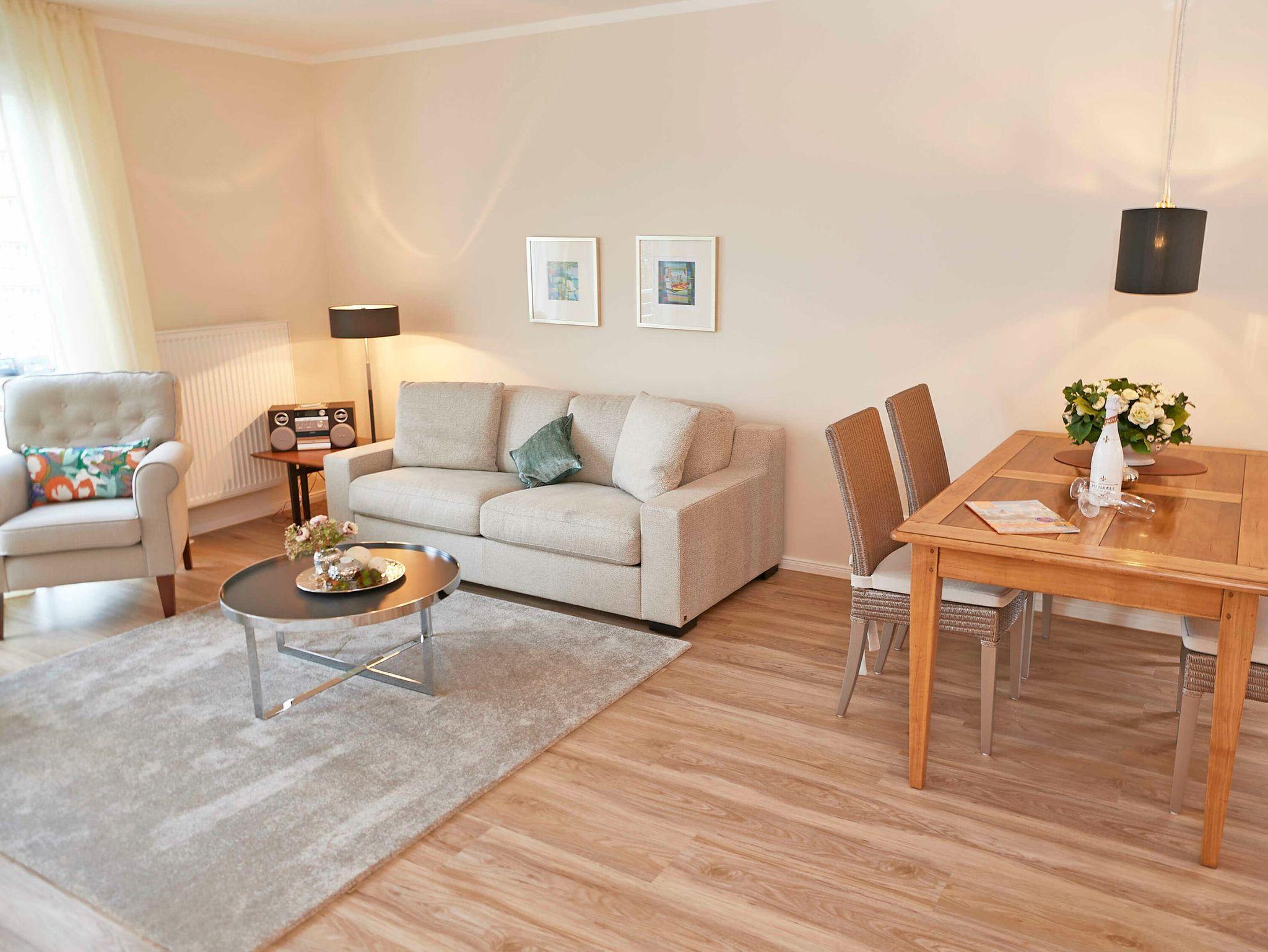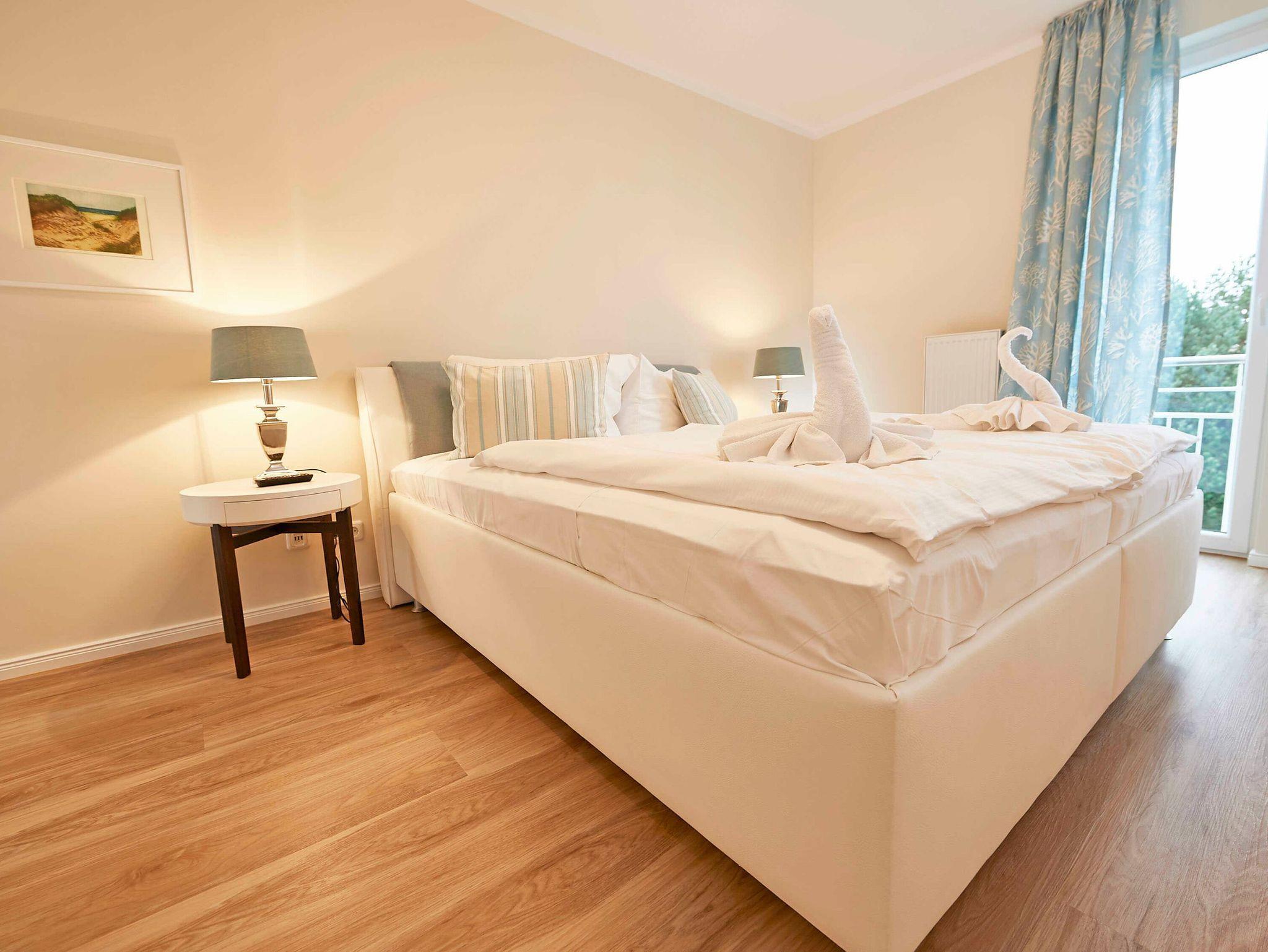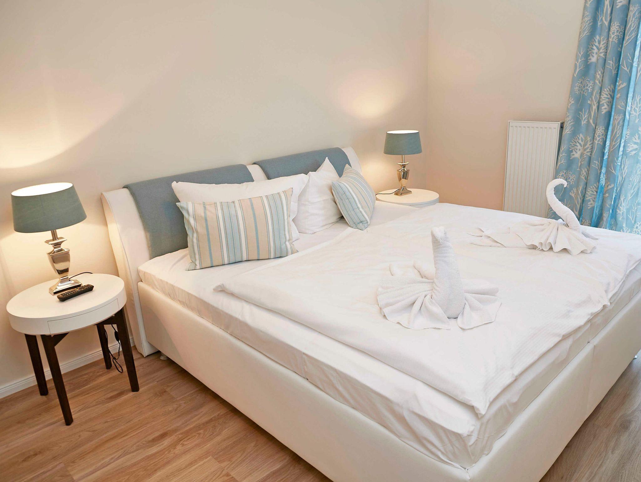 Herzlich willkommen in der Wohnung 21! Diese rund 55 m² große, komfortabel eingerichtete 2-Zimmer-Appartement befindet sich im zweiten Obergeschoss und verfügt über einen Westbalkon, von dem aus man einen seitlichen Meerblick genießt.