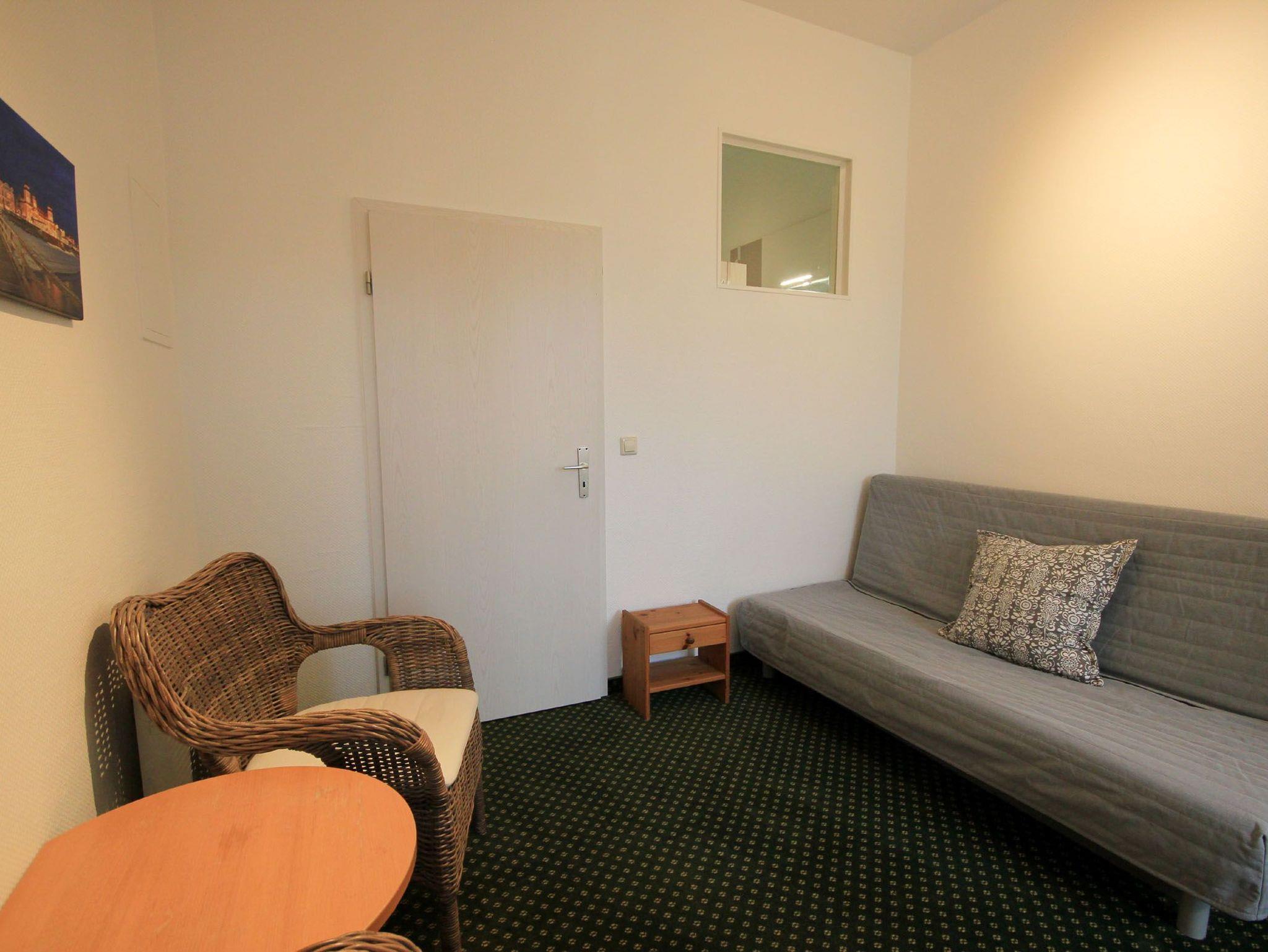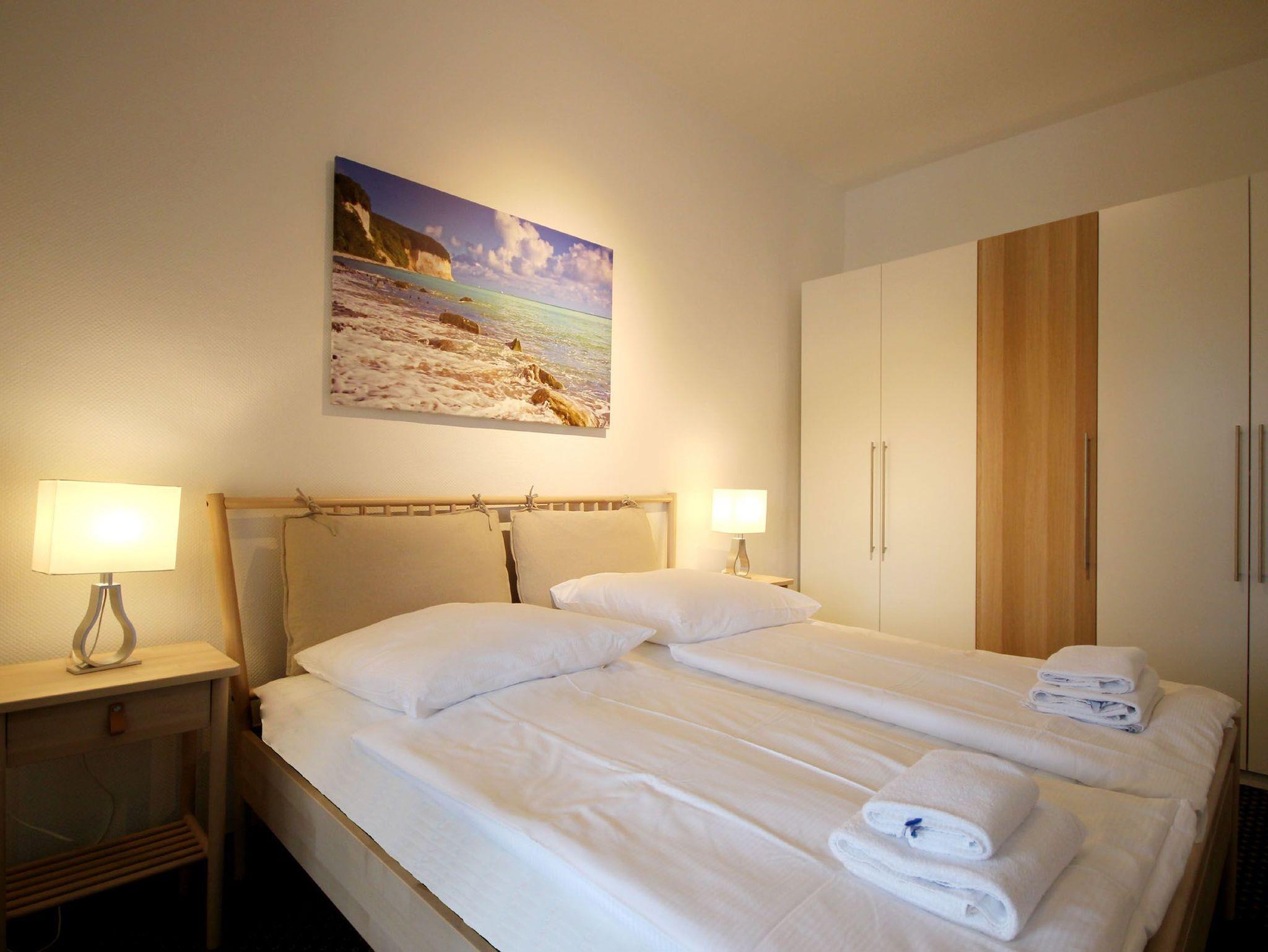 Diese freundliche Wohnung ist aufgeteilt in einen Wohnraum mit integrierter Küche sowie einem Verbindungszimmer, ein Schlafzimmer sowie ein modernes Duschbad mit Waschtisch und WC. Das Wohnzimmer begrüßt Sie mit zwei Schwingsessel sowie Flachbild-TV. Zudem bietet ein Schlafsofa (1,60m x 2m) zwei zusätzlichen Personen eine Schlafmöglichkeit. Das geräumige, halboffene Schlafzimmer verfügt über ein Doppelbett (1,60m x 2m) sowie einen Kleiderschrank. Die neuwertige Küchenzeile ist mit Kühlschrank mit kleinem Gefrierfach, Cerankochfeld, Nespresso-Maschine, Backofen, Geschirrspüler, Kaffeemaschine, Wasserkocher und Toaster komplett ausgestattet. Highlights: Kostenfreies WLAN sowie ein wohnungseigener PKW-Stellplatz direkt am Haus.