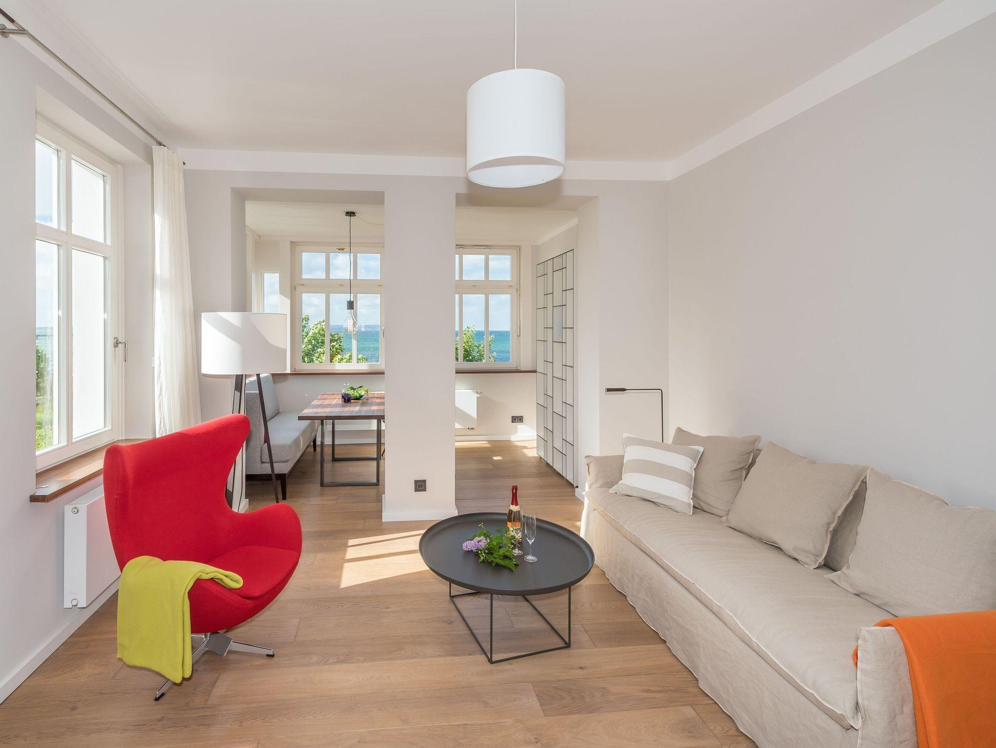 Moderne Ferienwohnung Meeresleuchten mit traumhaftem Meerblick in Binz, direkt am Strand und hochwertiger Ausstattung.